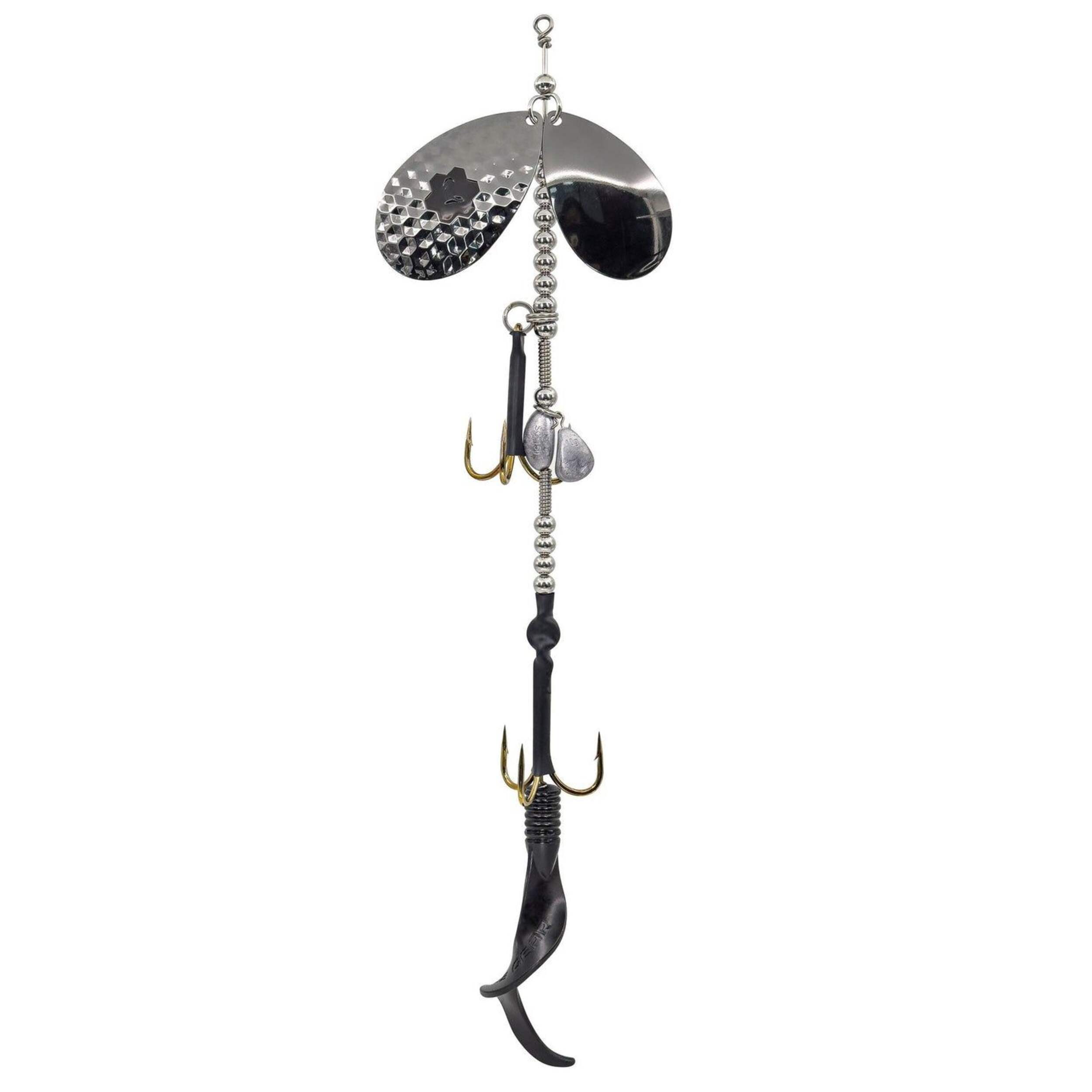 The custom blades fold in flight and rotate immediately on retrieve so you don’t waste an inch of your cast.
