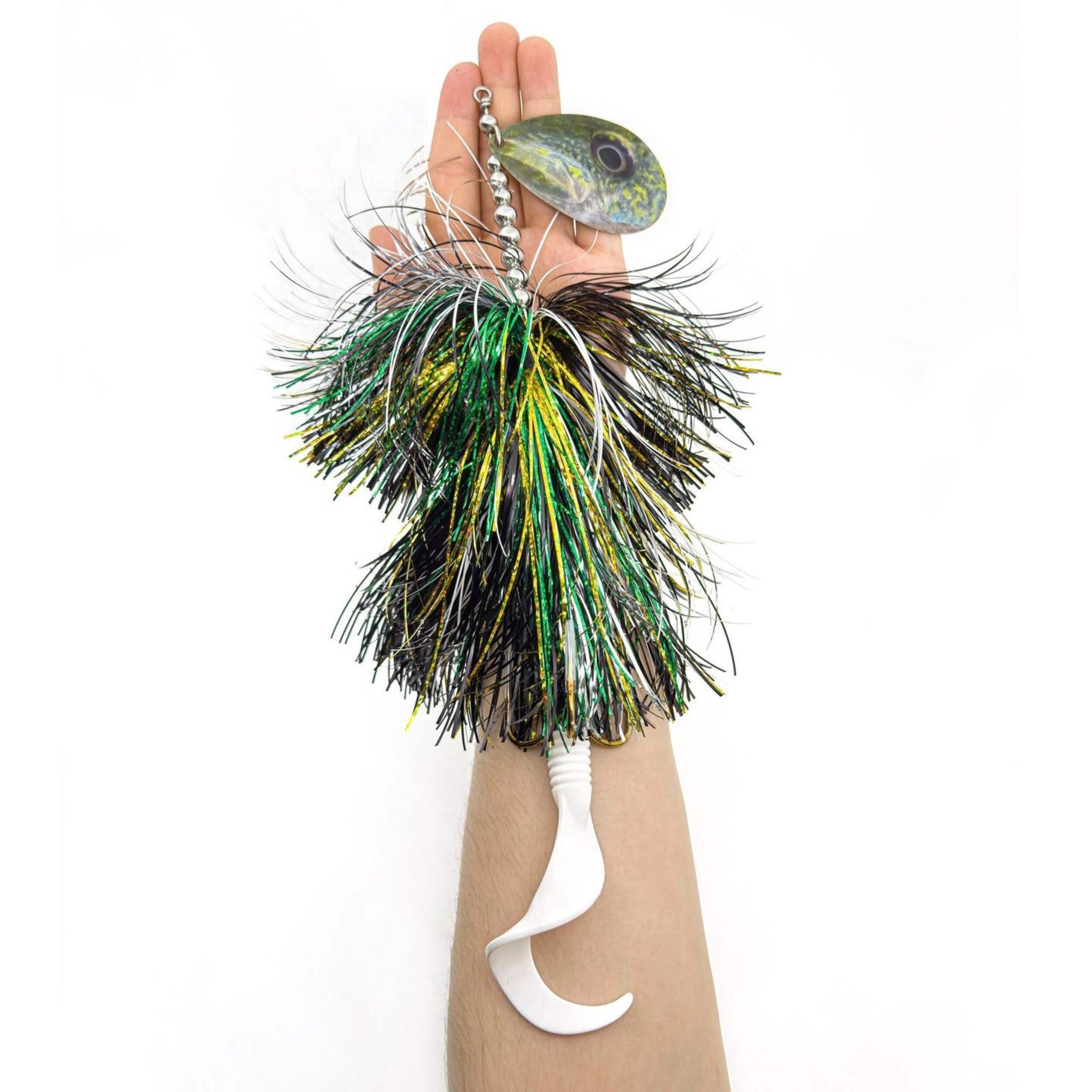 Unleash the Savage Blade! Our custom designed bucktail is built with high grade custom components and crafted to perfection! The custom blades fold in flight and rotate immediately on retrieve so you don’t waste an inch of your cast. Their custom design sends out big pulses and vibration to draw in huge fish. The clever configuration, with the detachable weight allows you fish over the weed tops or deeper over structure and rock piles. Our hand-tied Skirts, have the perfect volume, to create a big pulsing silhouette and still collapse perfect on the strike. The custom carbon steel 3X tail Treble hook, has a Stainless steel corkscrew with a pre-mounted scented Trailer tickler grub tail, raising many fish to follow and strike.
