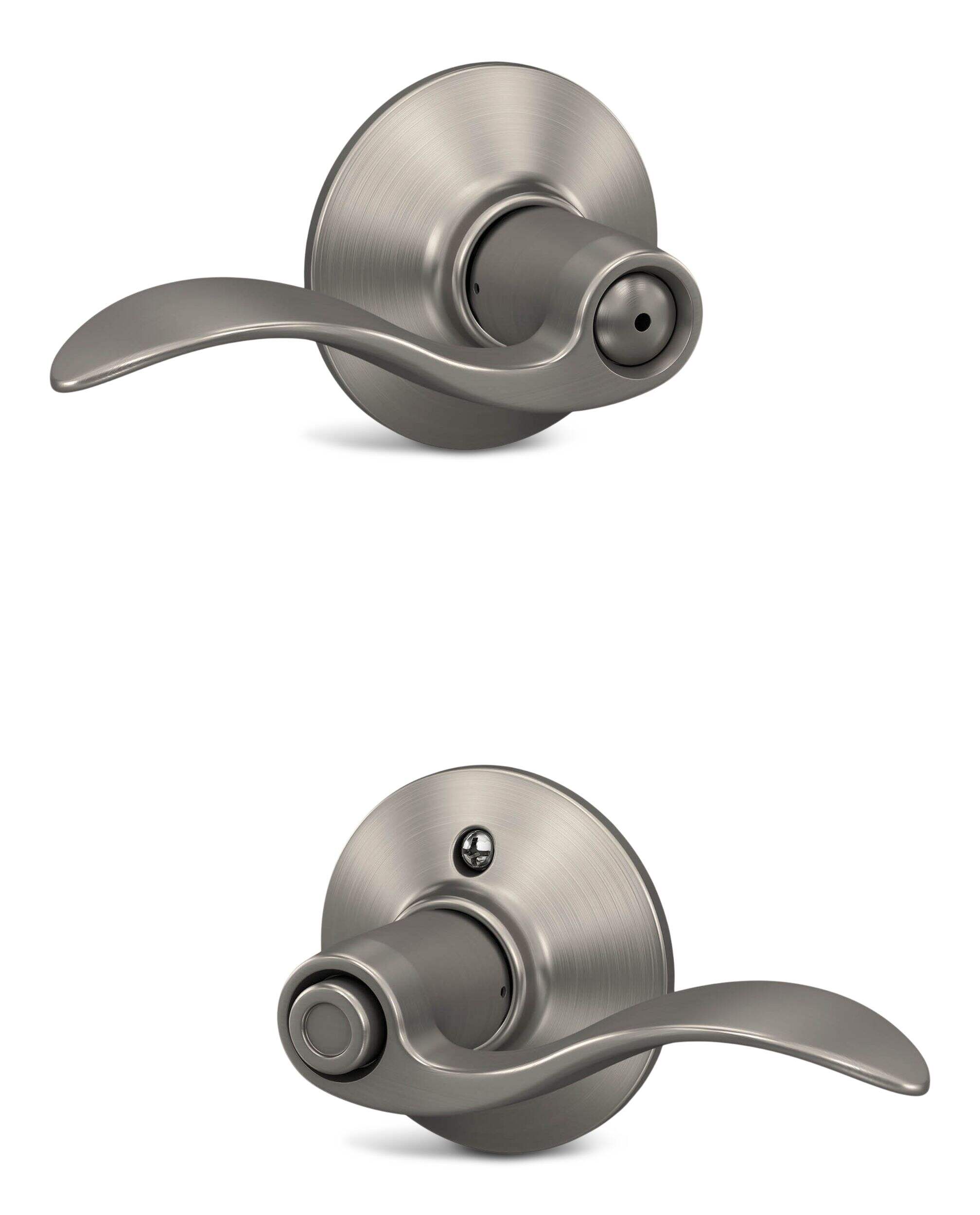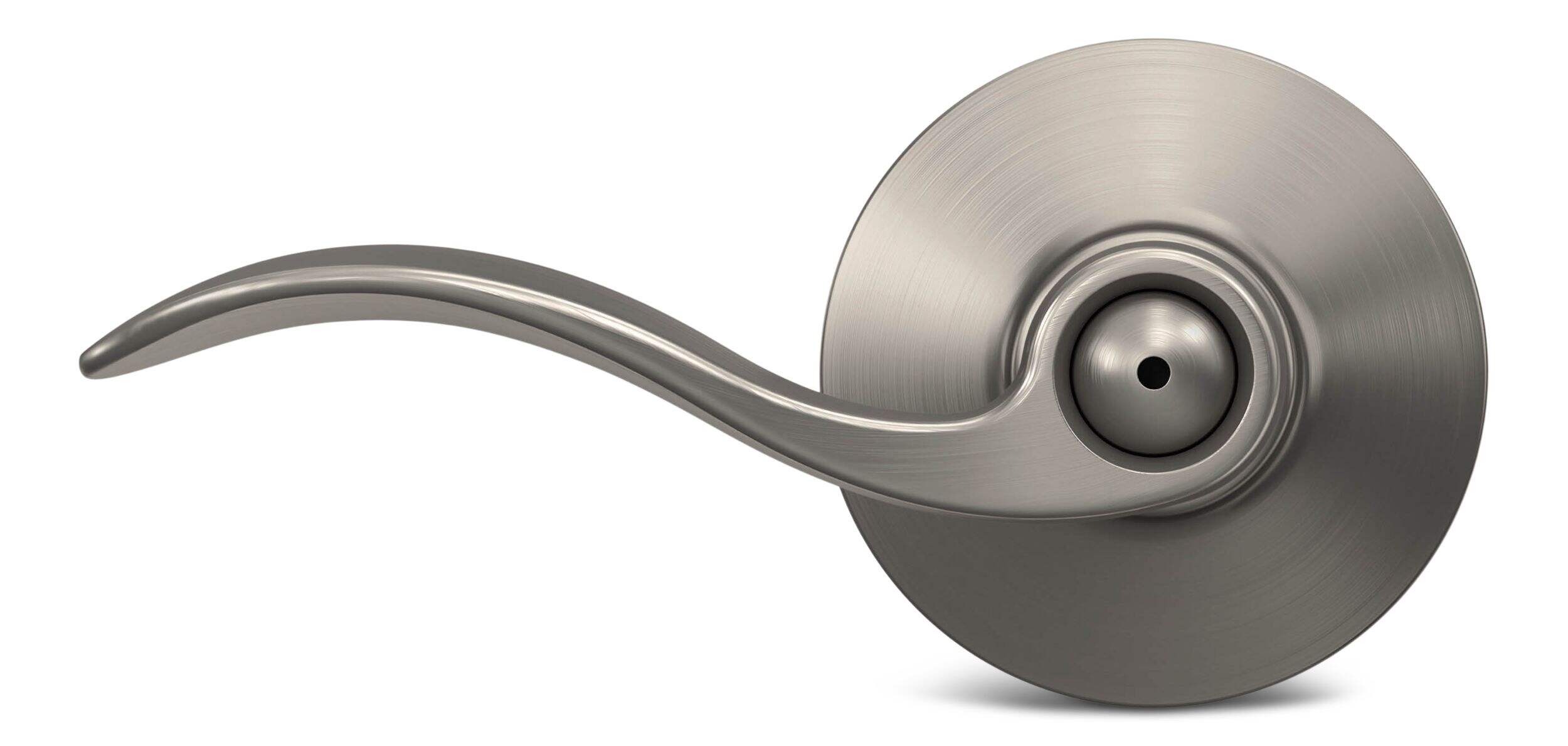 Schlage's Accent Lever Lock in Satin Nickel adds privacy and security to your space with a discreet design.The wave-like lever handle keeps a low profile,complementing your decor without drawing attention while the durable nickel finish stands up to everyday use. The lock provides reliable locking for bedrooms and bathrooms, giving you peace of mind through solid construction and hassle-free performance.