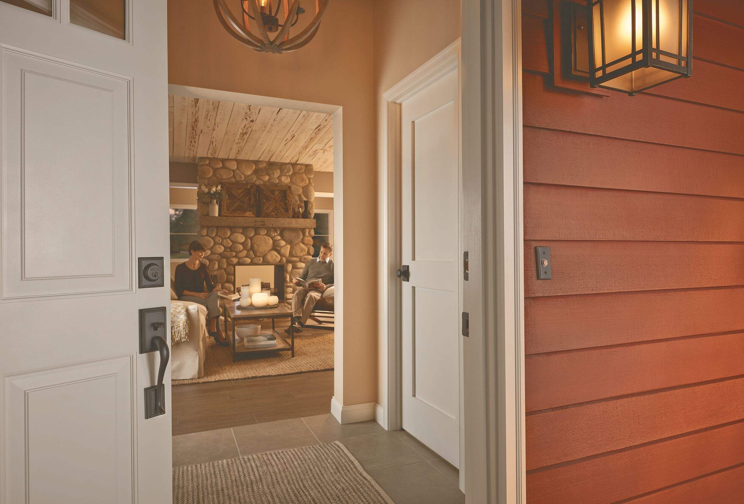Schlage Addison Handle Set with Accent Lever is an adjustable through-bolt system