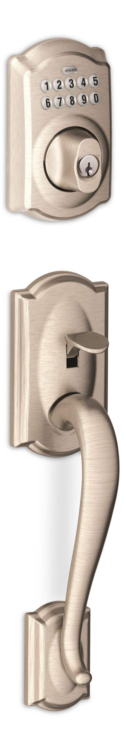 The Schlage Camelot Electronic Handle Set with Accent Lever offers a secure and convenient solution that eliminates the need for hiding keys under the doormat or worrying about lost or forgotten keys. Say goodbye to constantly making extra keys—with Schlage’s electronic security, you can add, change or delete user codes in seconds. This sleek, flexible system lets you come and go freely, enhancing both your security and peace of mind.