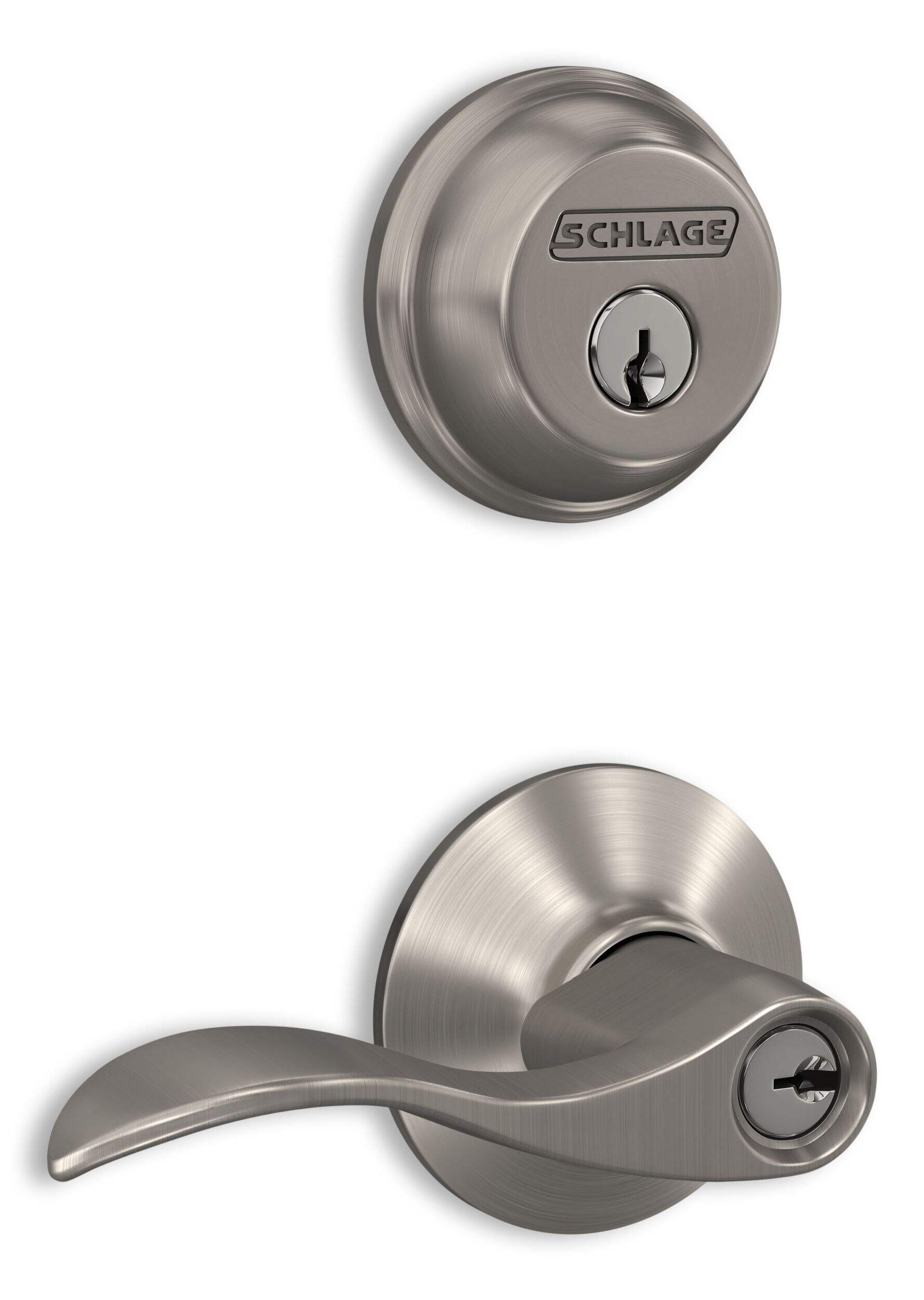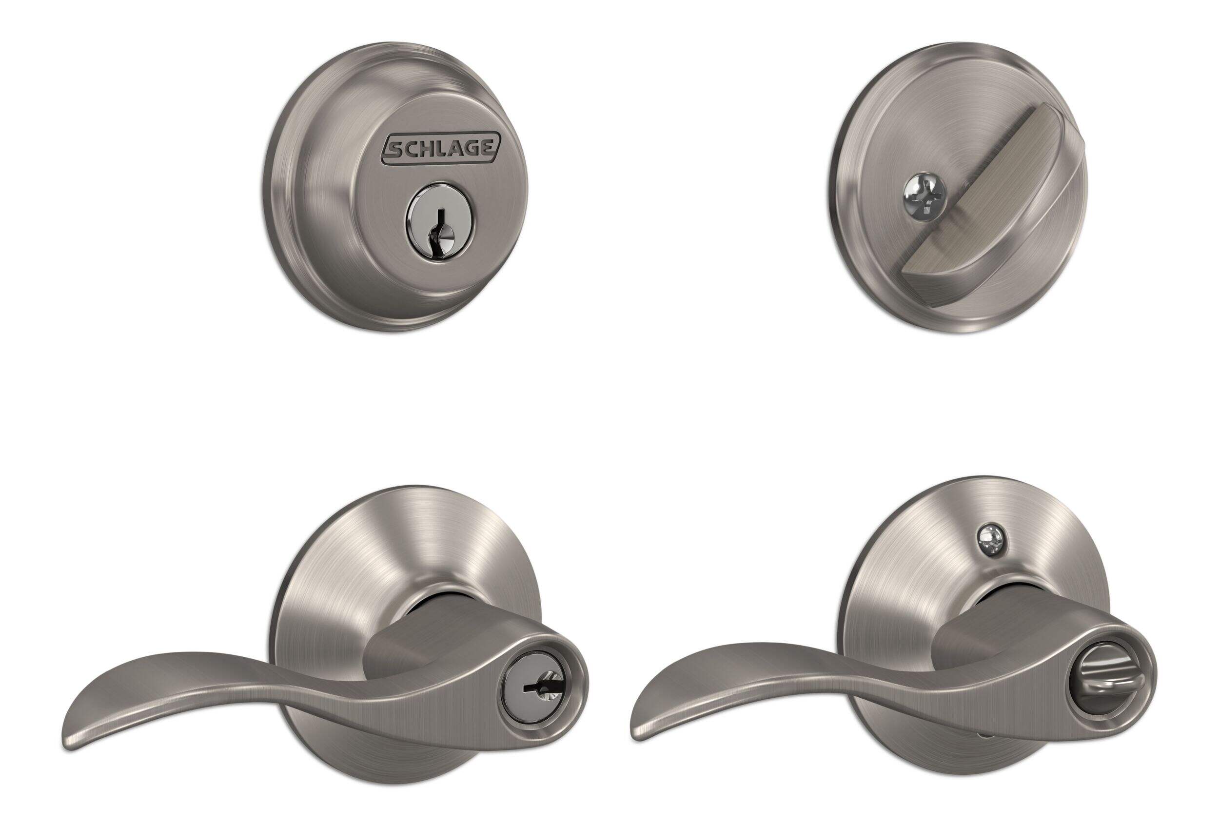 The Schlage Deadbolt and Accent Lever Keyed Entry Combo offers reliable security and everyday convenience, perfect for entry or side doors where keyed access is needed. The exterior locks and unlocks with a key, while the interior features a turn-button lock and unlocks effortlessly when the handle is turned for a quick exit. Backed by over a century of Schlage’s commitment to durability, strength, and craftsmanship, this keyed door handle is built with premium materials and certified to the highest industry standards.