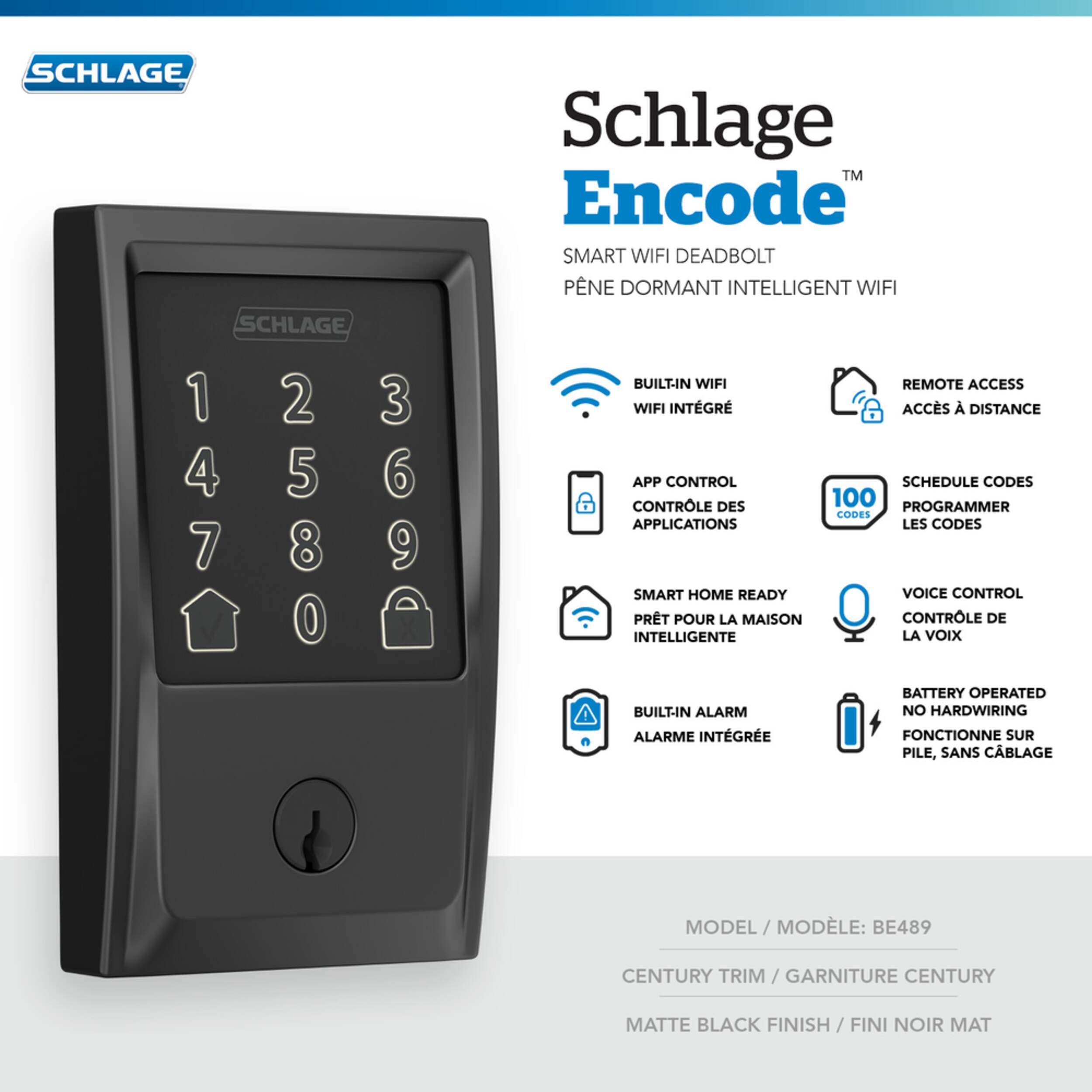 Lock and unlock from anywhere via the Schlage Home app with no hubs or adapters required