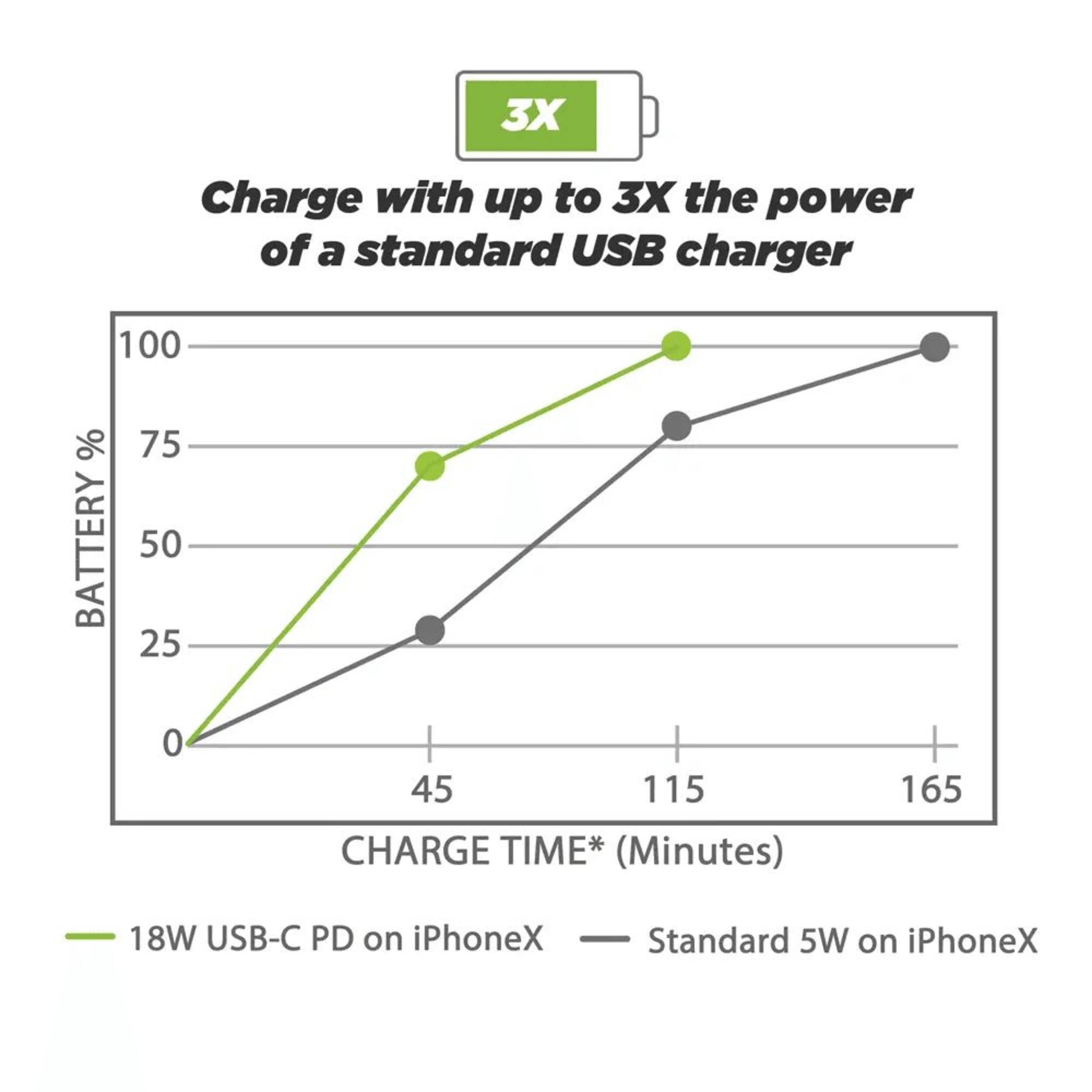 Three times faster charge speed vs a conventional USB wall charger