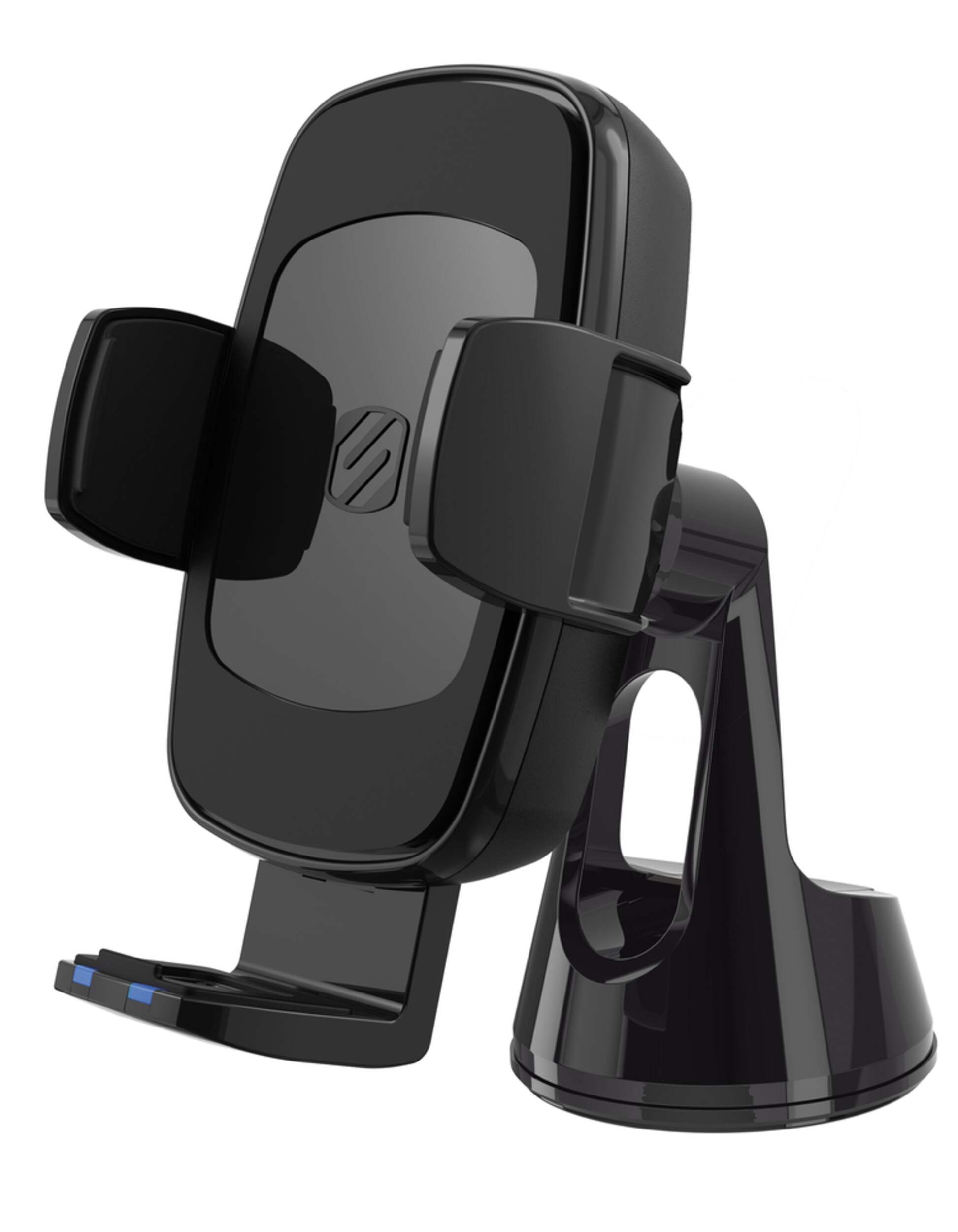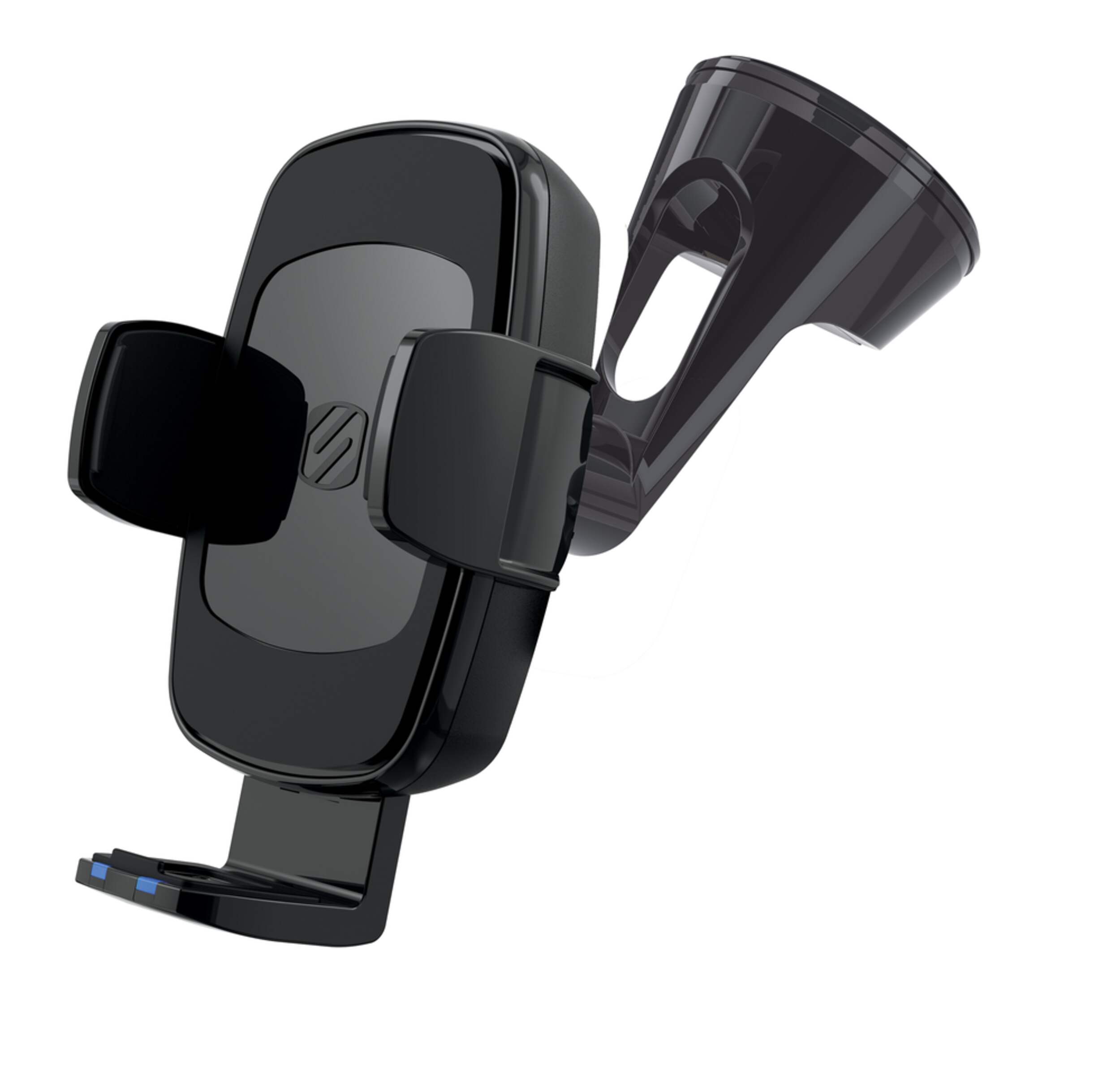 Charge your phone fast with the Scosche UQ3 Universal Phone Mount. This compact, stylish phone mount has everything you need to charge up your Qi-enabled phone on the go, including a car adaptor, vent mount, USB-C cable, an alcoholic cleaning wipe, plus a port for a second device. The charging mount has an adhesive designed specifically for vehicle interiors. The adjustable head moves in every direction, letting you position the phone in either landscape or portrait modes.