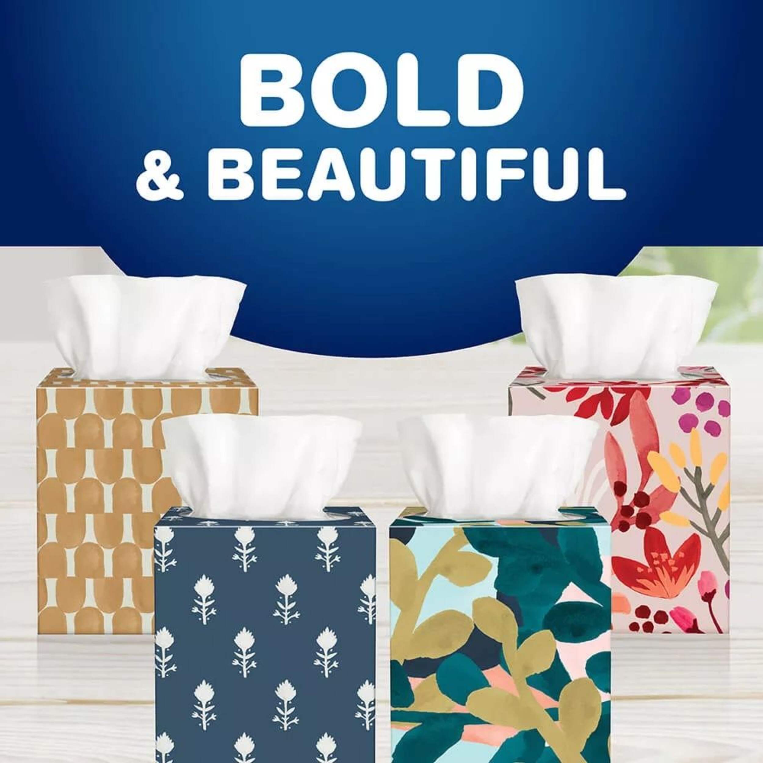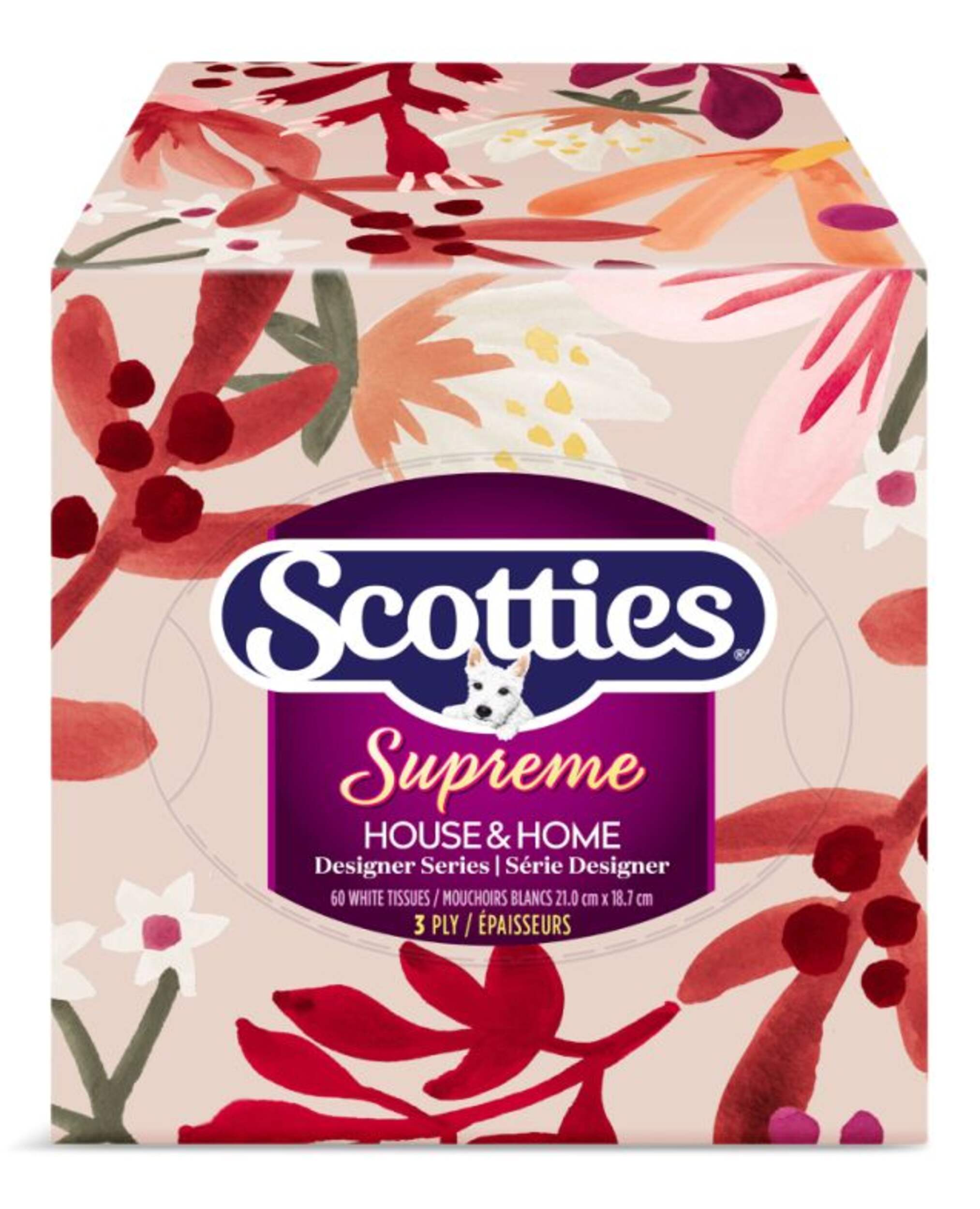Each of these Scotties Supreme Designer Series Facial Tissue Cubes is a hypoallergenic product, approved by dermatologists. Its 3-ply construction offers a thick yet soft touch to your skin. The tissues come in assorted decorative boxes, making them suitable for any room in your household. This is a product of Scotties, a brand known for its commitment to comfort and care.