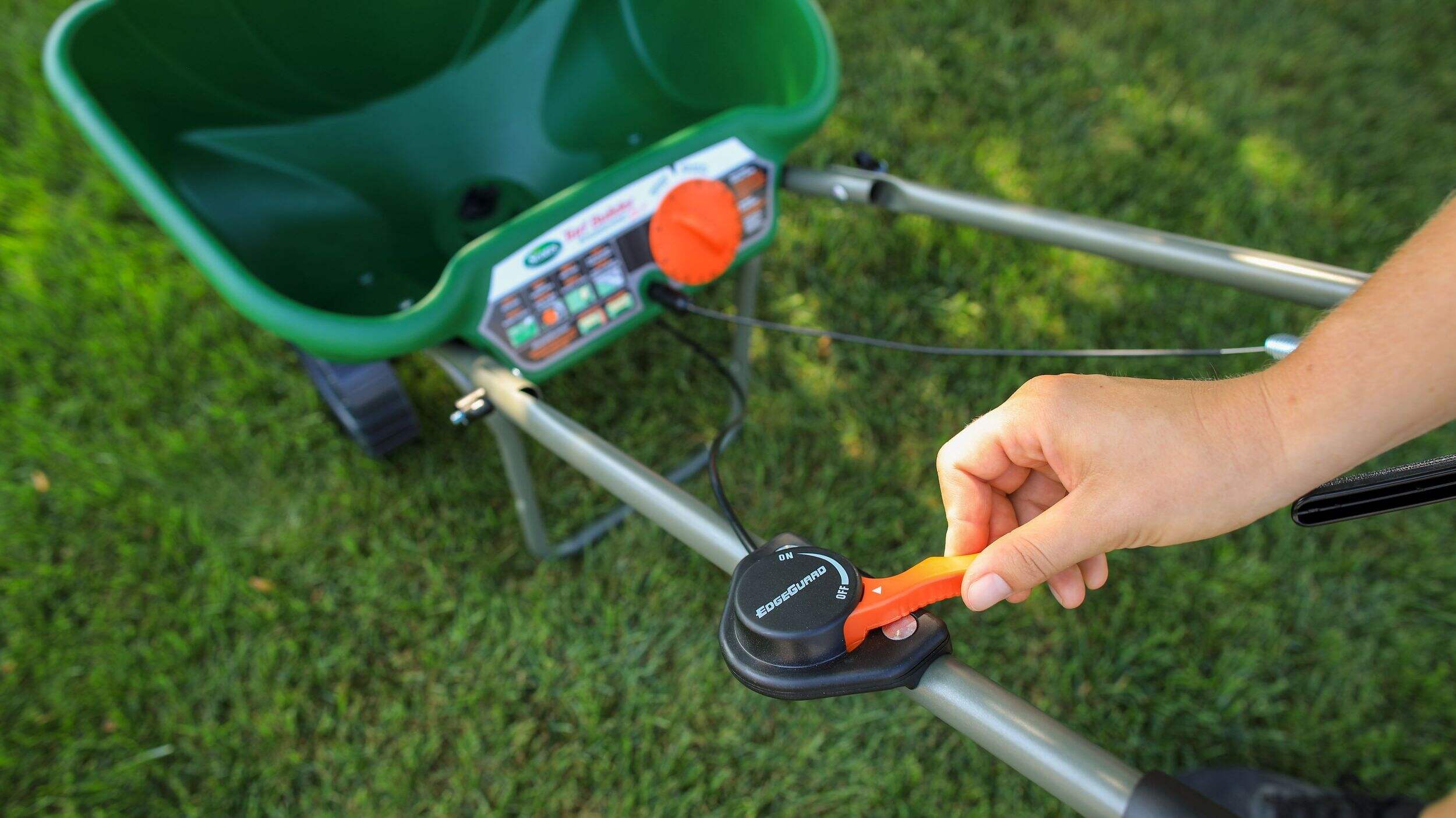 Get your lawn in shape quickly with the Scotts Turf Builder Deluxe EdgeGuard Broadcast Spreader. This spreader simplifies the process of feeding or seeding large areas, thanks to its fast and accurate coverage. The EdgeGuard feature ensures that the lawn product stays exactly where you want it—on your grass and off your driveway. Additionally, the comfortable U-shaped handle and fully assembled, calibrated design allow you to fill the spreader and start right away. With a hopper capacity of 15,000 square feet, this Scotts fertilizer spreader is the perfect tool for maintaining a lush, healthy lawn with minimal effort.