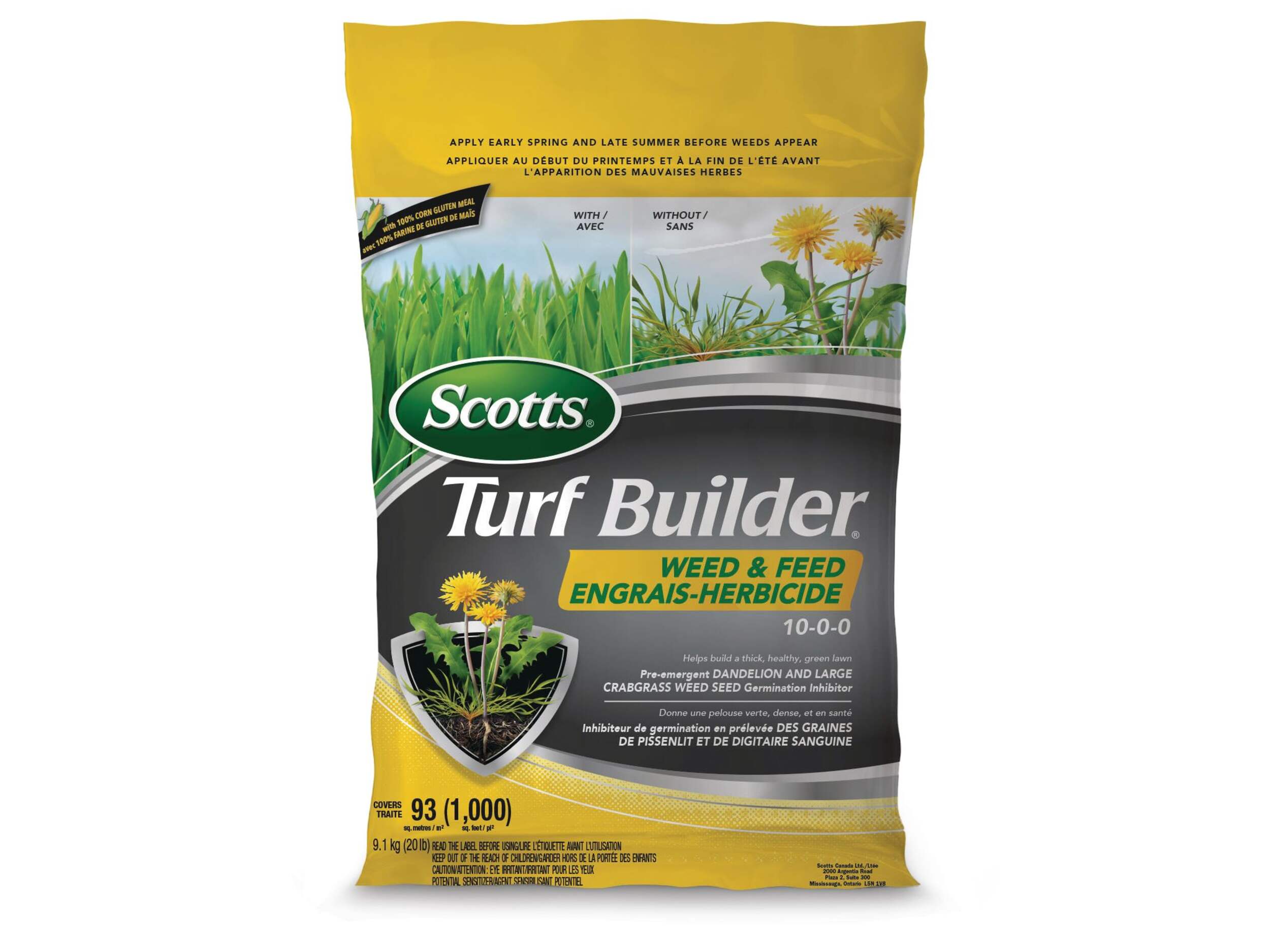 This natural weed/seed inhibitor contains 100% corn gluten meal which absorbs water needed for new weed seeds and starves weeded seeds of their resources. Simply apply with any Scotts® broadcast spreader twice a year. This product prevents germination of dandelion and large crabgrass seeds in the lawn, but established weeds at the time of the application, will not be controlled. For best results, apply in the early spring and late summer before weeds appear.