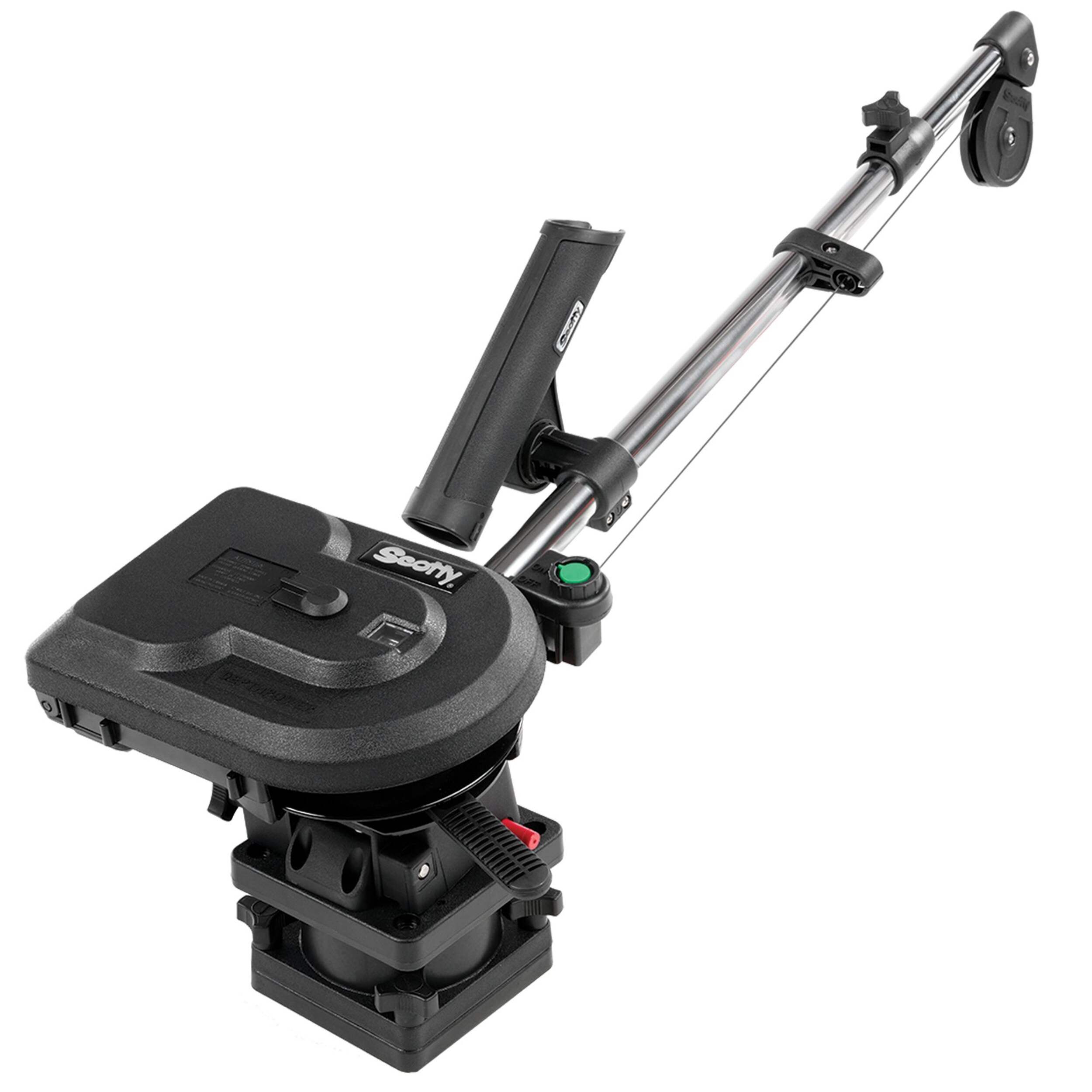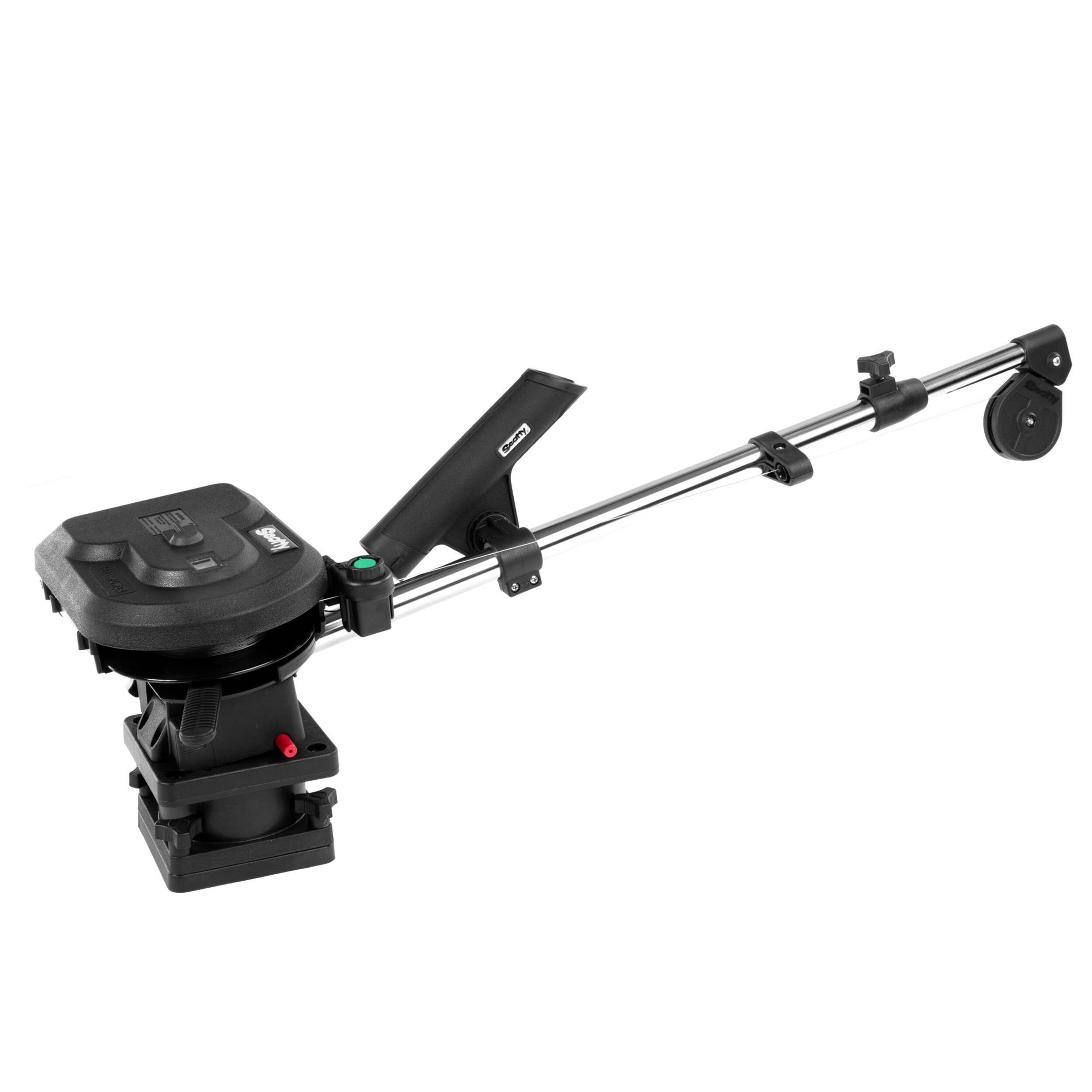 The Scotty 1106 Depthpower Electric Downrigger delivers powerful fishing performance with its 250' stainless steel cable and telescoping 36-60" boom. Collapsing for compact storage, this adjustable electric downrigger lifts 7 lb weights at 235 ft/min and 15 lb weights at 203 ft/min with fully adjustable descent speed. Equipped with a positive-drive depth counter and Kevlar drive belt, the 1106 draws less than 1/3 the battery power of competitors. The swiveling rod holder also mounts with a tilt-up bracket and 1.85" interior diameter.
