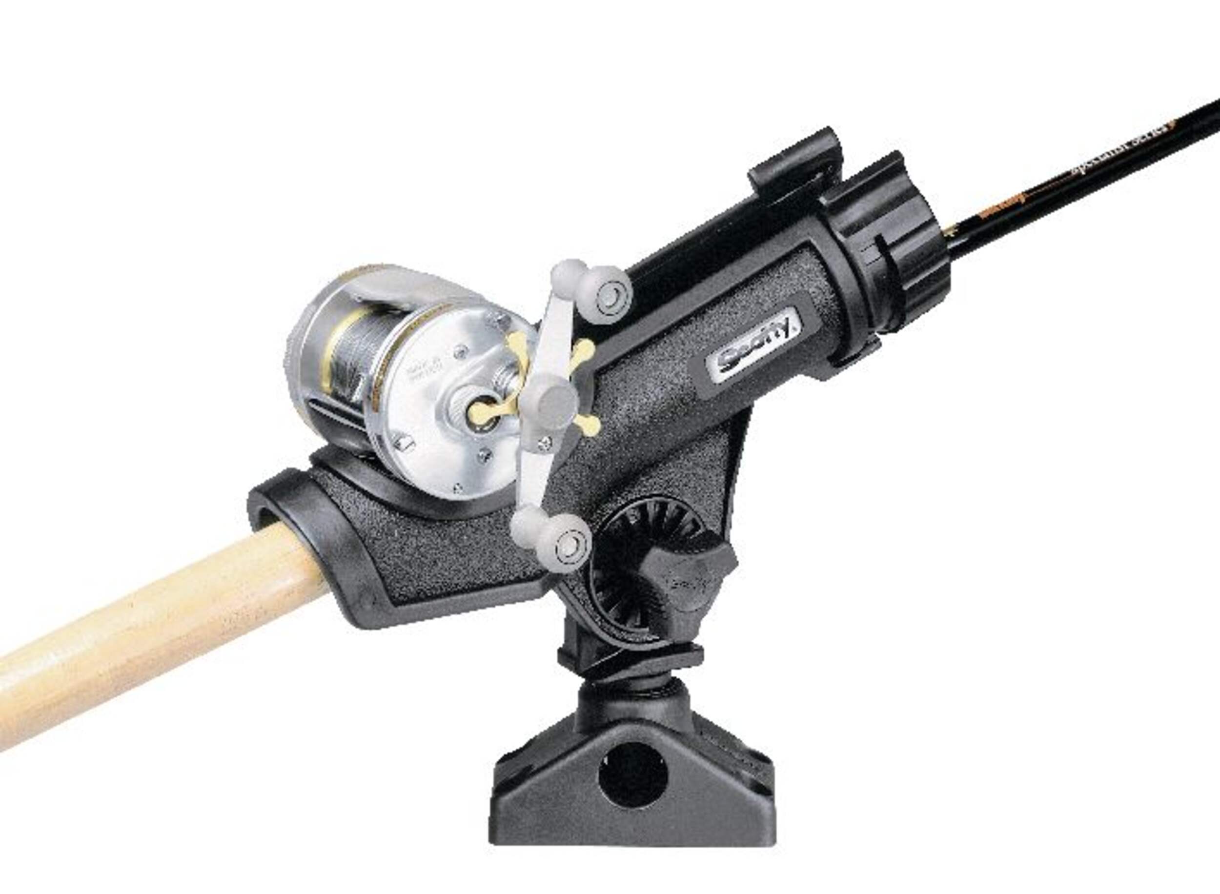 The Scotty 230 Power Lock Rod Holder features a universal cradle that securely holds almost any reel type with a positive-locking design that prevents rod loss while traveling. Made from resilient fibre-reinforced nylon for strength and reliability, this rod holder will take years of use and abuse, so you can focus on reeling in the big ones. The included side mount bracket means you'll be rigged and ready for your next fishing trip in no time.