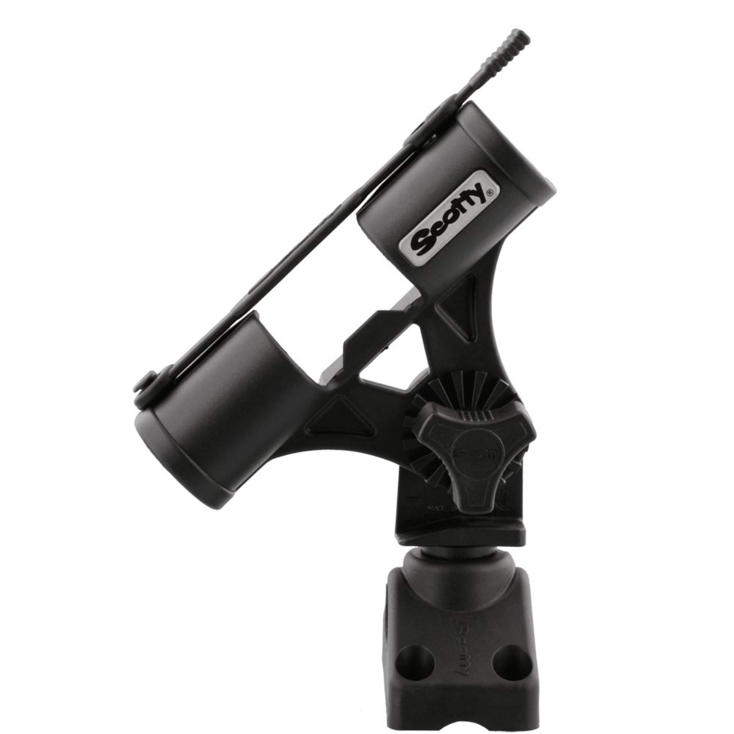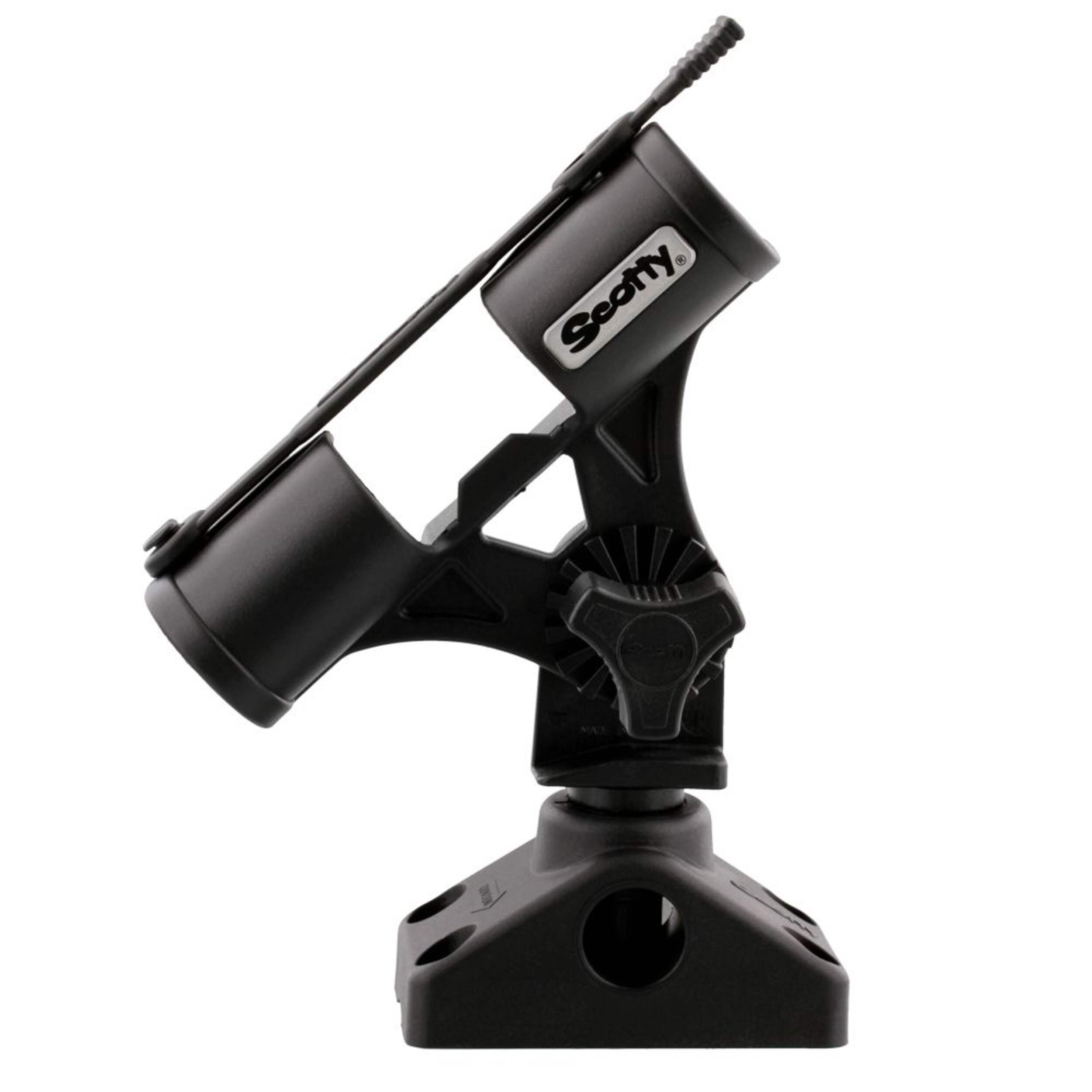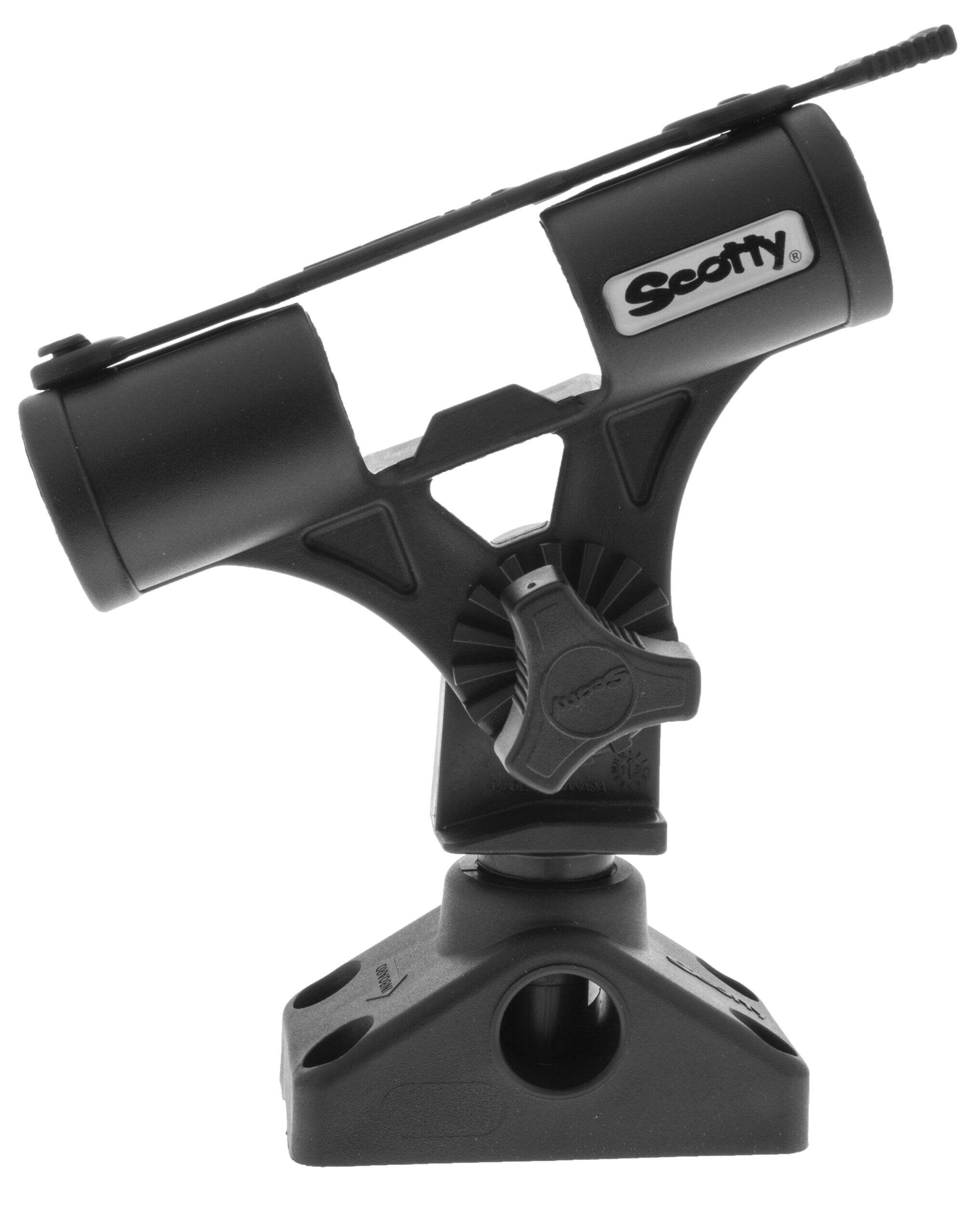 Scotty's ingenious compact fly rod holder allows hands-free trolling or storage while using your favourite fly rod. The fully adjustable, safety-strap equipped design works with even short-butt rods. Made from high strength composite materials for years of reliable use, this rod holder mounts easily to any Scotty post mount for a secure, out-of-the way place to stow your rod when not in use.