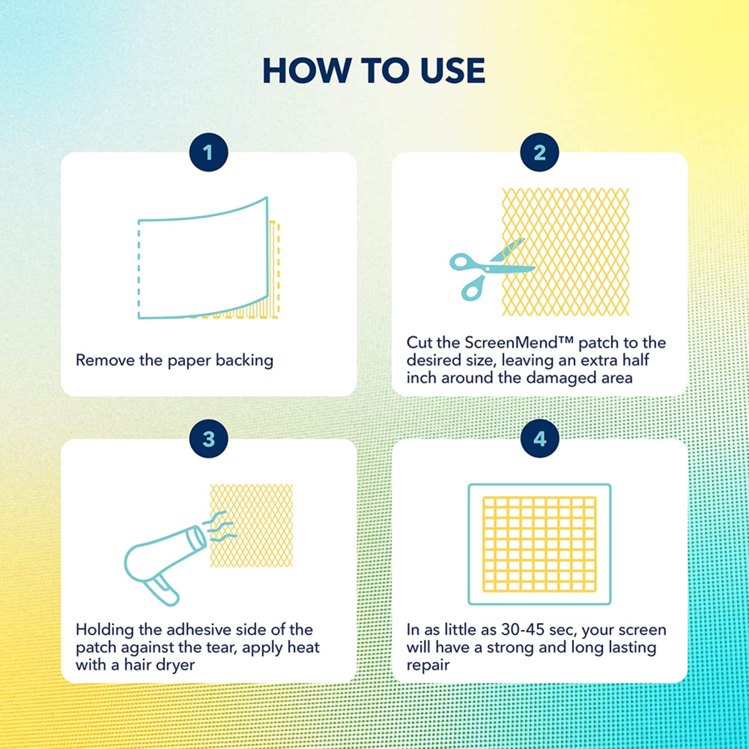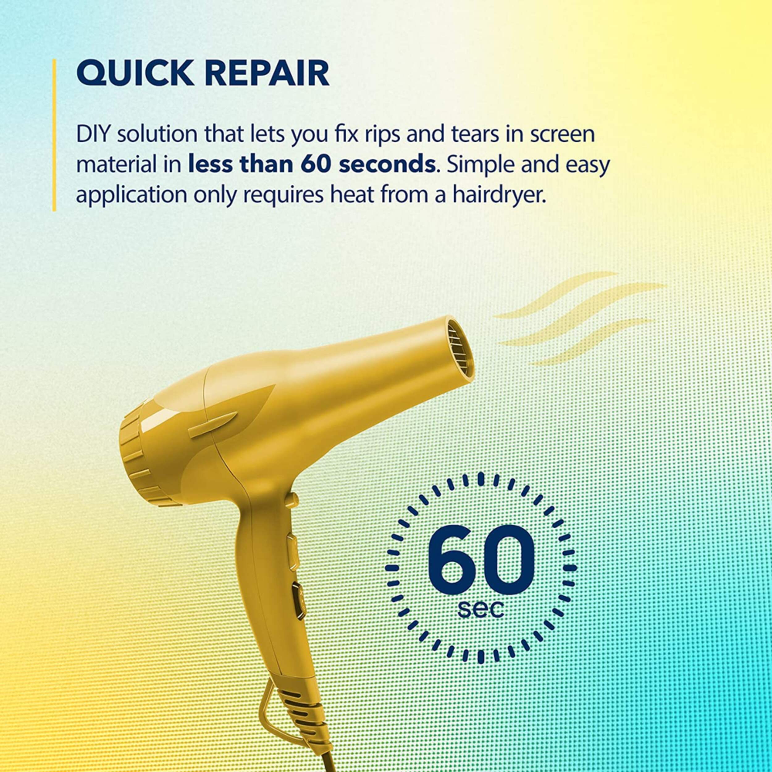 Screenmend is a speedy, hassle-free and budget-friendly screen repair solution. Simply place the screen patch over the damaged region,heat for 60 seconds with a hair dryer and your screen is fixed. With both a patch and a roll option, Screenmend can be utilized for round punctures as well as long tears in your screen. Don't waste time searching for a new screen or replacing the mesh,make it like new in seconds with Screenmend.
