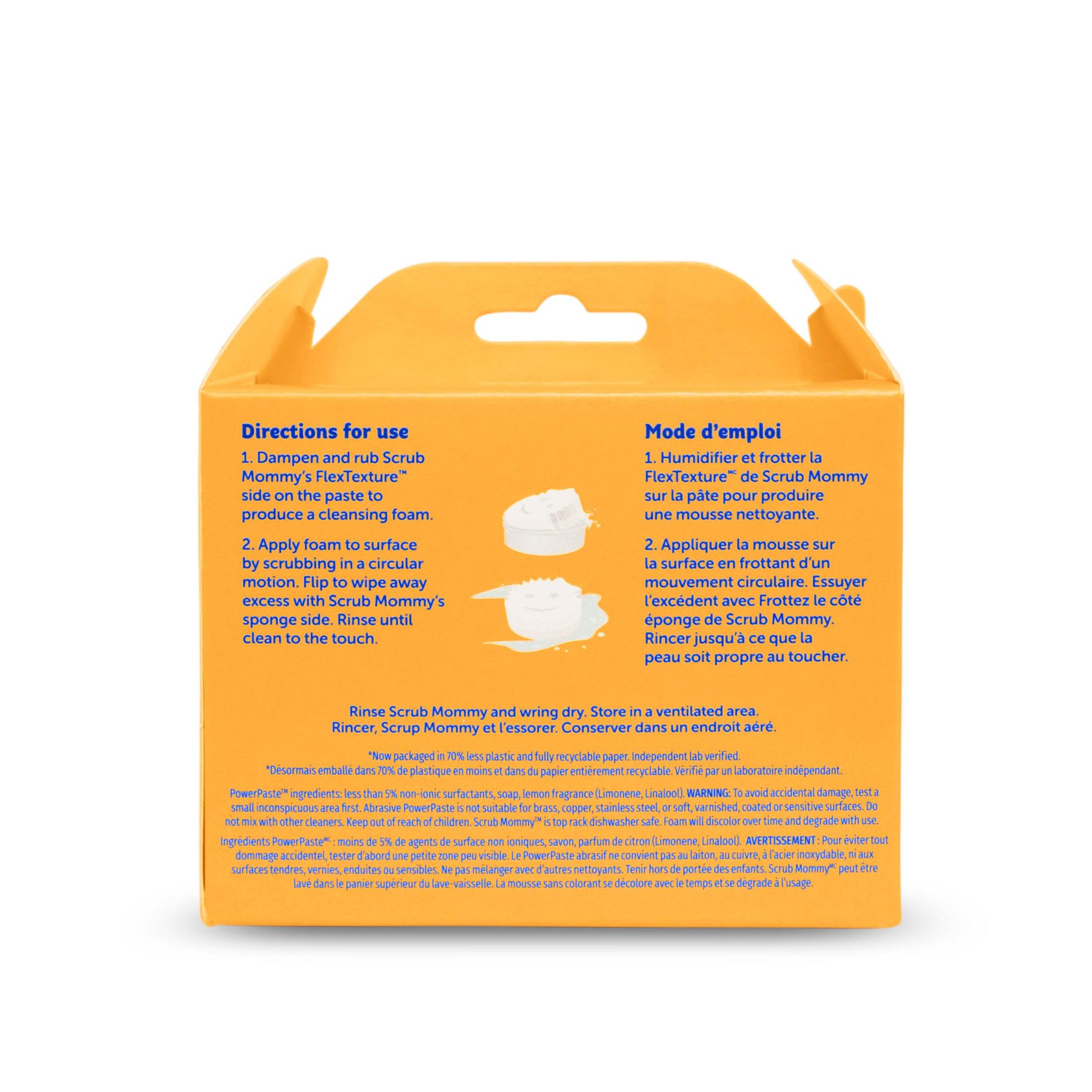 To use, dampen sponge with water and swirl to produce a cleaning foam.