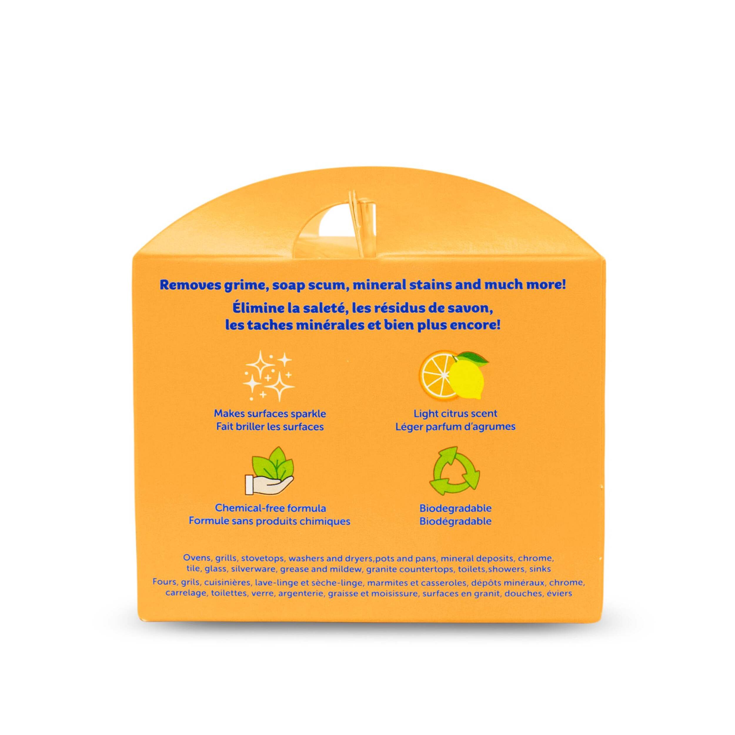 Effectively removes dirt, limescale, grease, food residue, soap scum, and more.