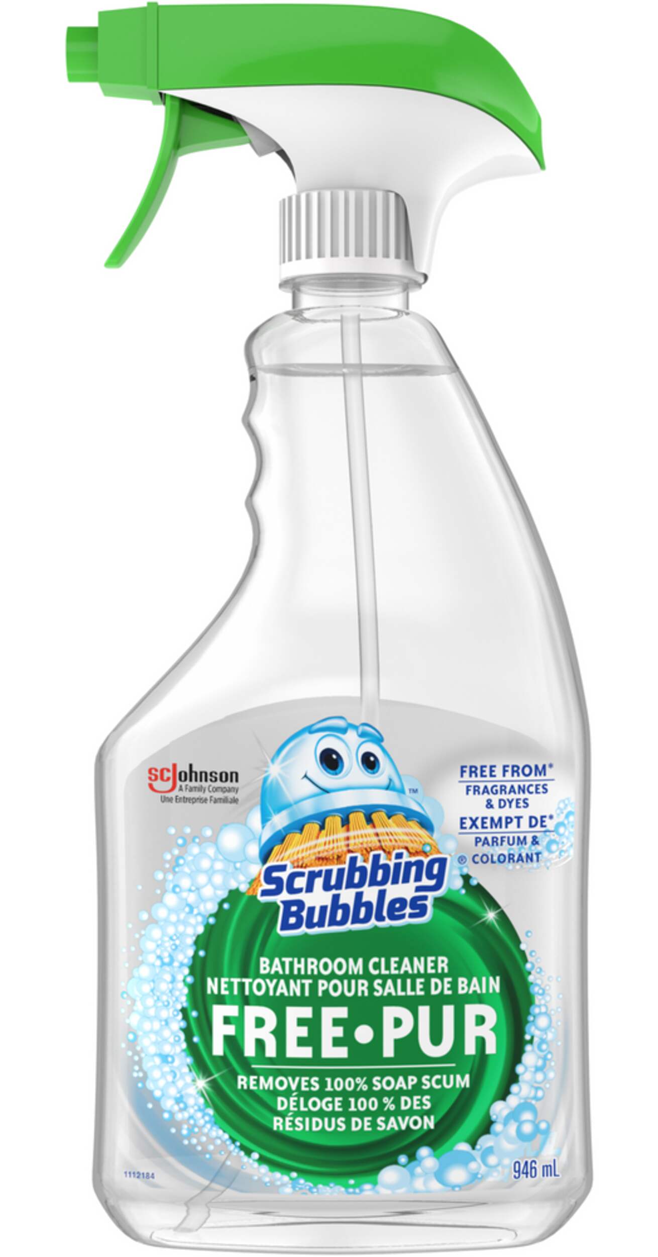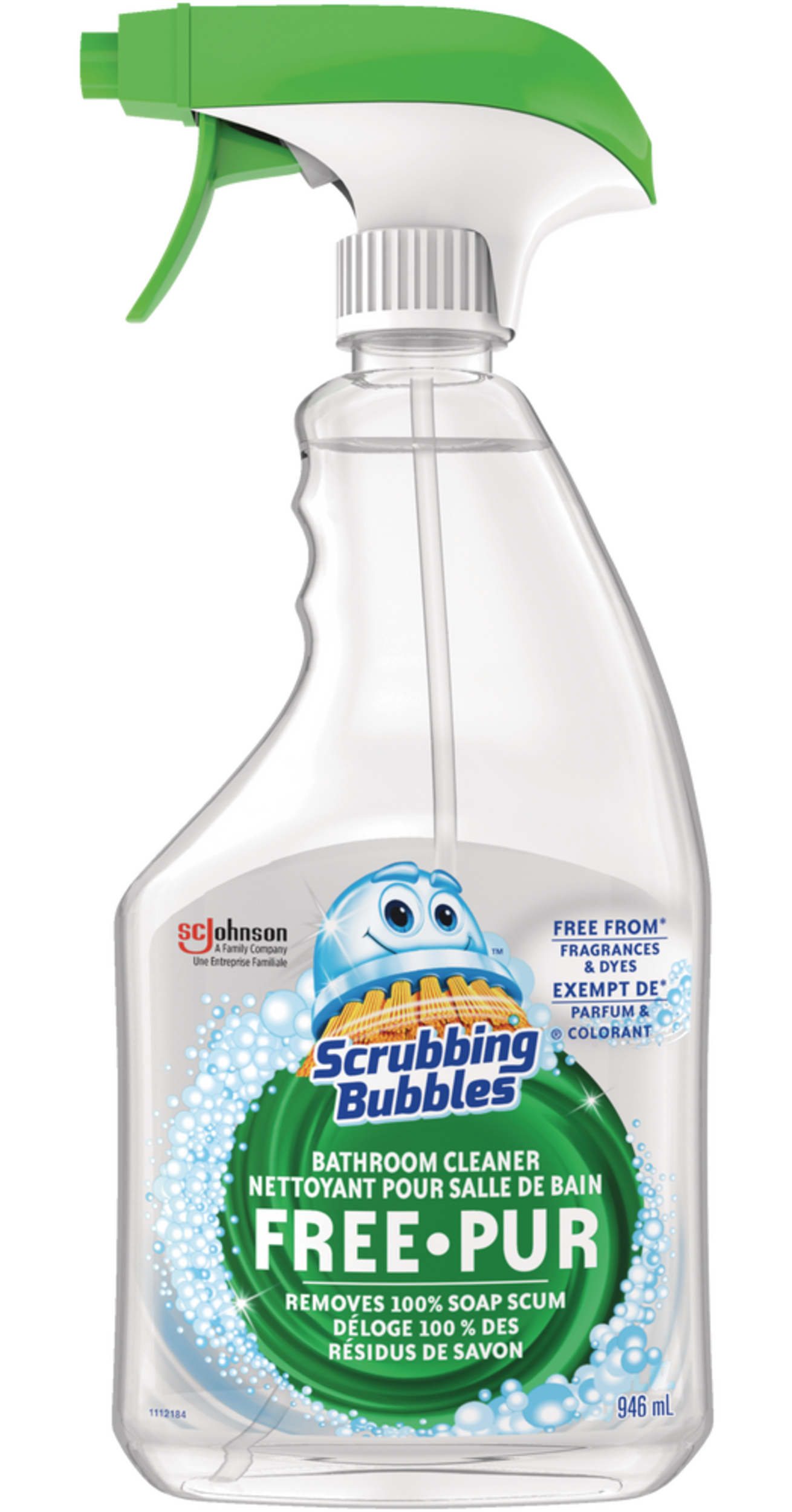 Introducing Scrubbing Bubbles FREE – this foaming formula effectively removes dirt from multiple bathroom surfaces, all with the added benefit of being FREE from fragrances and dies. Get 100% soap scum removal with no harsh smells!