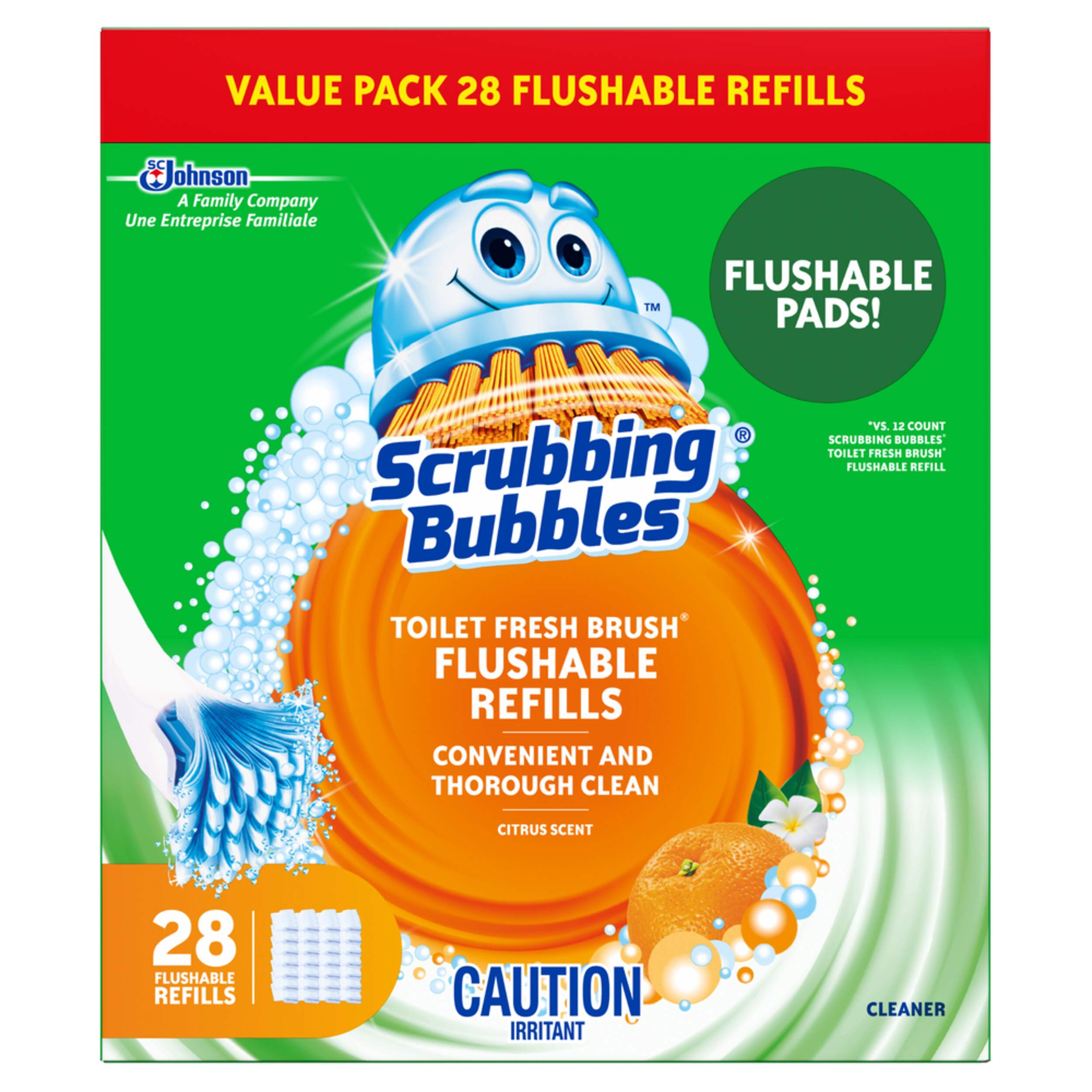 Get a handle on the messes of your toilet bowl with Scrubbing Bubbles Fresh Brush Toilet Cleaning System. It is the only system with flushable pads for a convenient clean. After you are done scrubbing, just flush the dirty pads away! The flushable pads clean thoroughly and erase stains for a clean toilet. The long toilet wand also keeps you further away from the dirty toilet. After cleaning, use Scrubbing Bubbles Toilet Cleaning Gel to keep your toilet smelling fresh.