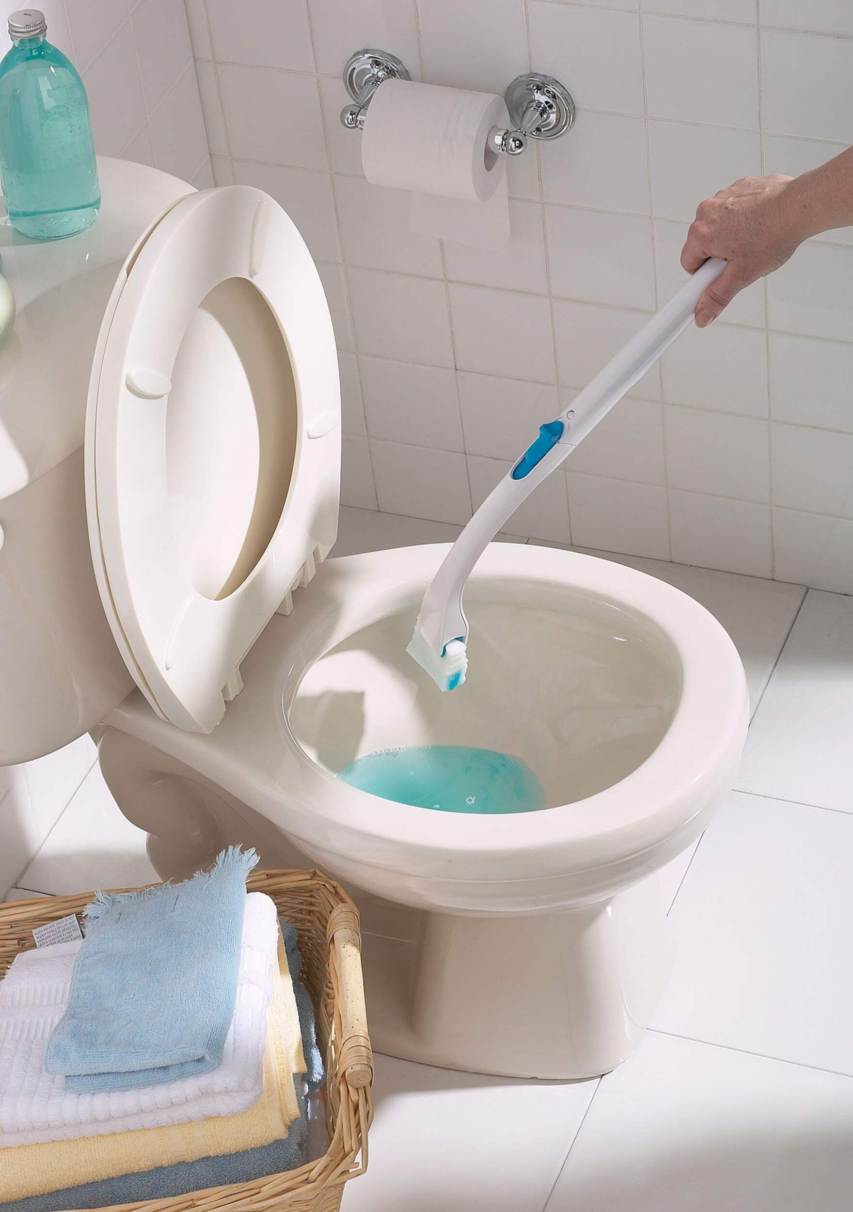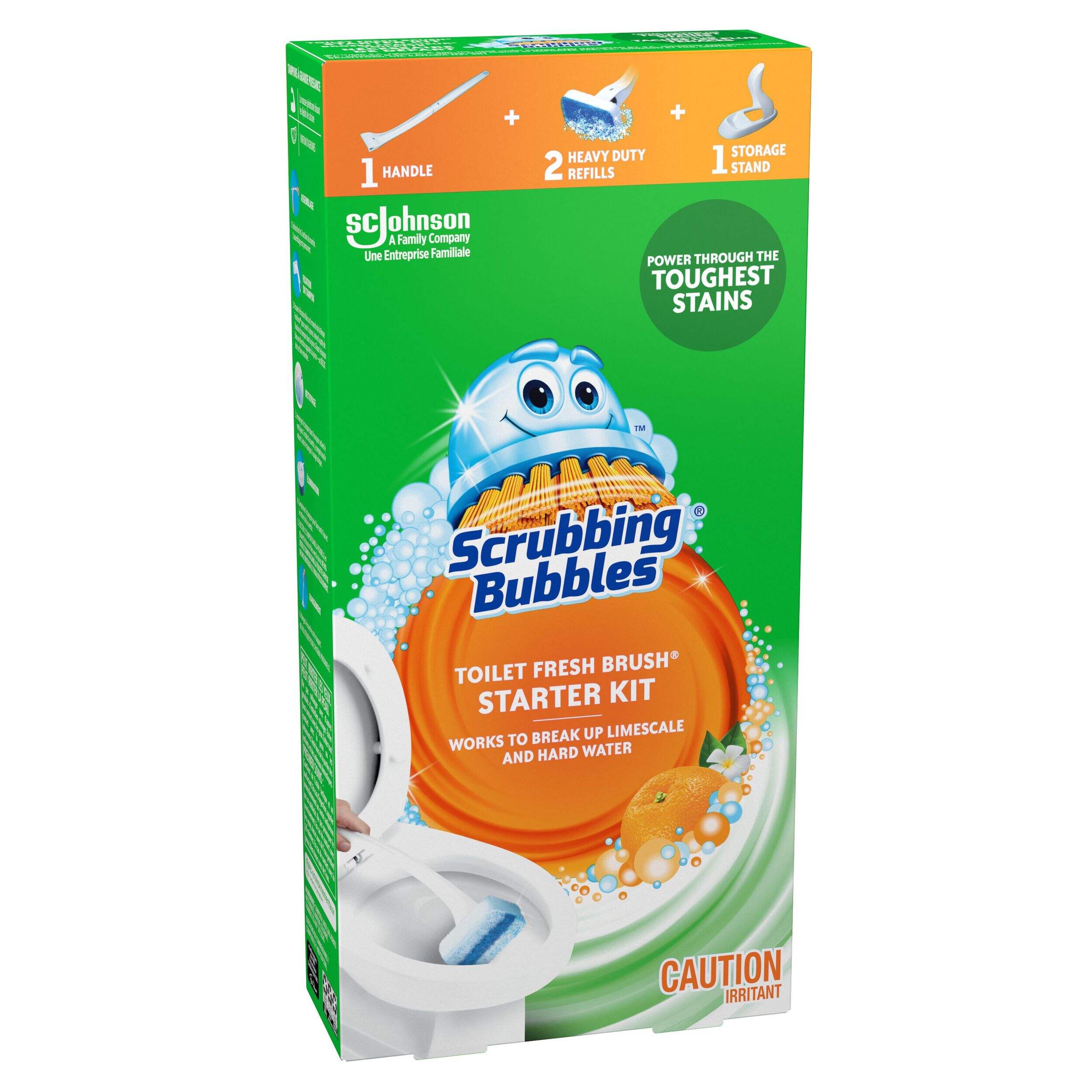 Scrubbing Bubbles Toilet Brush is a complete toilet cleaning system that consists of a starter handle and four brush tips