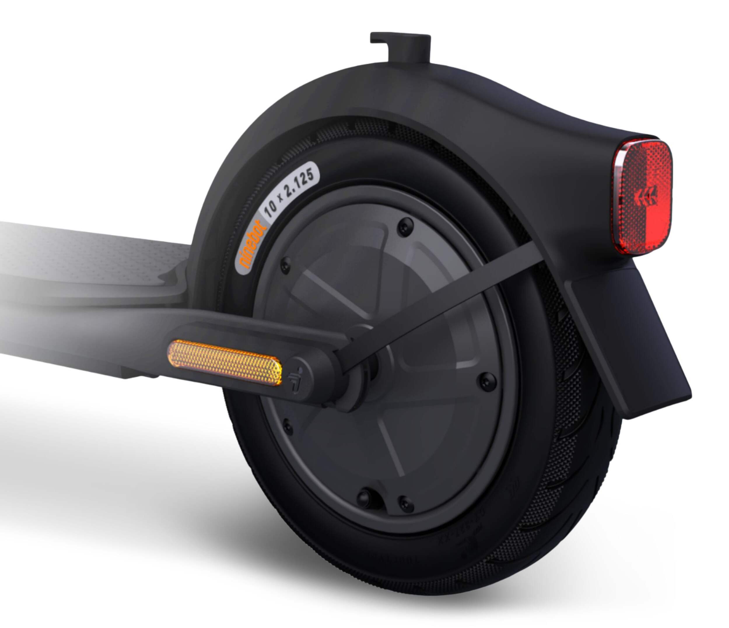 Glide through the city with the Segway Ninebot KickScooter F2 Pro, combining style, performance, and sustainability. This sleek electric scooter keeps you visible with bright front and rear LED lights and reflectors for safer night rides. Equipped with a dual-braking system that includes electronic rear ABS braking and a front mechanical disc brake, it provides reliable stopping power when it counts. The 10" maintenance-free, self-sealing tires offer smooth, worry-free rides without the hassle of flats. Plus, with a convenient kickstand and foldable design, it’s easy to take your eco-friendly ride anywhere.