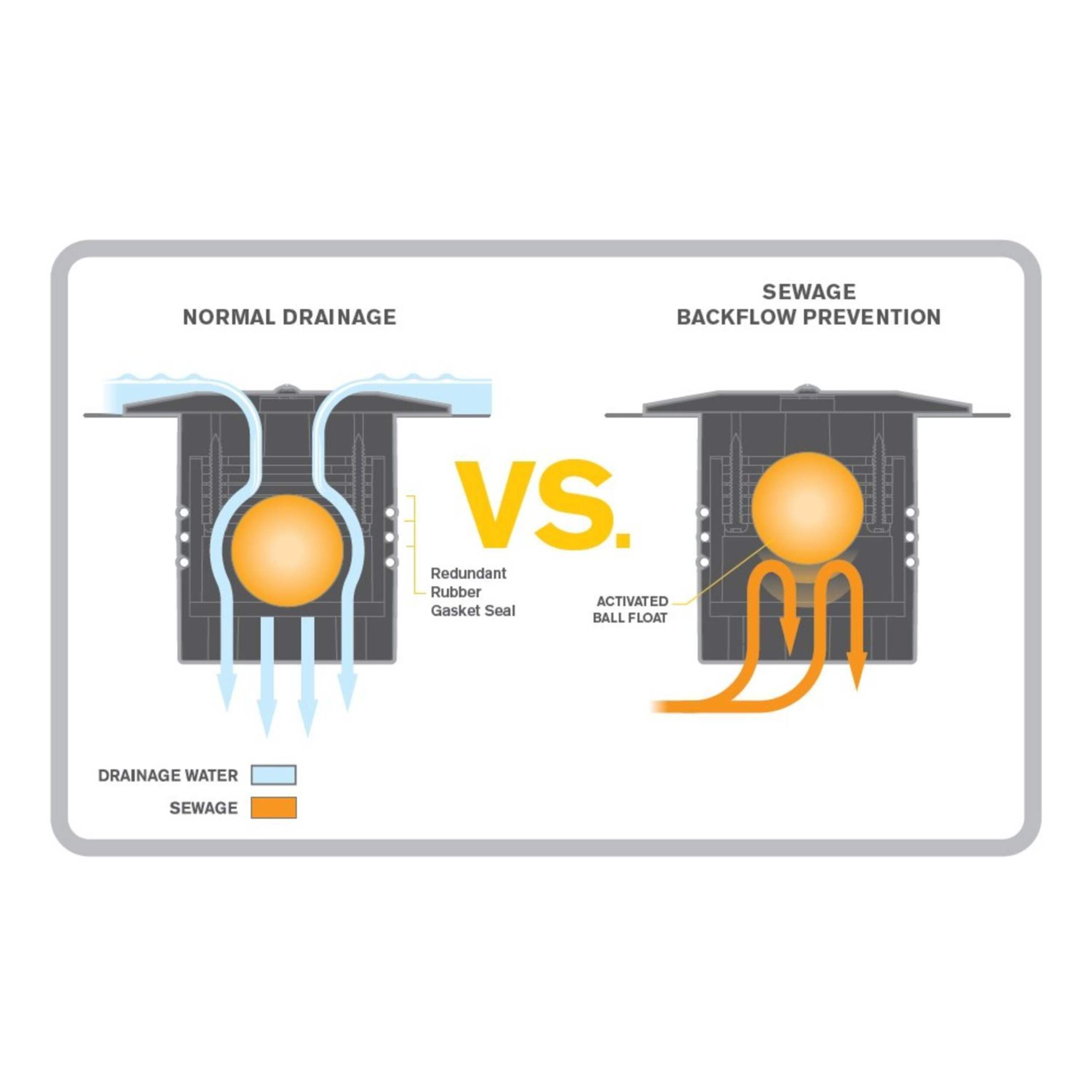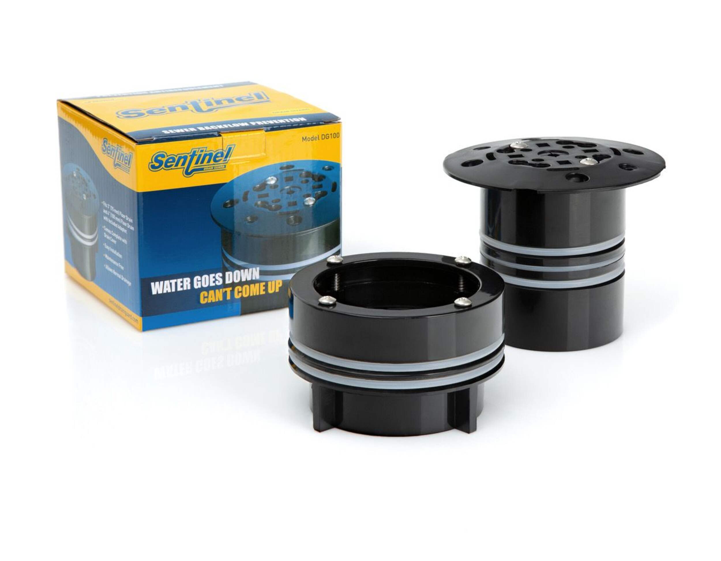 Sentinel Backflow Protection fits 3" (75mm) floor drain and 4" (100 mm) floor drain with included adapter