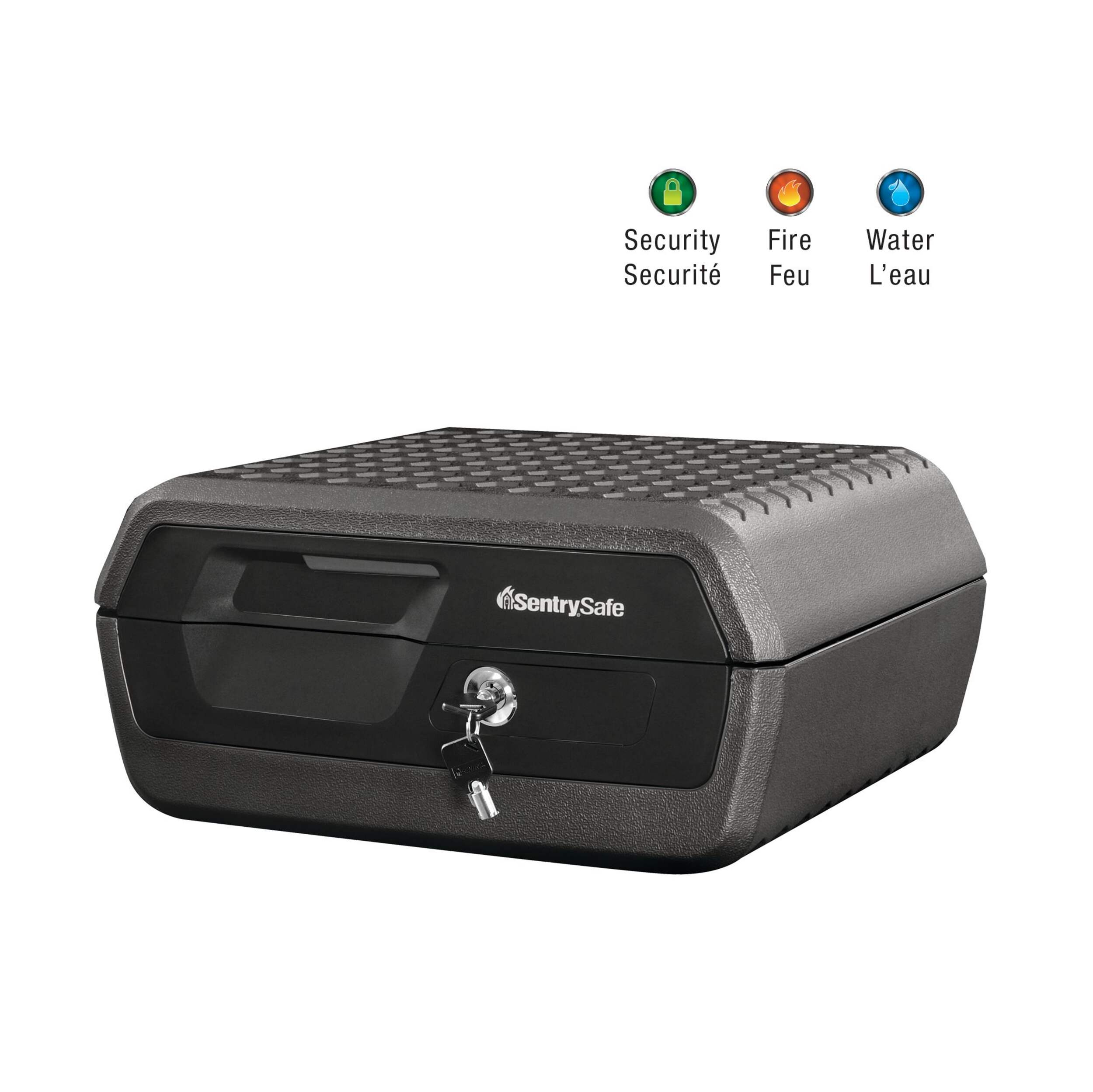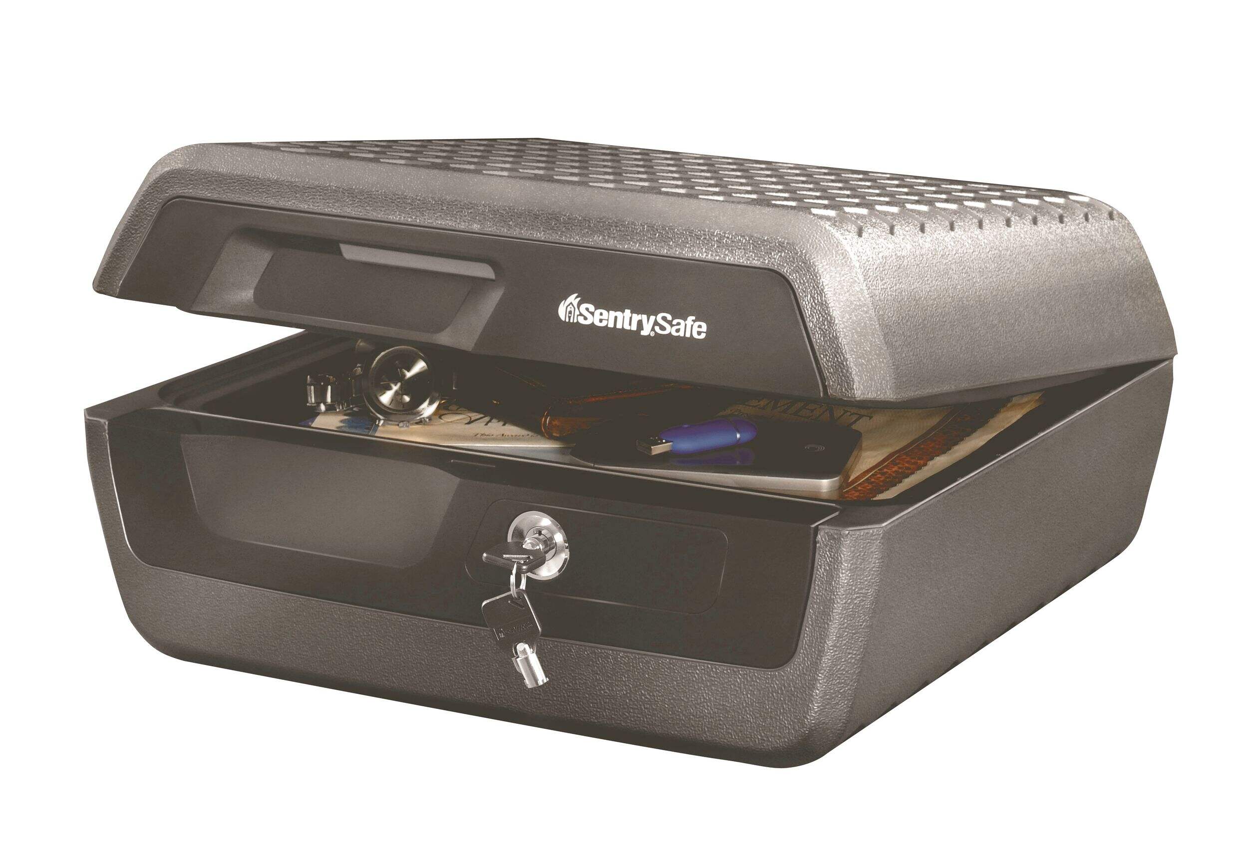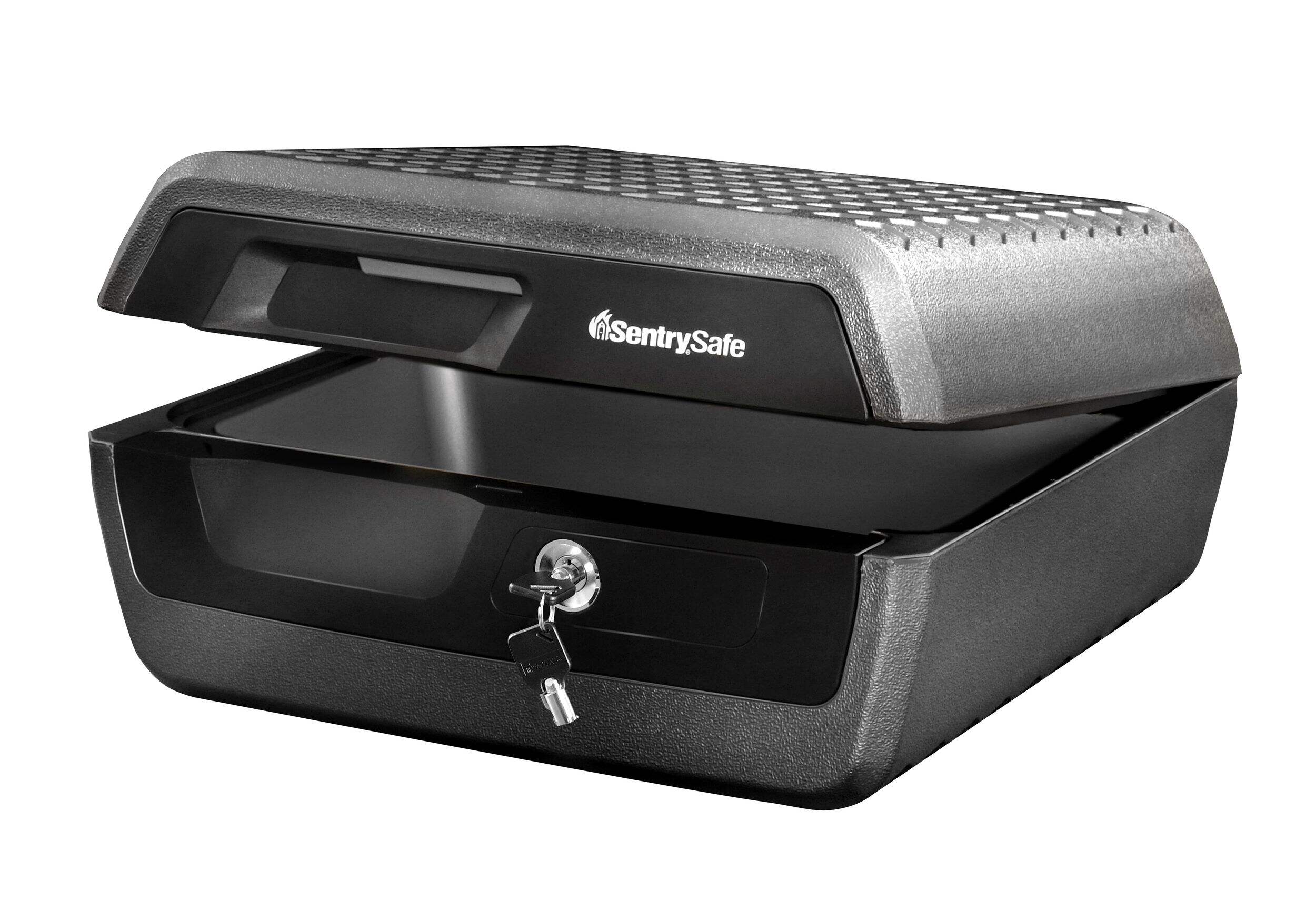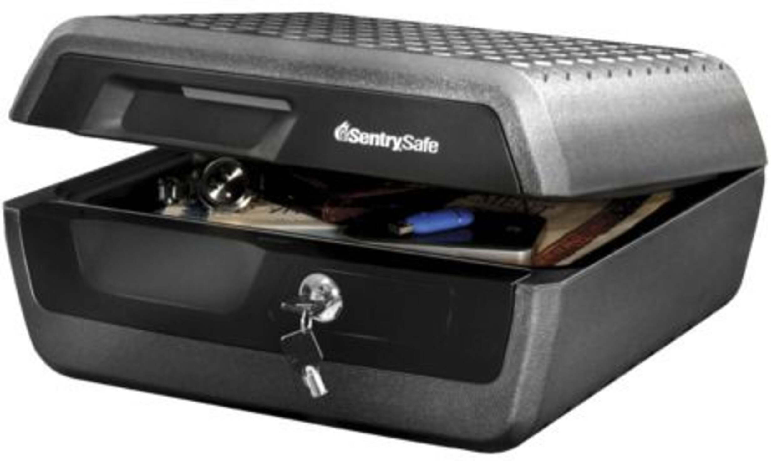 The SentrySafe Fire and Water-Resistant Chest is designed to withstand fire and flood emergencies. It is UL Classified to endure temperatures up to 843°C (1,550°F) for up to 30 minutes. It is also ETL Verified to protect valuables from water damage for up to 72 hours in flood conditions. The chest comes with a tubular key lock to prevent unauthorized access, while its compact size makes it convenient for home storage without taking up too much space.