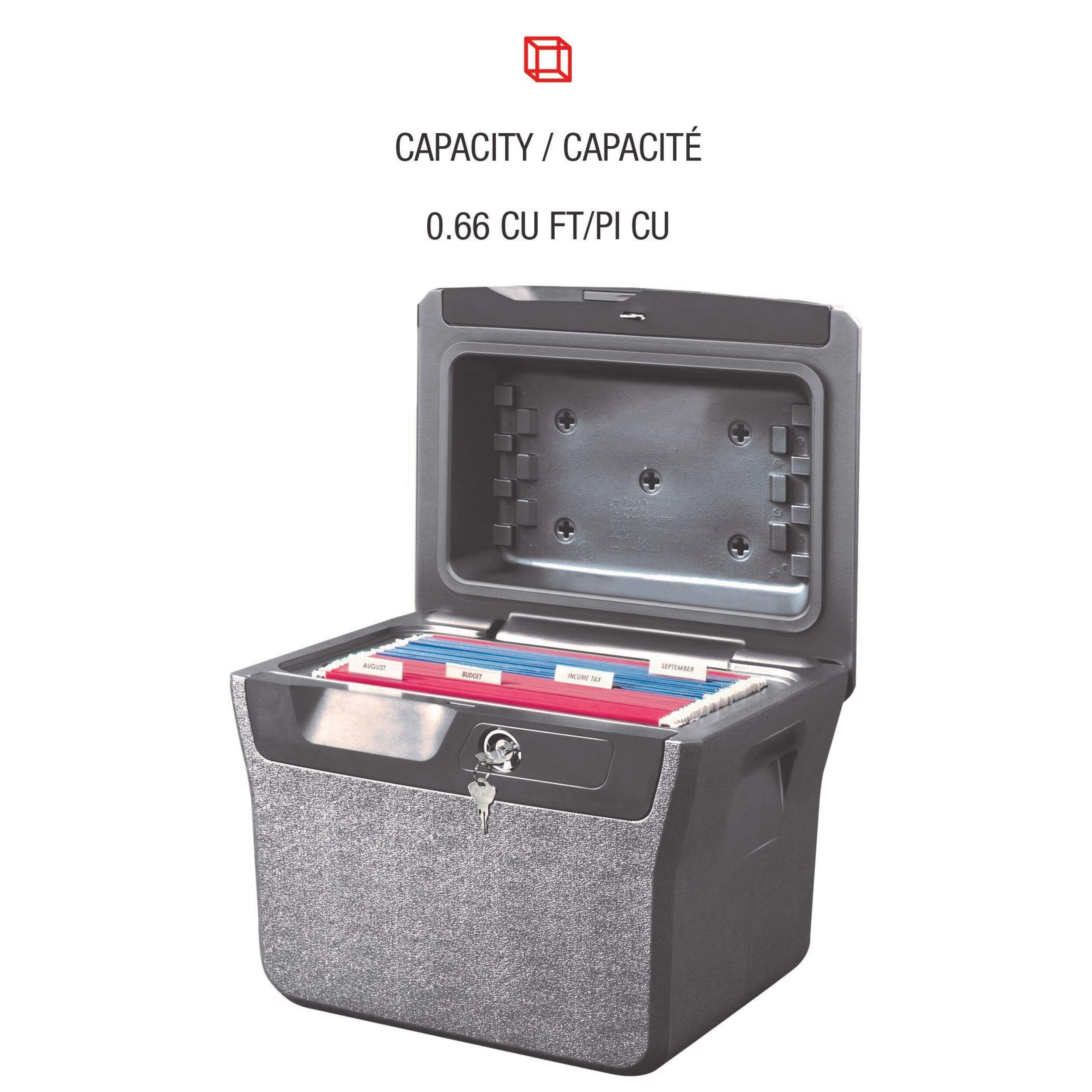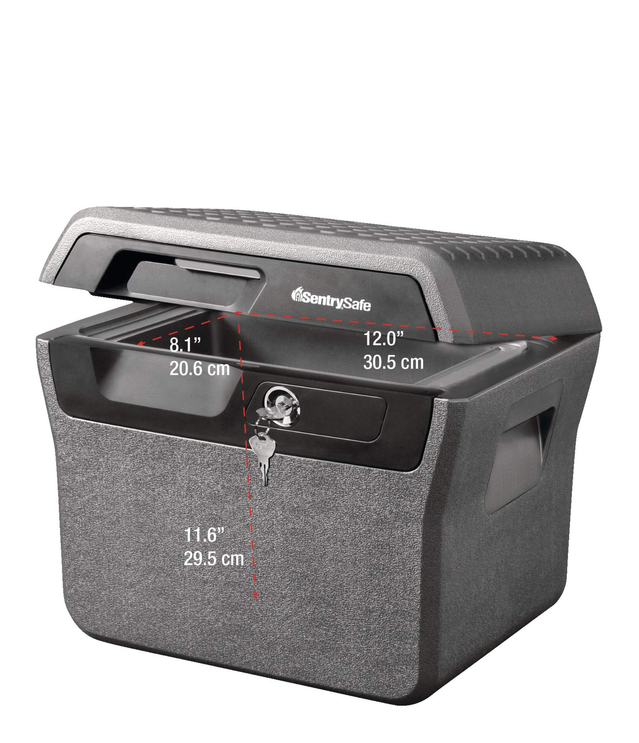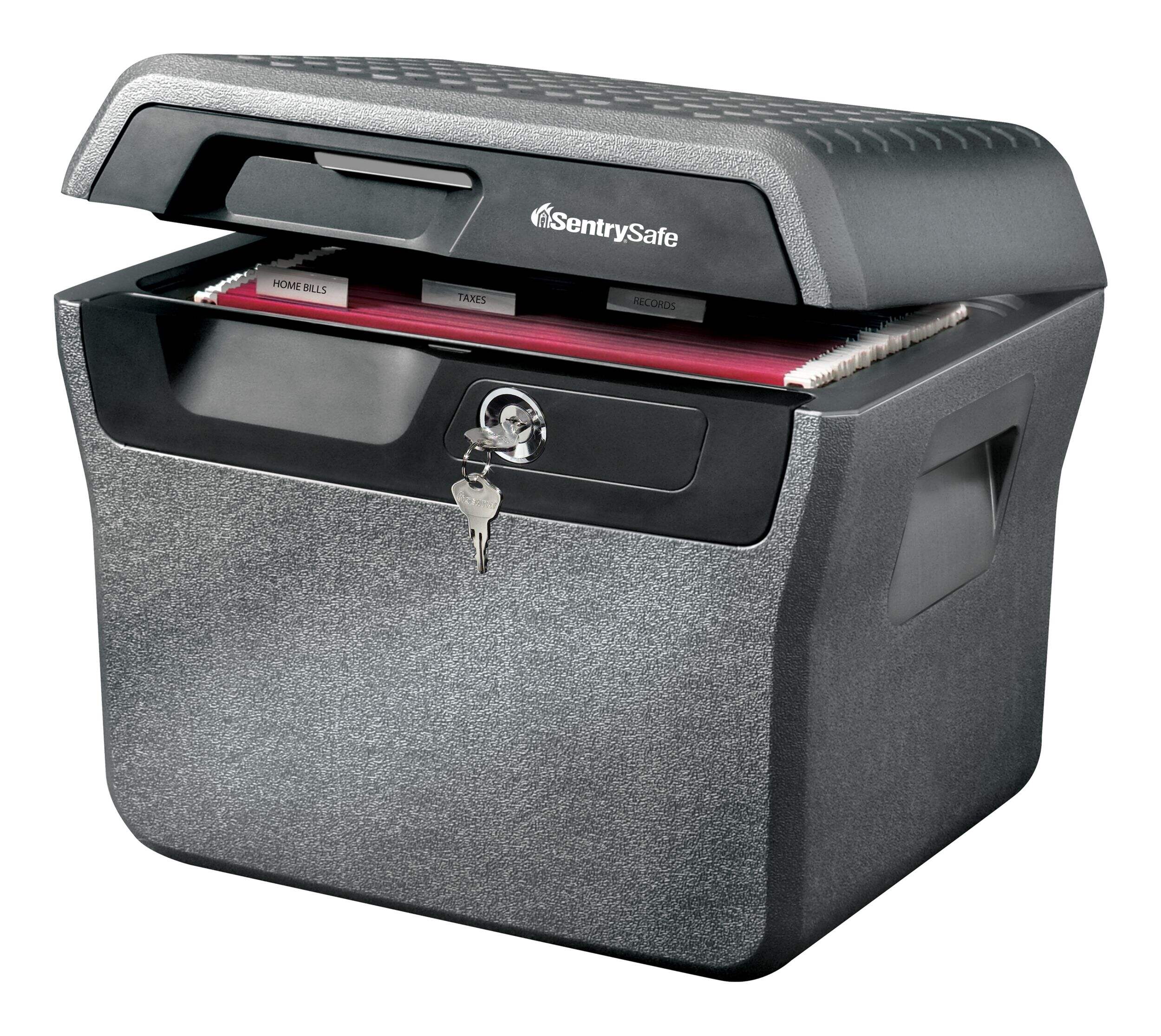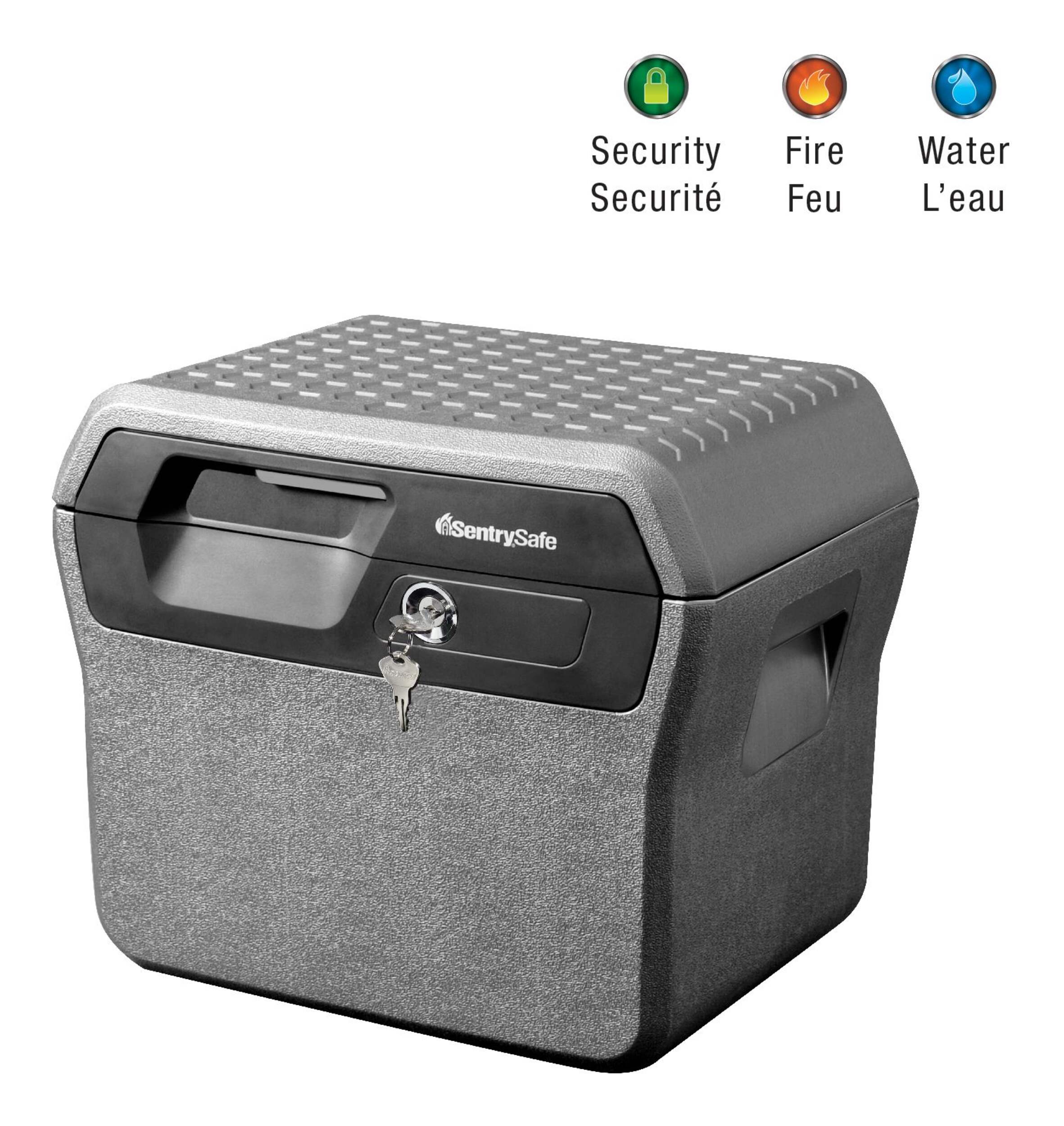 Keep important documents and records safe and secure with the SentrySafe Large Fire and Water Resistant File Safe Box. Designed to protect in fires up to 1700°F and remain water-resistant for up to 24 hours when submerged, this spacious safe offers reliable protection for your valuables. UL classified and ETL verified, it’s made with durable steel construction for lasting use. A convenient handle ensures easy transportation.