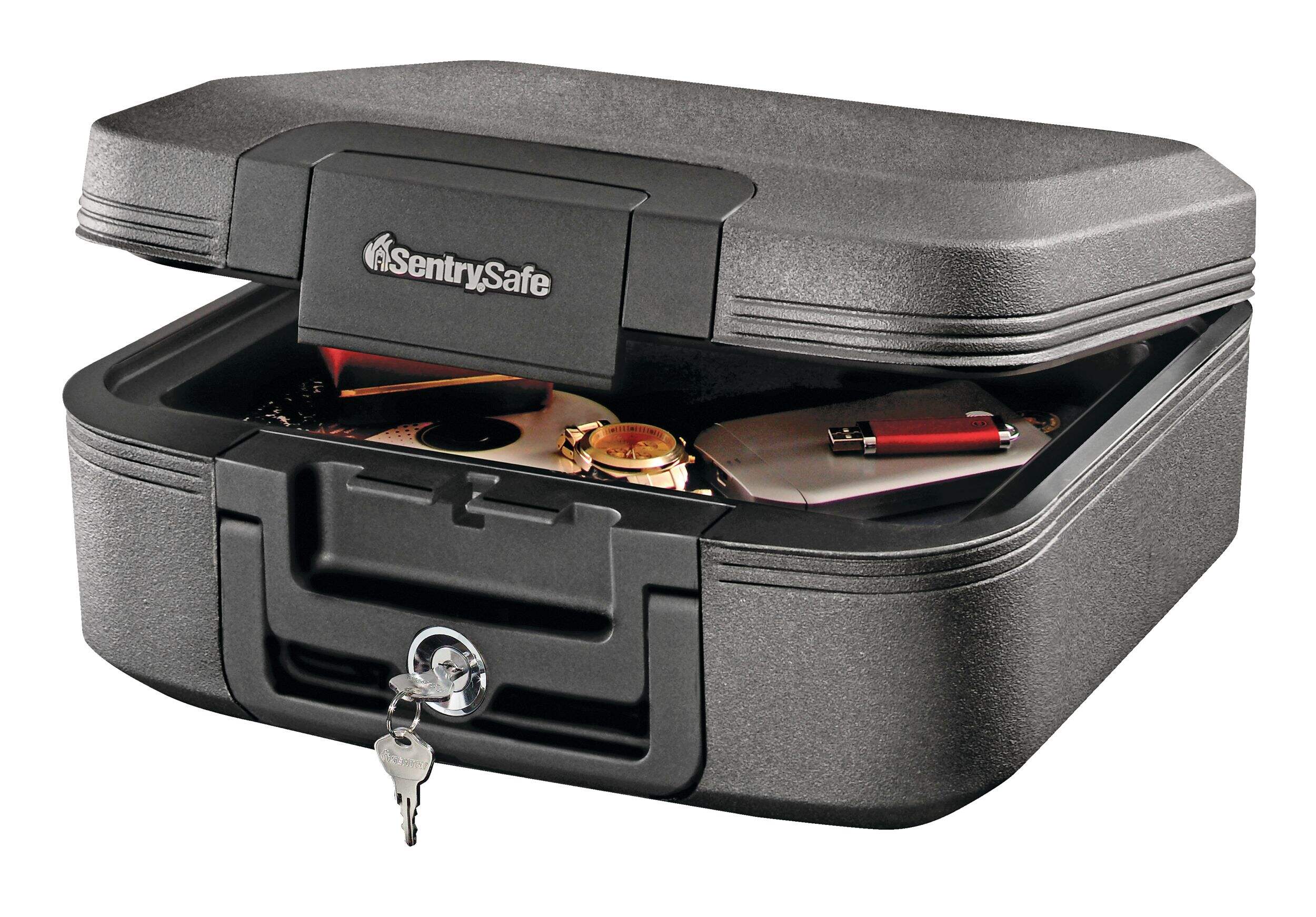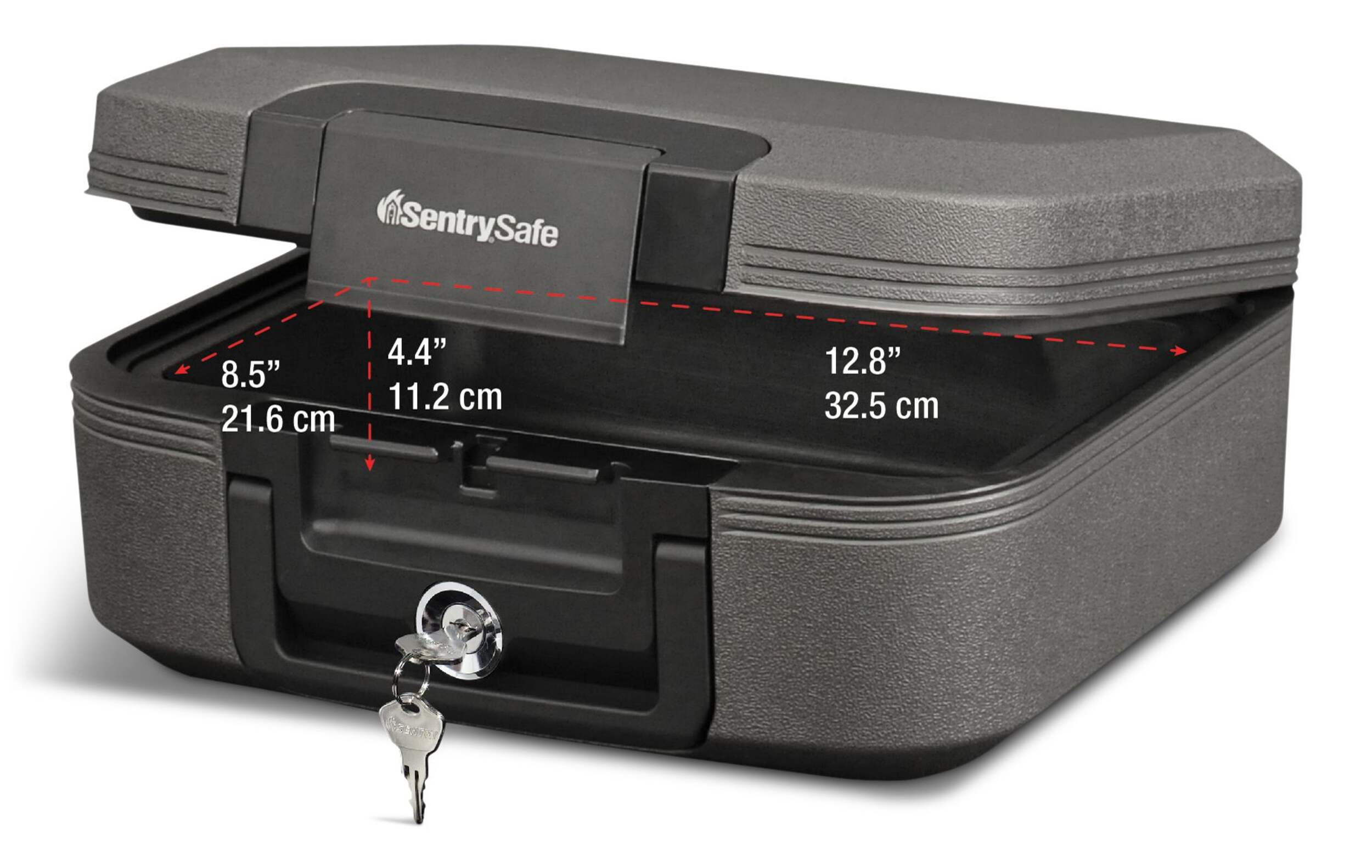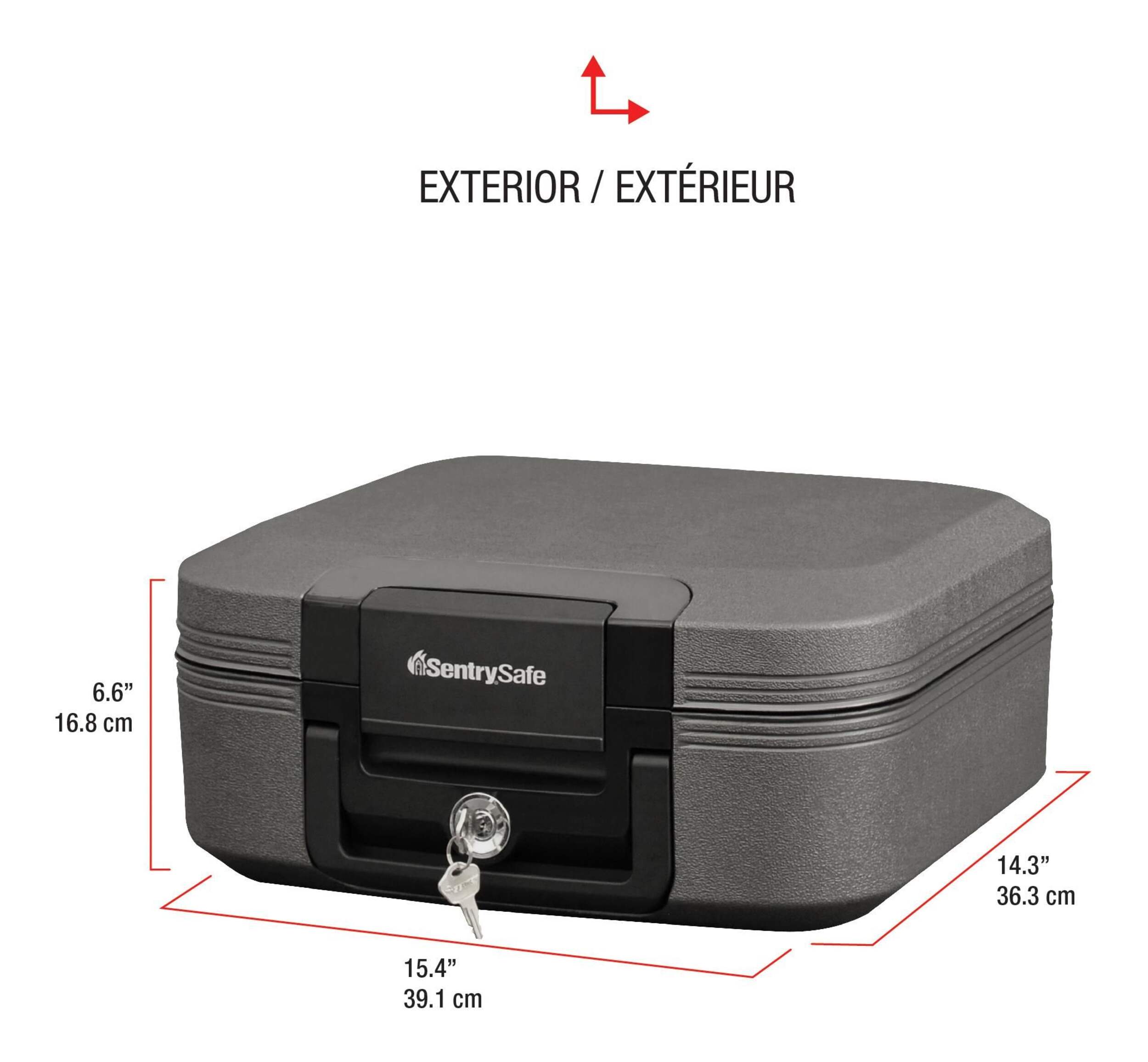 The SentrySafe Medium Fire and Water-Resistant Chest Safe Box provides reliable protection for your valuables against fire, water, and theft. With an 8-litre capacity, this compact yet sturdy safe is ideal for safeguarding important documents, digital media, and other small items. The fire-resistant design protects contents for up to 30 minutes in temperatures reaching 843°C (1550°F), while the water-resistant seal ensures items stay dry during floods or water damage