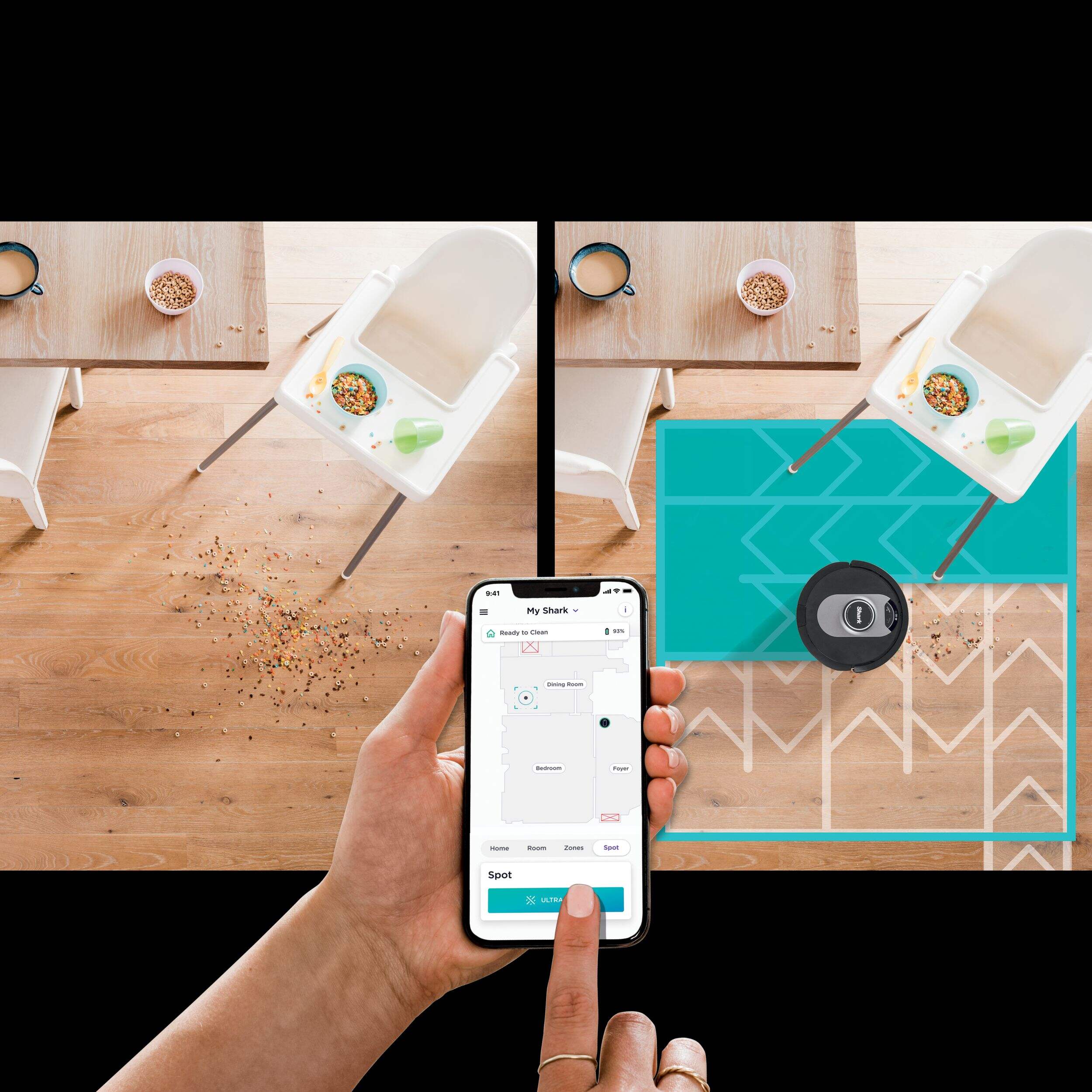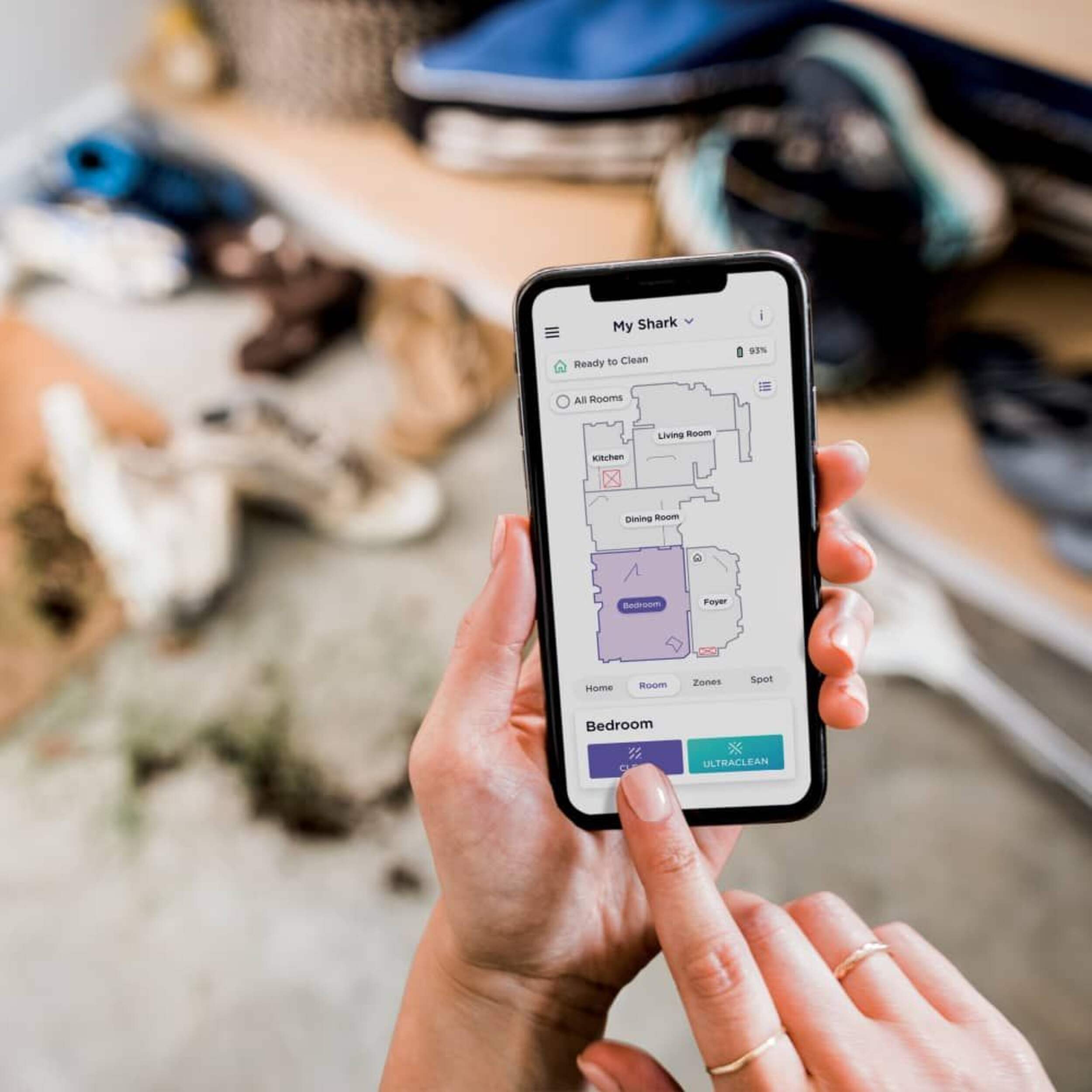 Select UltraClean Mode™ in the SharkClean™ app to target certain rooms, high-traffic zones, or specific spots for complete coverage