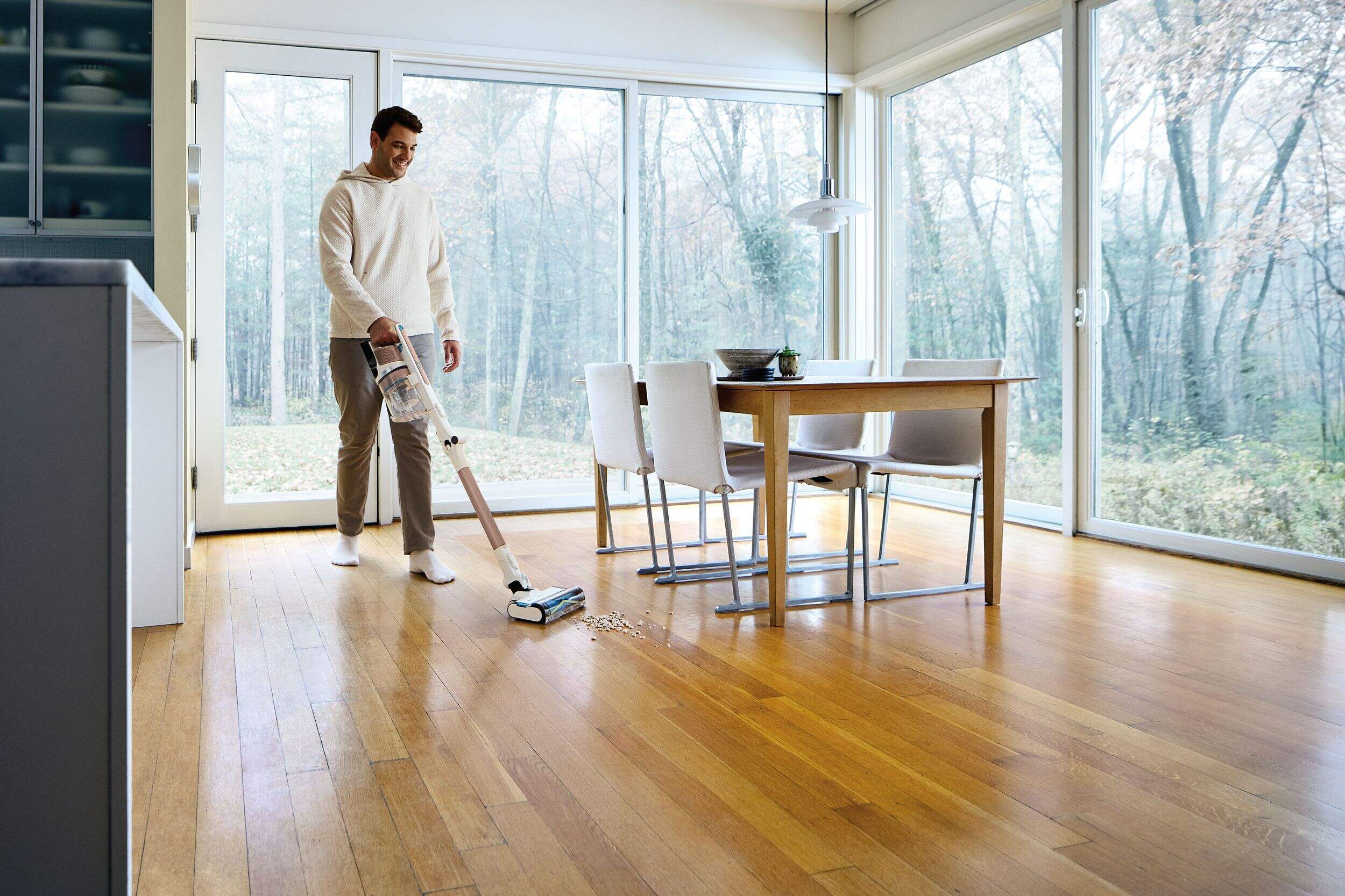 FloorDetect technology detects floor type and automatically adjusts brushroll speed for maximized performance on all surfaces