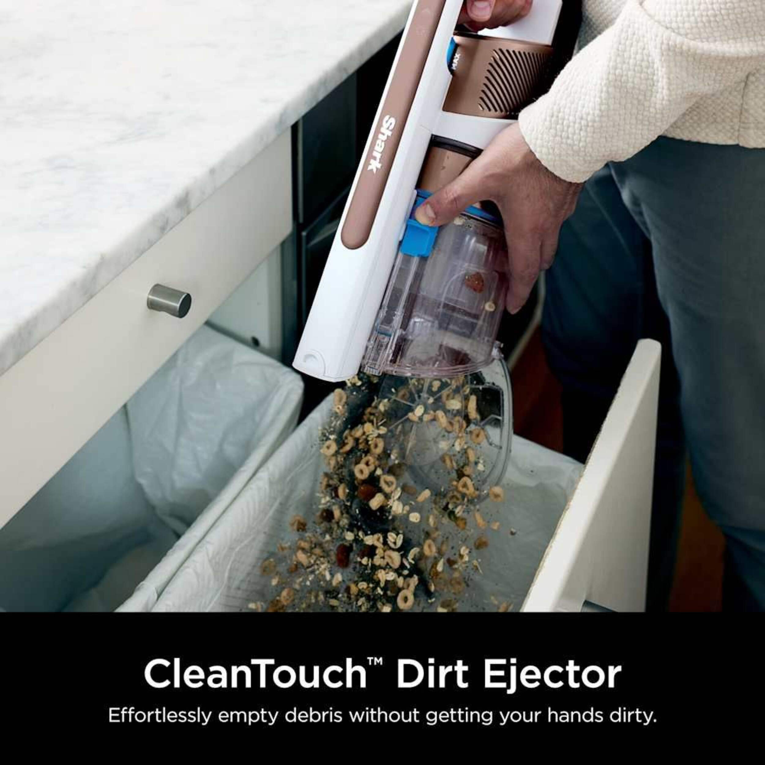 The Shark Power Pro Reveal Cordless Stick Vacuum provides hypervelocity suction in a lightweight, maneuverable design. Its PowerFins multi-surface nozzle digs deep into carpets and directly engages hard floors for continuous cleaning contact. It comes equipped with FloorDetect and Dirt-Reveal technology, which detects floor type and automatically adjusts brushroll speed for maximized performance on all surfaces and illuminates hidden dirt to ensure no spot is missed. It also has a self-cleaning brushroll to ensure no hair wrap, making it great for pet owners.
