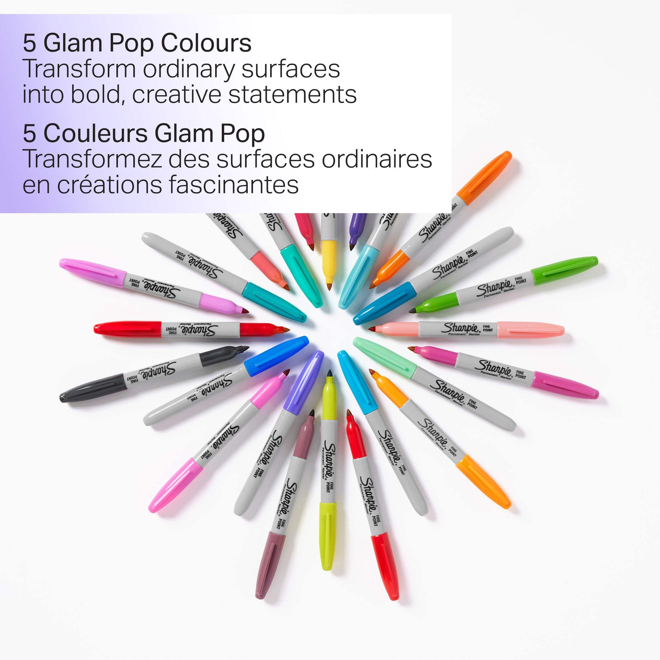 Make your mark with the Sharpie Glam Pop Assorted Permanent Markers 5-Pack. This pack includes an array of vivid, eye-catching colours to choose from. The included markers feature fine tips for creating bold yet detailed marks on a wide variety of materials and surfaces. Express yourself with these versatile permanent markers in a veritable rainbow of bright hues.