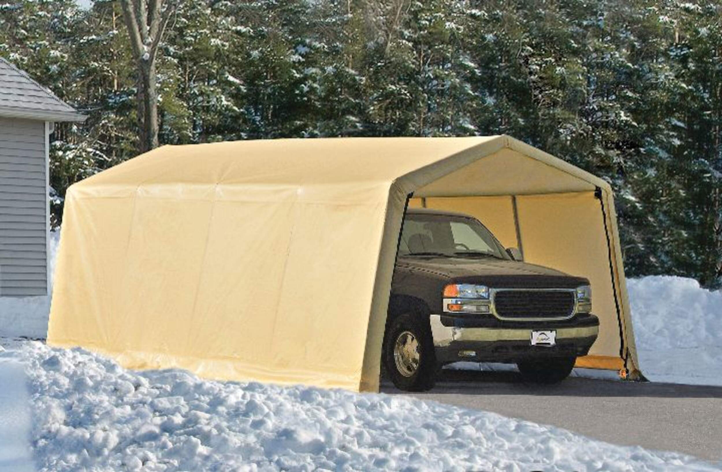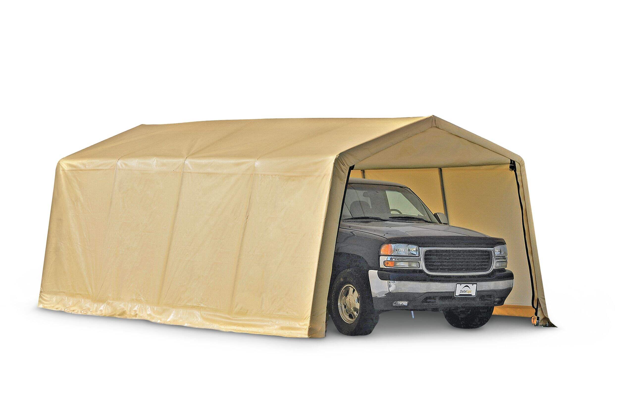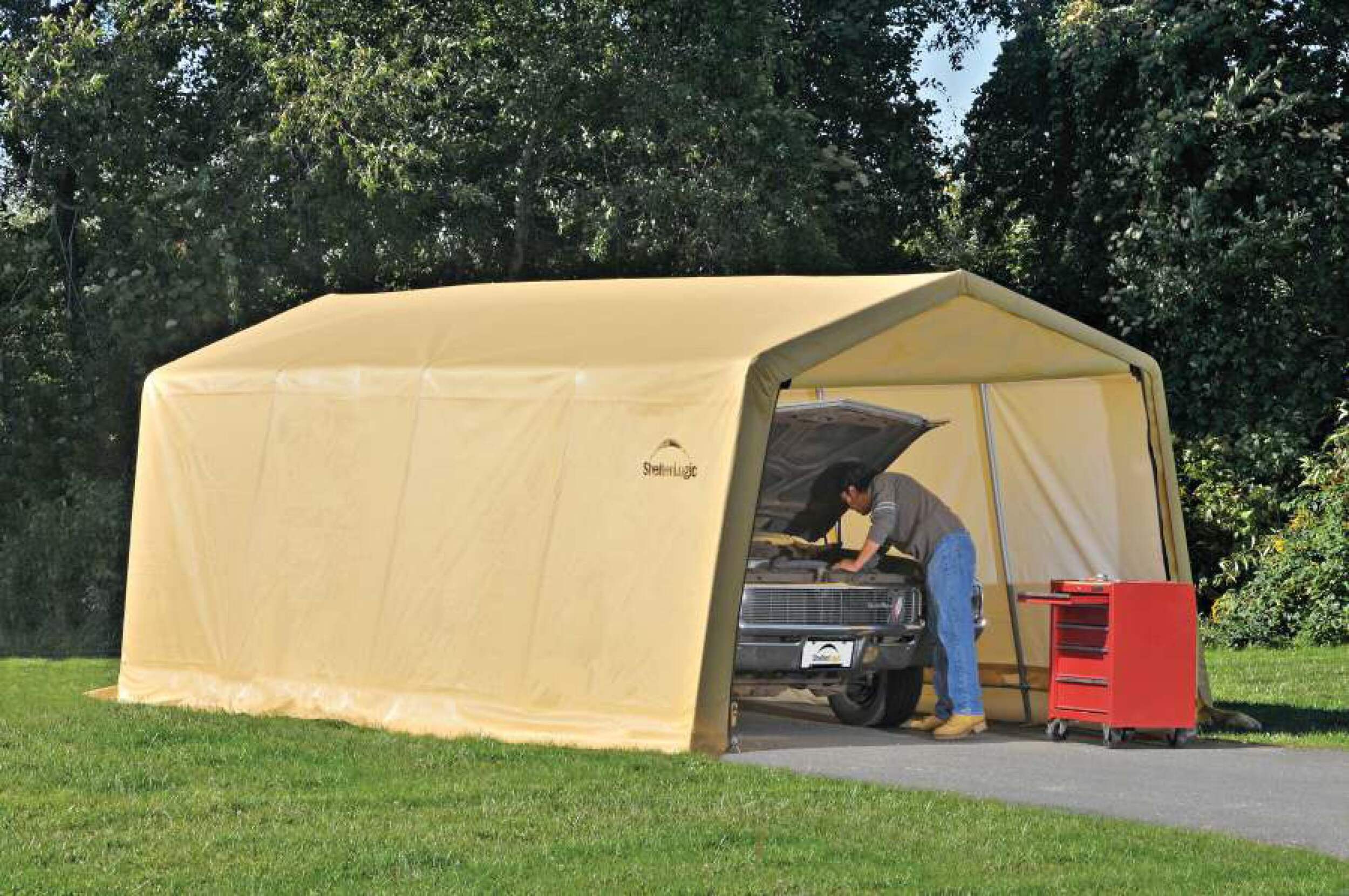 The ShelterLogic Auto Shelter Waterproof Instant Car Garage is built to offer durable, reliable protection for your vehicles, seasonal equipment, or bulk storage. The triple-layer waterproof polyethylene cover is UV-treated inside and out, providing maximum sun and weather protection. The Ratchet Tite tensioning system keeps the cover taut. This instant car garage is easy to access and set up, making it ideal for temporary vehicle storage.