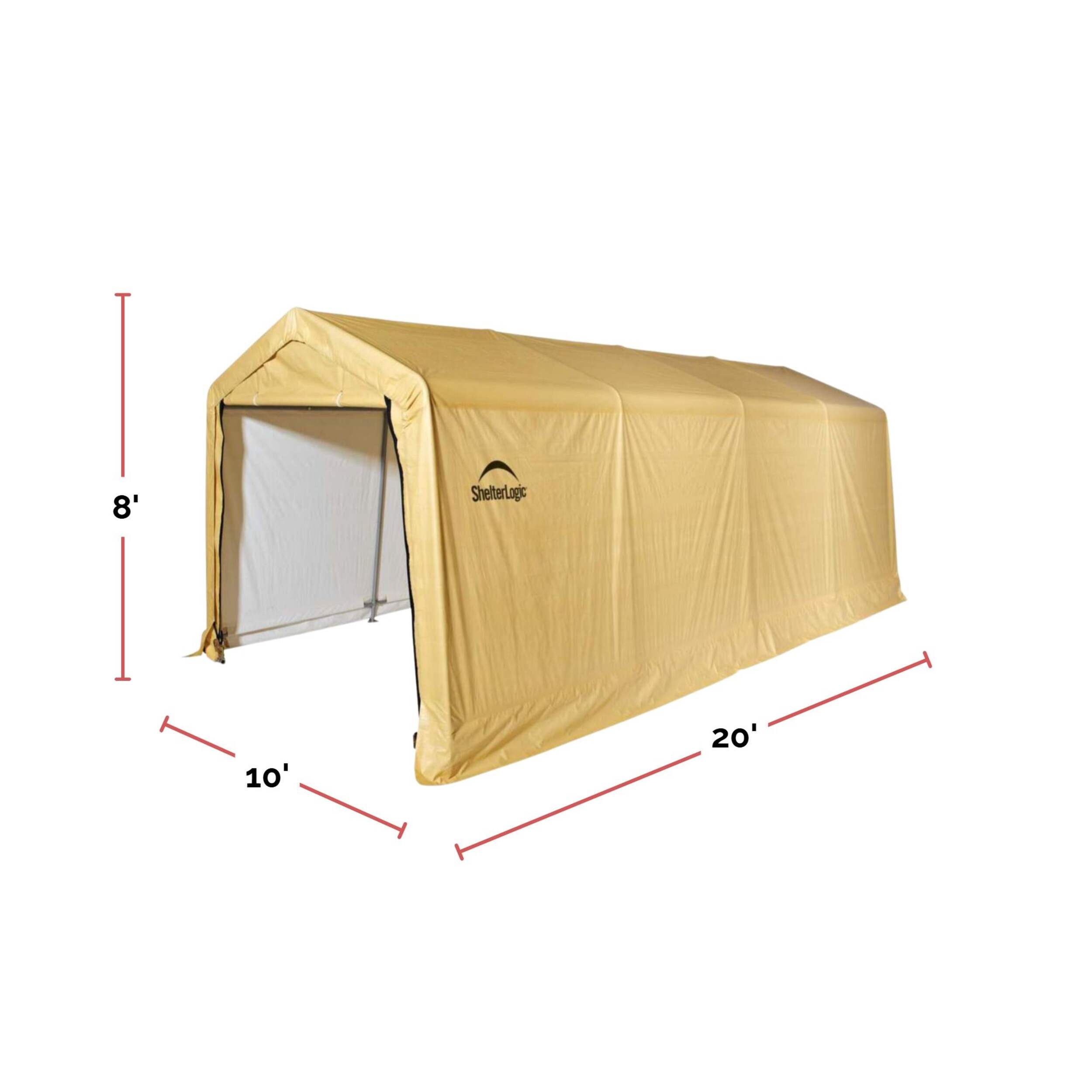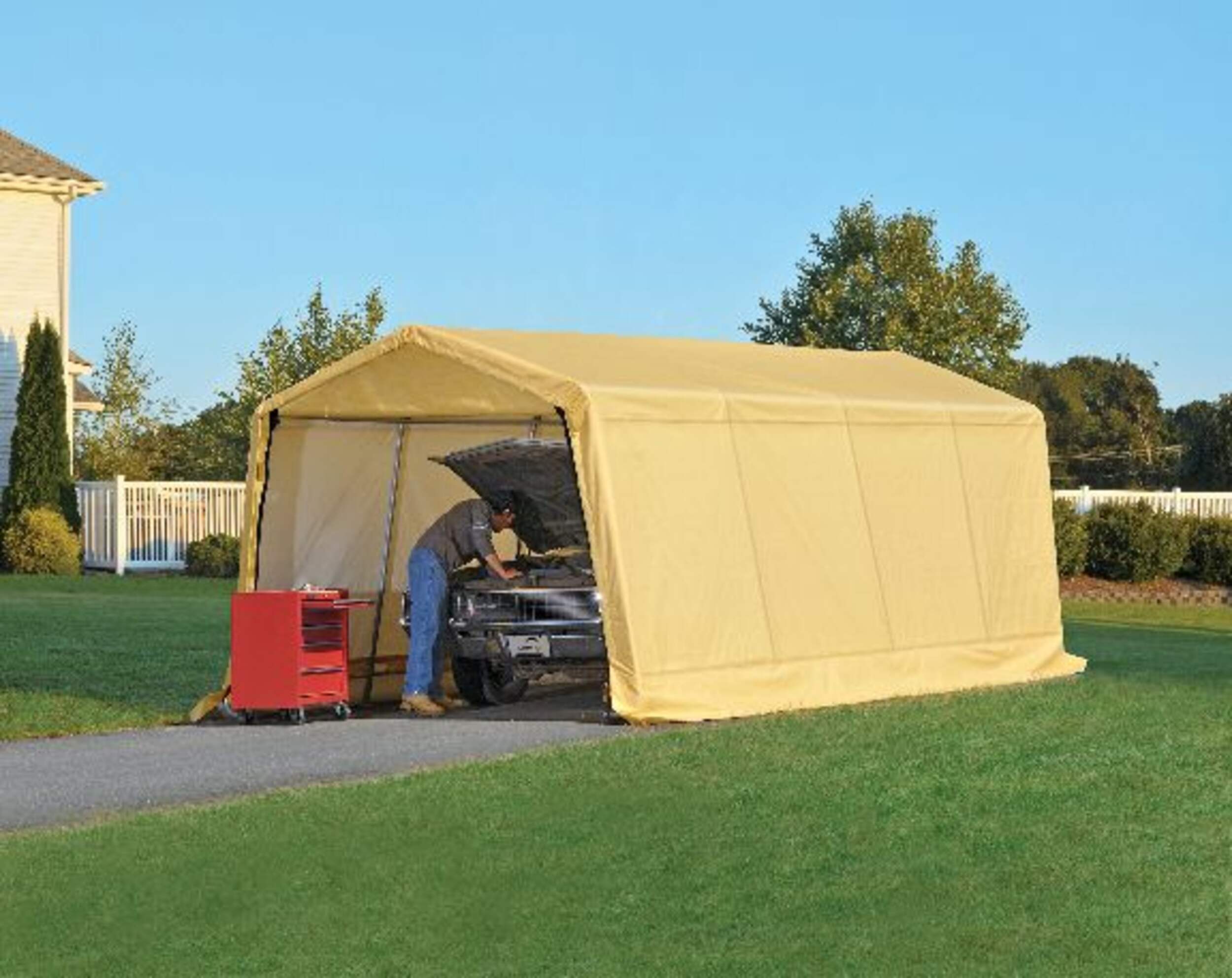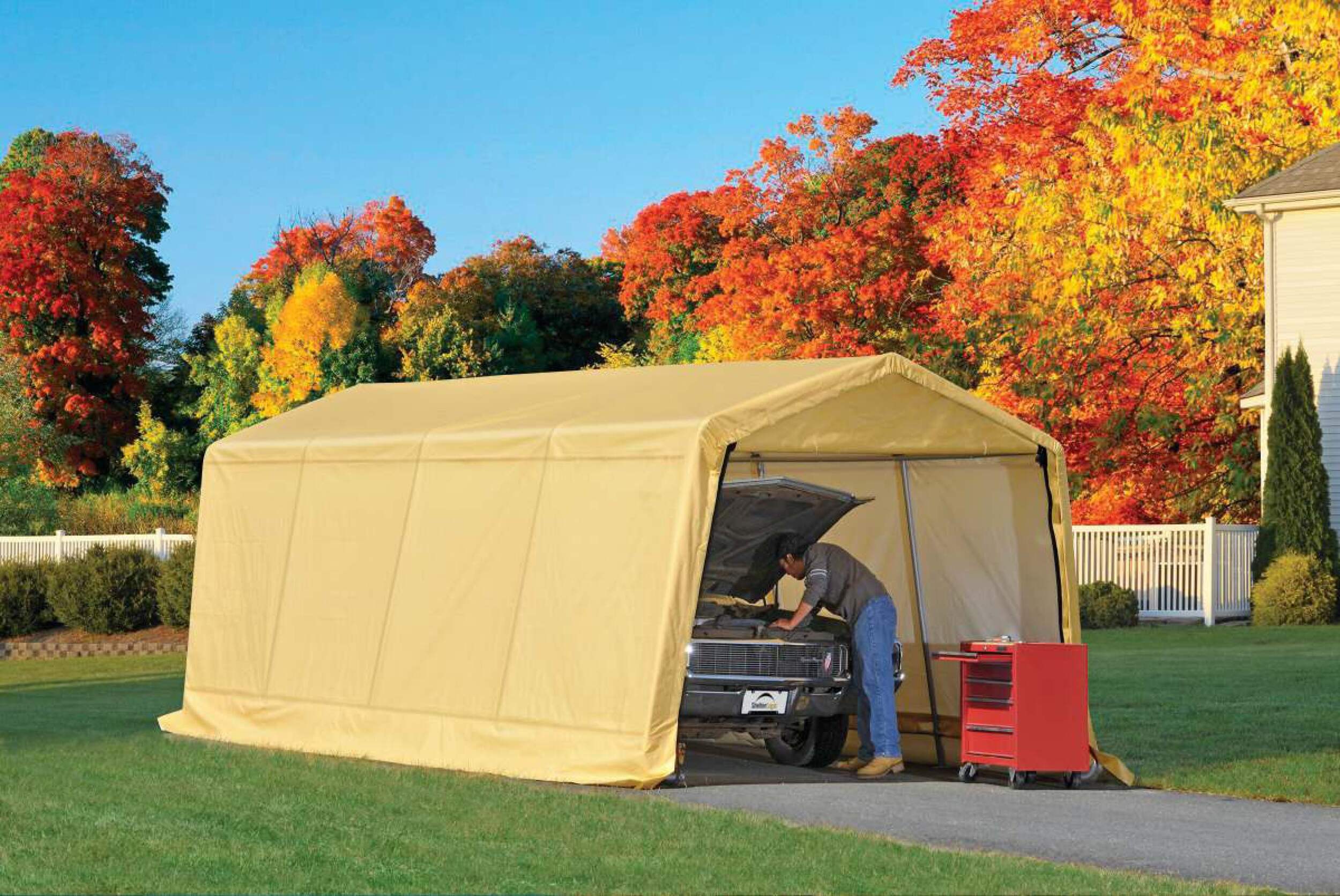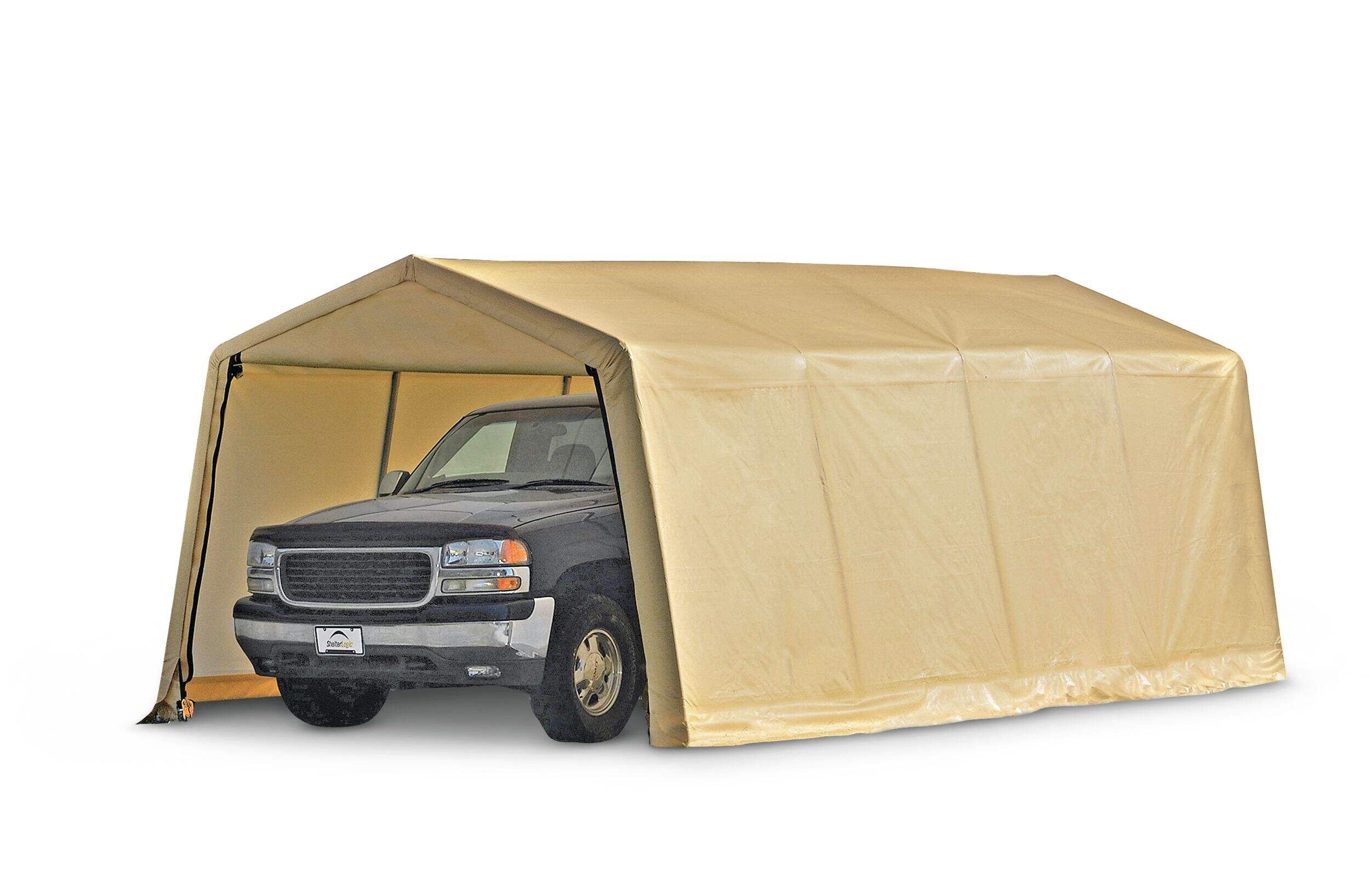 The ShelterLogic Auto Shelter Waterproof Instant Car Garage is built to offer durable, reliable protection for your vehicles, seasonal equipment, or bulk storage. The triple-layer waterproof polyethylene cover is UV-treated inside and out, providing maximum sun and weather protection. The Ratchet Tite tensioning system keeps the cover taut. This instant car garage is easy to access and set up, making it ideal for temporary vehicle storage.