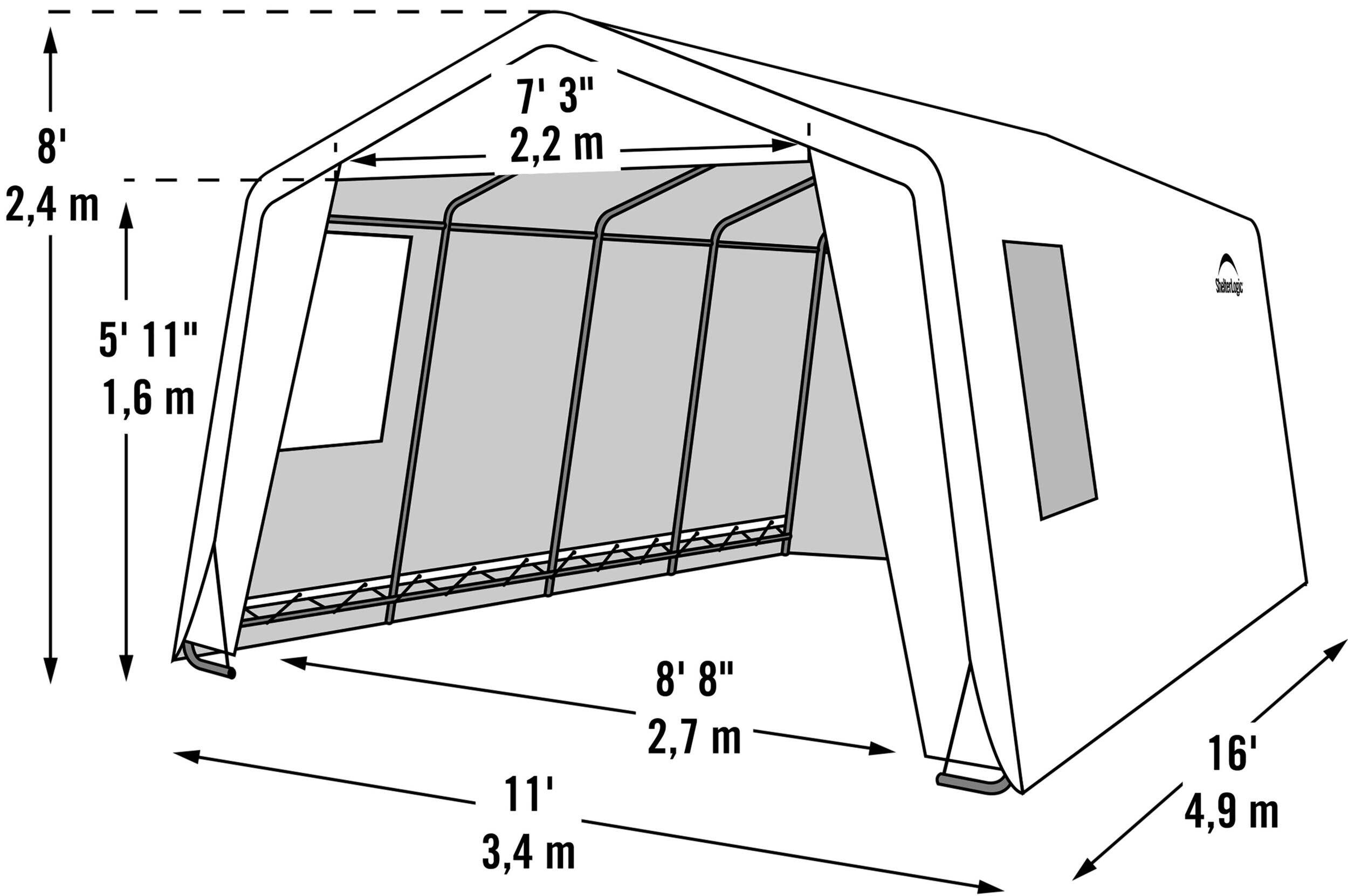 Dimensions: 11'Wx 16'L x 8'H (3.3 x 5 x 2.5 m)