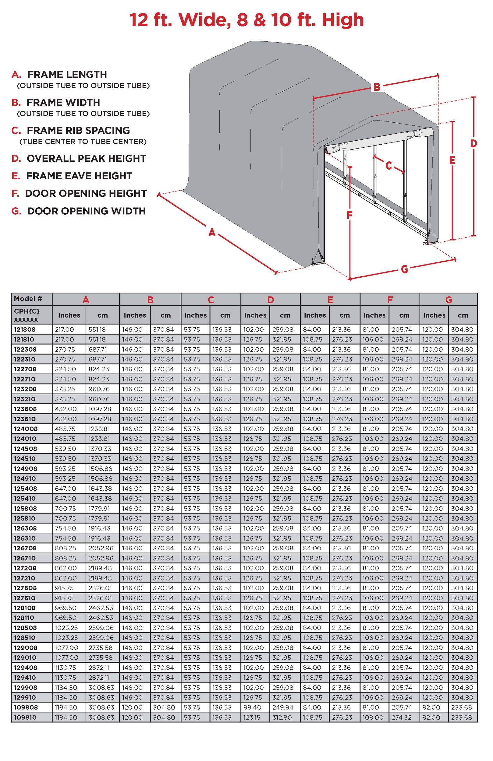 Size for storage: 12 ft x 18 ft x 8 ft