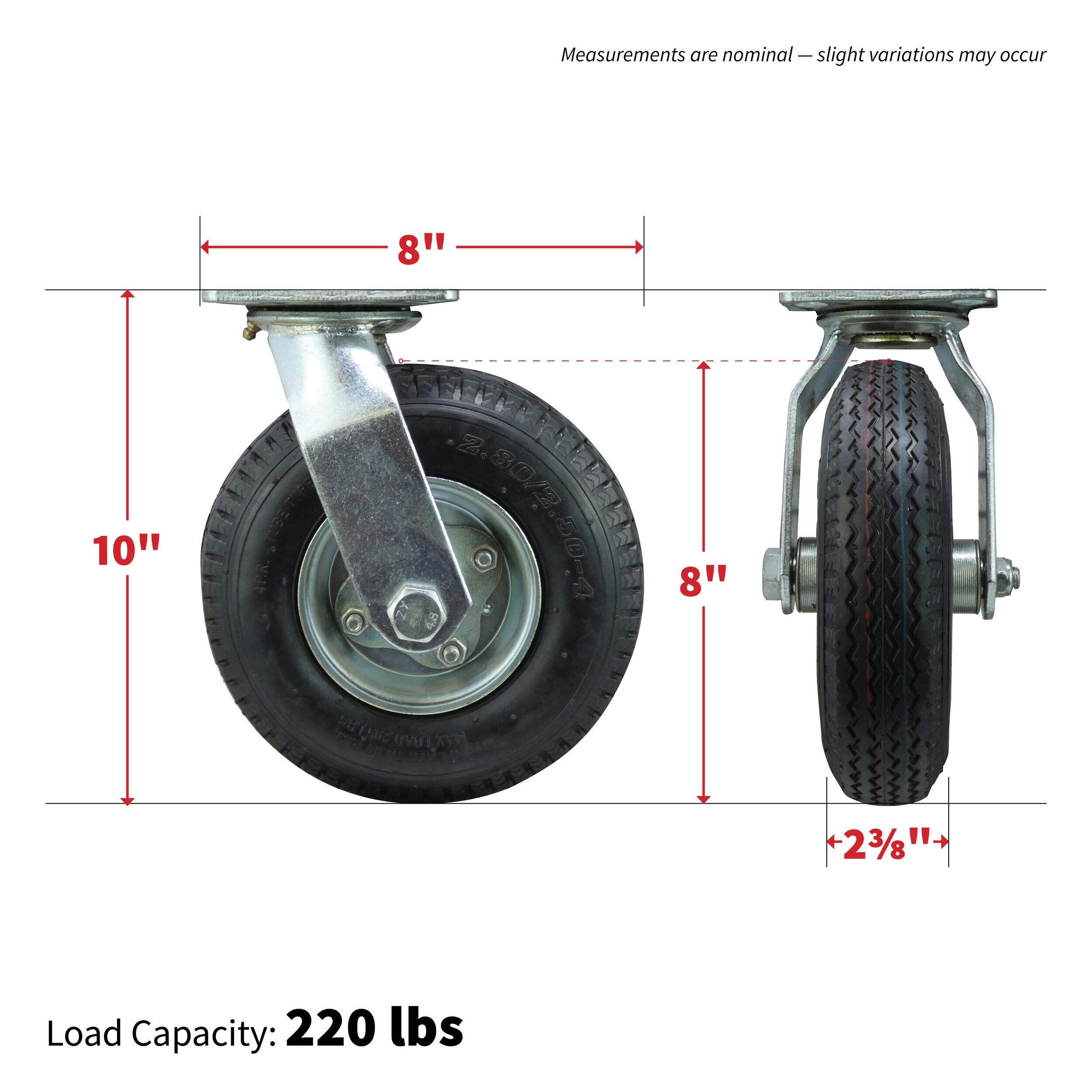 The Shepherd Hardware 9796 10-Inch Pneumatic Caster Wheel, Swivel Plate, Steel Hub with Ball Bearings, 5/8-Inch Bore Centered Axle.