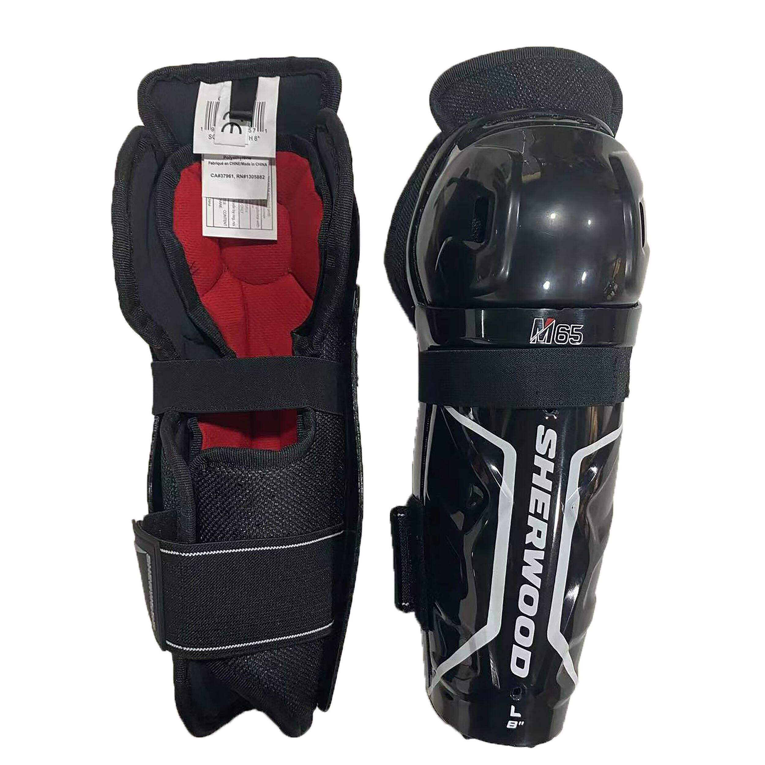 Stay protected while you're on the ice with these Sherwood Rekker M65 Hockey Shin Guards. These youth shin guards feature a durable inner liner and hard cap shell to provide protection, and adjustable velcro closures for a custom fit. They offer critical protection for the shin, calf and kneecap against falls or the impact of connecting with a stick or puck. The black shin guards are available in youth sizes 8", 9" and 10".