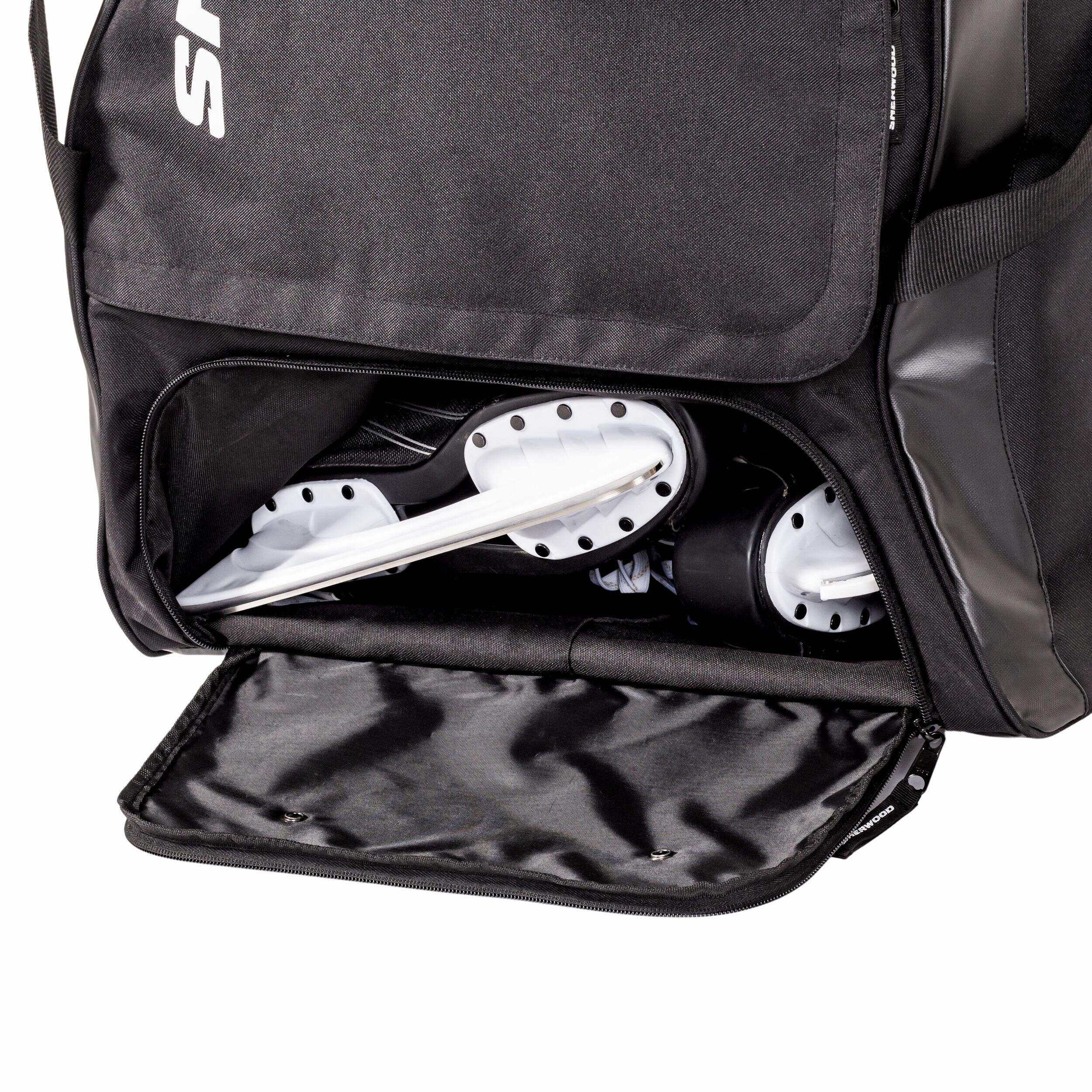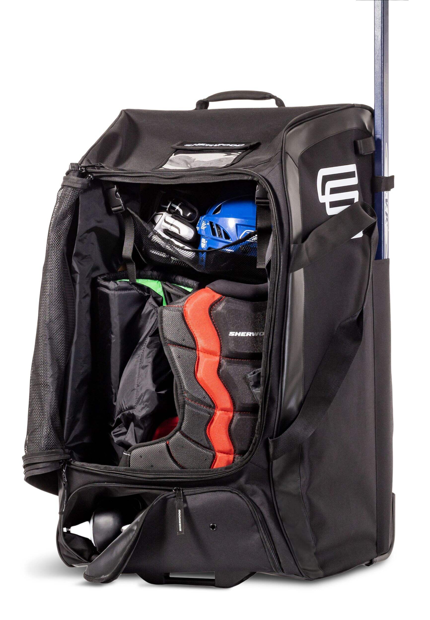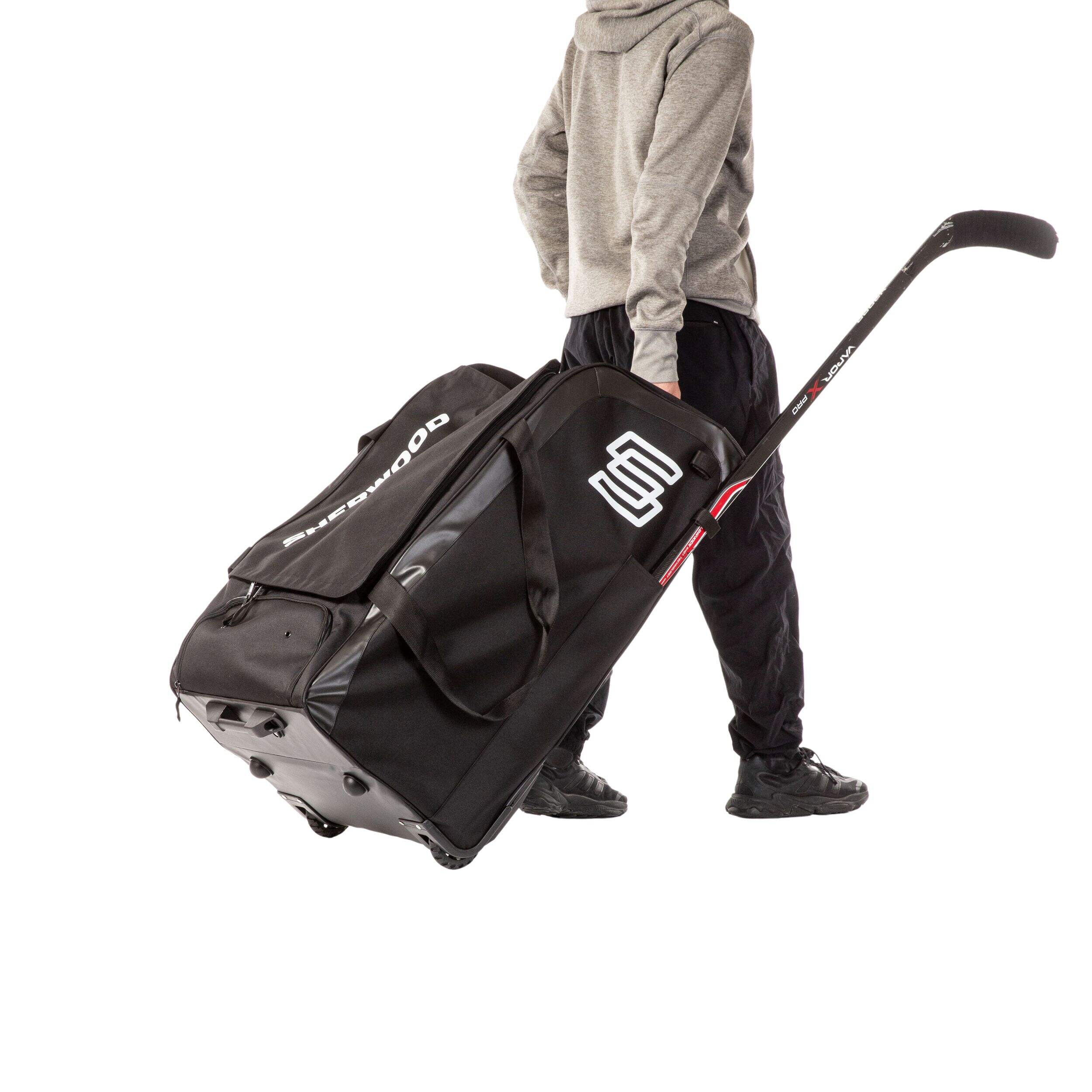 The Sherwood Standing Hockey Bag is a versatile and durable solution for both junior and senior players. Measuring 30 inches, this black wheeled bag offers ample space to store all your hockey gear, ensuring everything is organized and easily accessible. Its standing design allows for convenient packing and unpacking, while the sturdy wheels and reinforced handles make transportation effortless. Whether you're heading to practice or a game, the Sherwood Standing Hockey Bag is designed to meet the demands of hockey players at all levels.