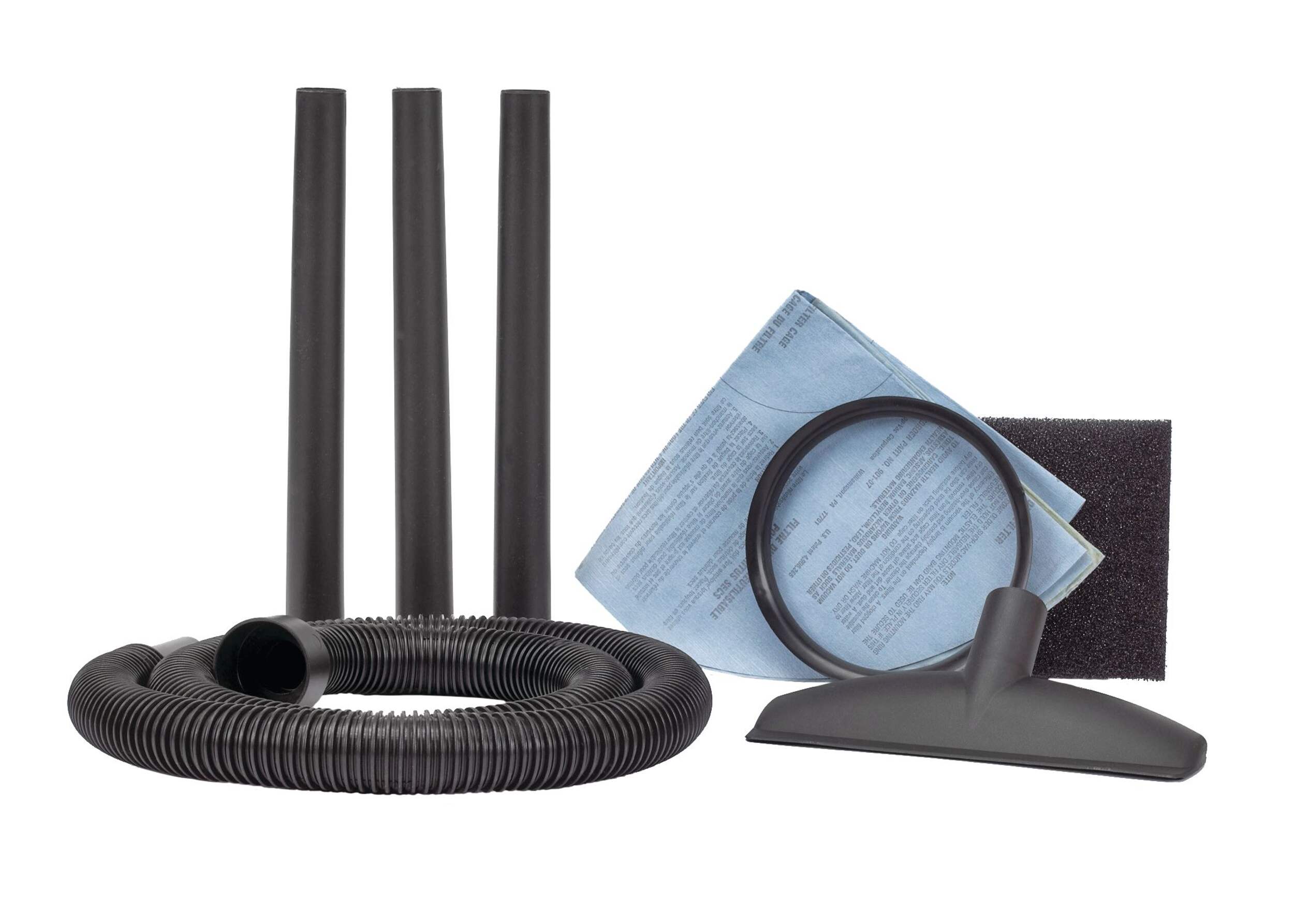 Includes: Reusable dry filter & Foam sleeve for wet pick-up, Hose, Wands,& Floor nozzle