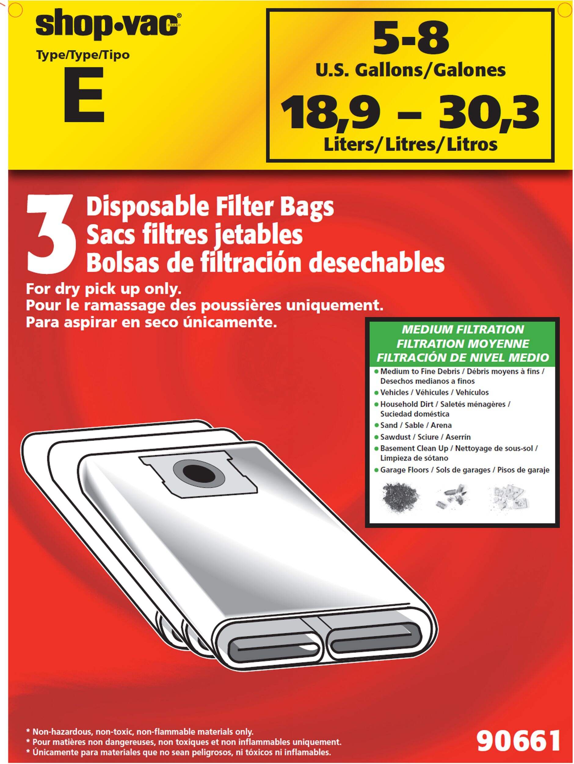 The Shop-Vac® Disposable Paper Dust Collector Filter Bags provide an effective way to maintain a clean and dust-free environment. These bags are designed to simplify the cleaning process, offering dependable performance during routine household tasks. Perfect for managing everyday messes, they enhance vacuum efficiency and ensure a smoother workflow, helping to tackle dry debris with ease and reliability for consistent results.