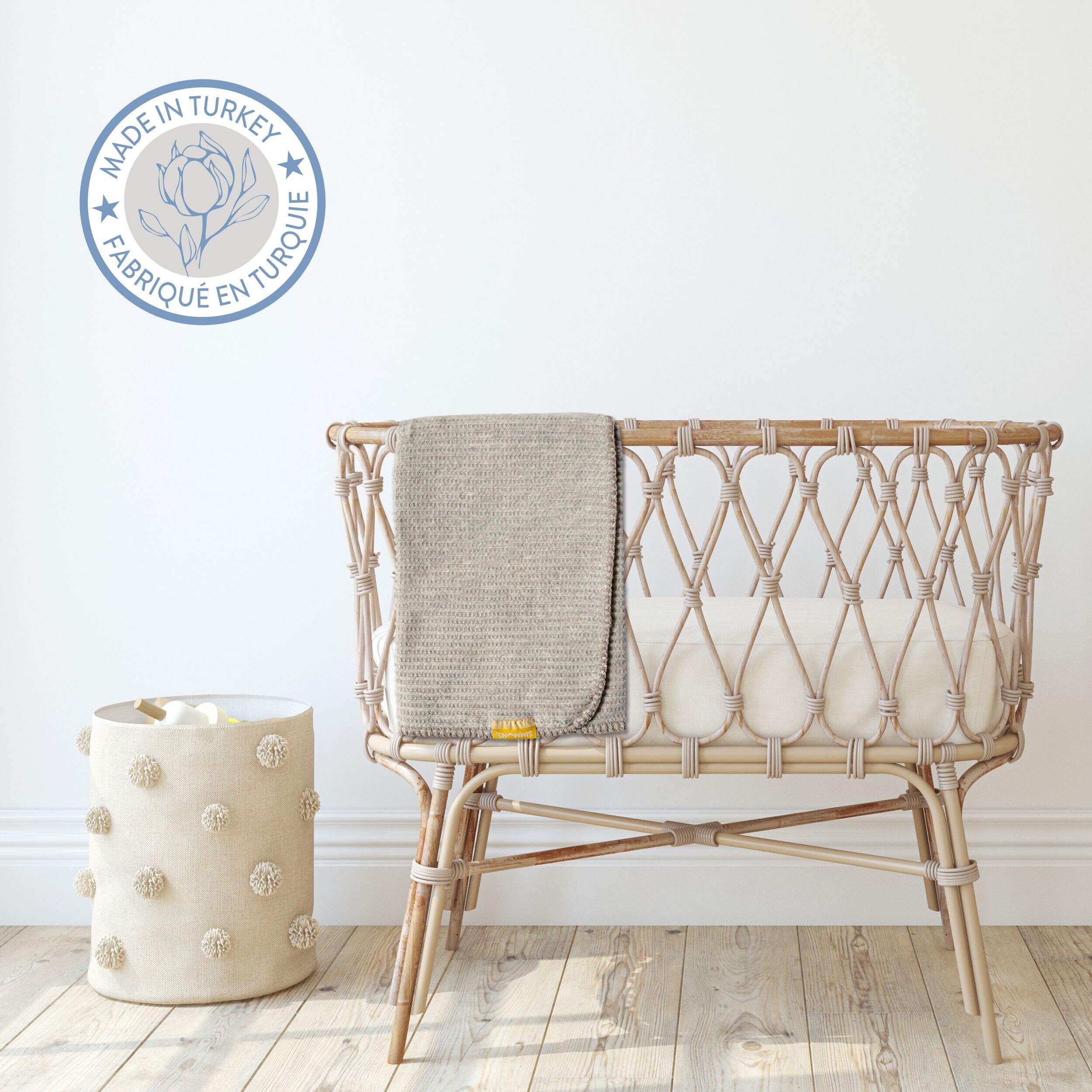 The Simmons Cotton Melange Baby Blanket combines superior quality and exquisite design with practicality for your little one. Crafted with high-quality cotton made in Turkey, this ivory blanket features exquisite craftsmanship to provide comfort and style. Whether in the nursery or on-the-go adventures, this cozy and stylish accessory offers a perfect blend of quality, design and functionality for your baby.