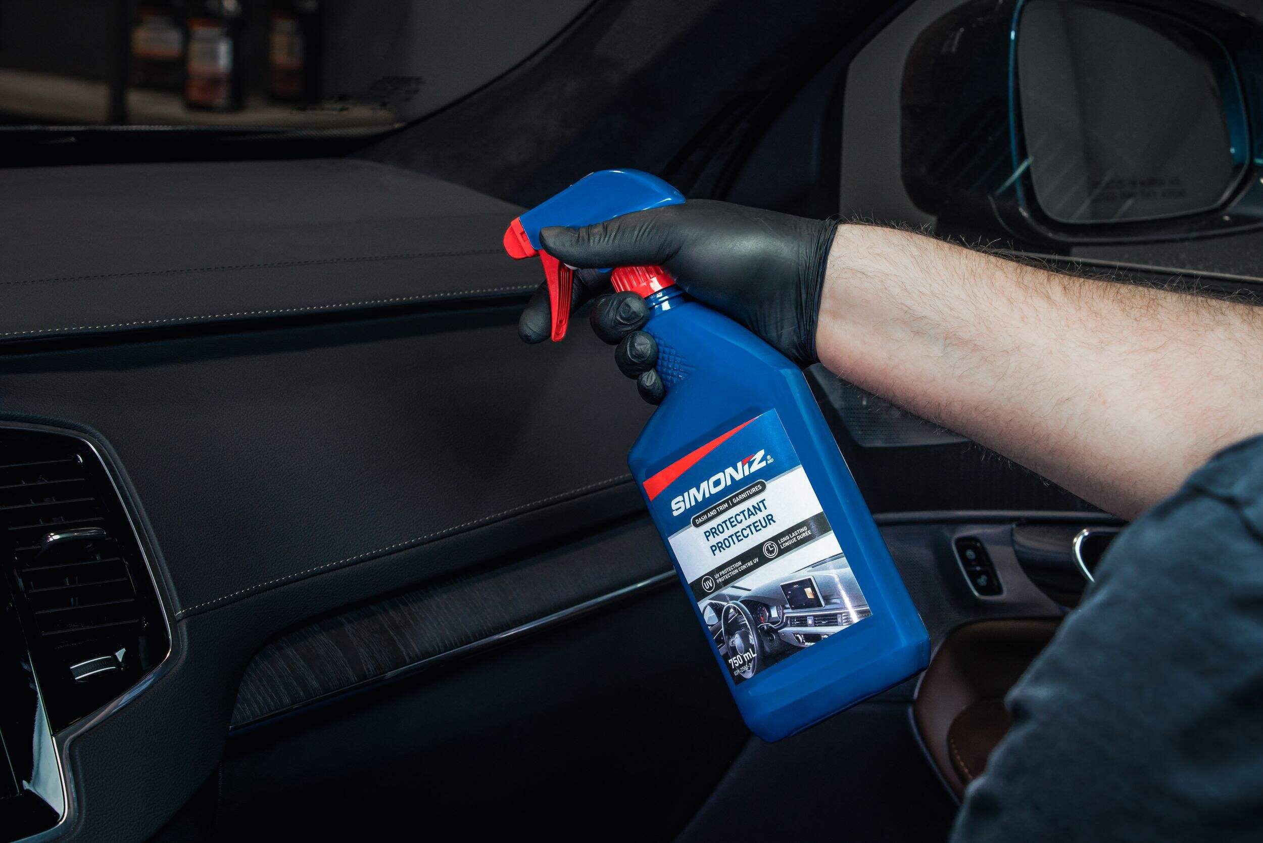 SIMONIZ Dash and Trim Protectant offers protection and shine for your vehicle's dashboard and interior trim. Conveniently packaged as a spray, it guards against UV discoloration of treated surfaces.