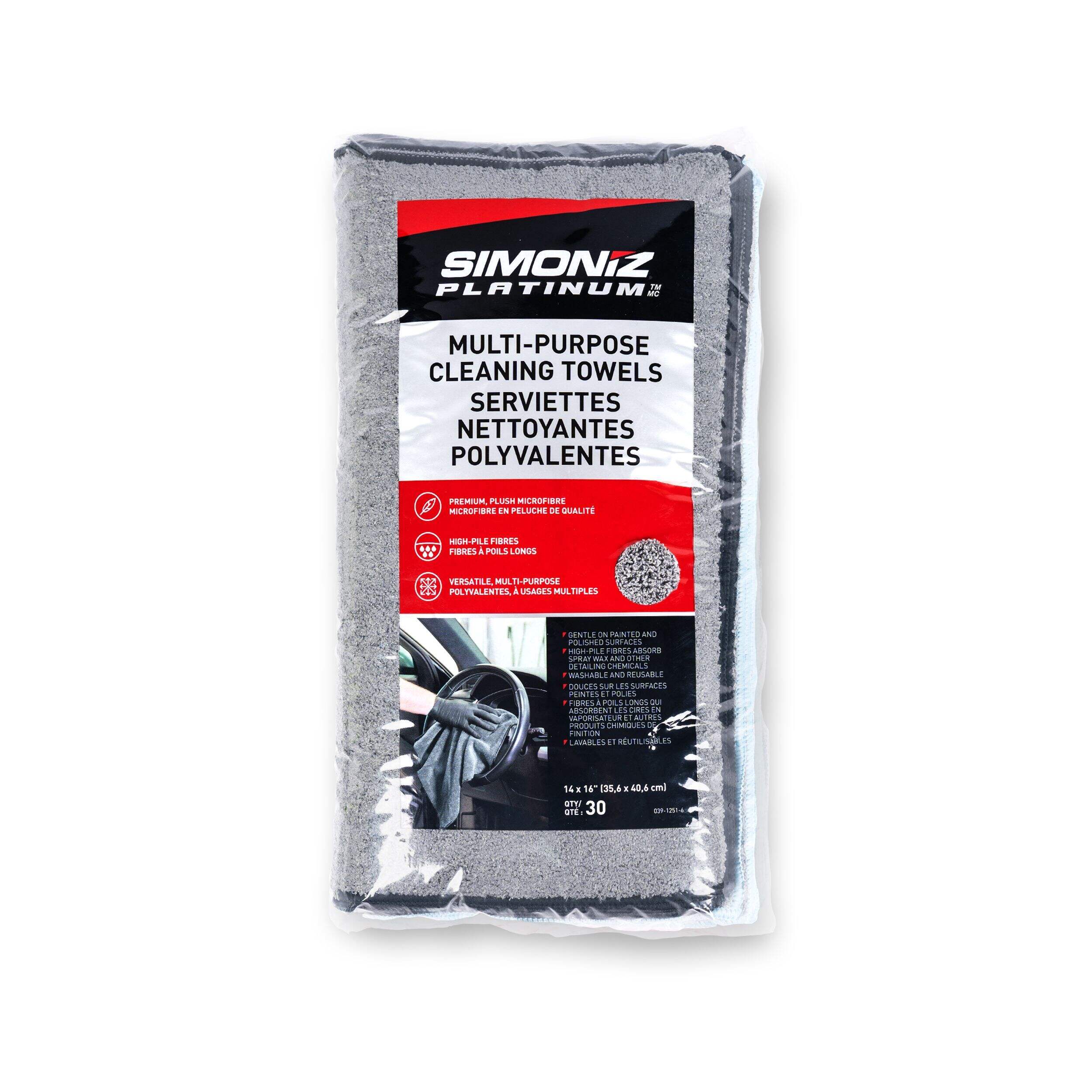 Simoniz Platinum Multipurpose Cleaning Edged Towels are premium microfibre towels that won't leave streaks or marks on automotive surfaces. Machine-washable and reusable, these towels come in a convenient pack of 30.