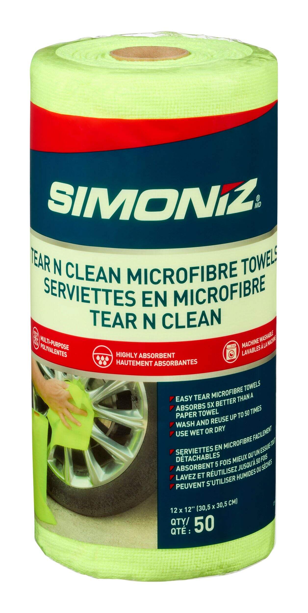 Simoniz Tear-N-Clean Microfibre towels are the perfect solution for grab-and-go cleaning on interior and exterior surfaces that include glass, mirrors, seats, dashboard, tires, wheels, rims, and more. Easy to tear microfibre cloths absorb spills fast, wipe down surfaces, remove dust and debris, and are always within reach on a convenient roll.
