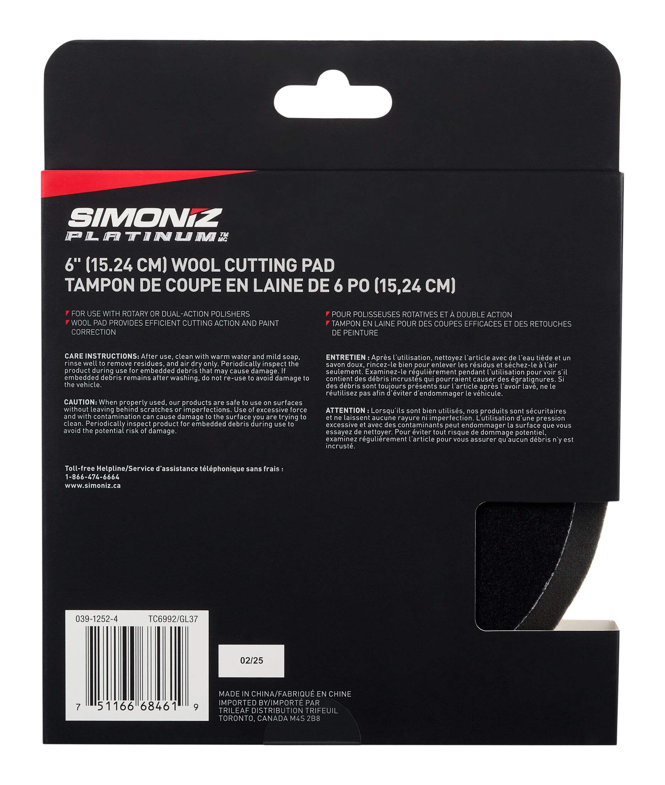 The Simoniz Platinum Wool Cutting Pad is an excellent tool for achieving professional-quality paint correction. Designed to work seamlessly with both rotary and dual-action polishers, this 6-inch pad strikes a perfect balance between efficiency and durability. Its robust construction allows for multiple uses, making it a valuable addition to any car care routine. It's ideal for automotive enthusiasts seeking precision in their detailing work.