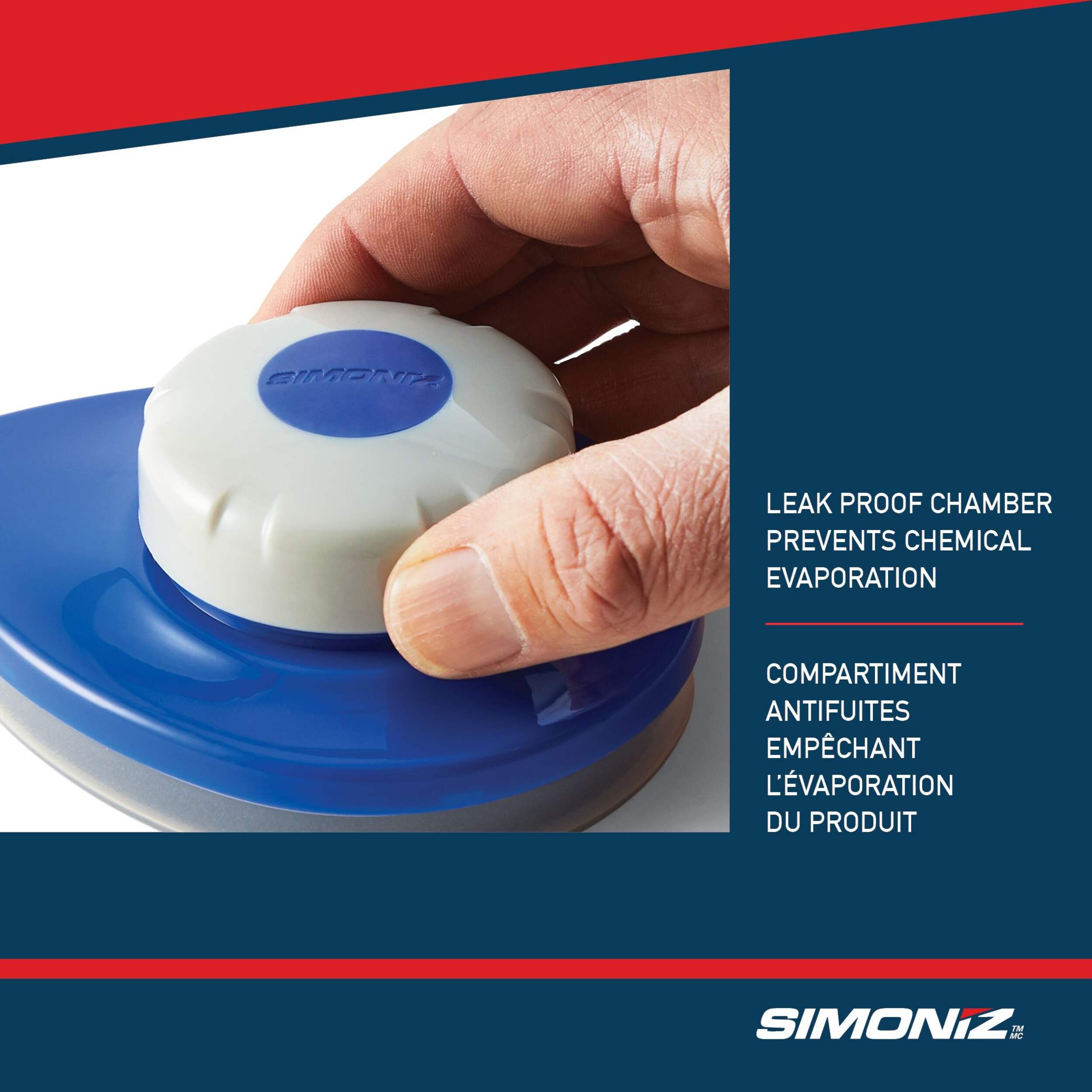 Open cap, fill with Simoniz Protectant, and push top button to dispense protectant