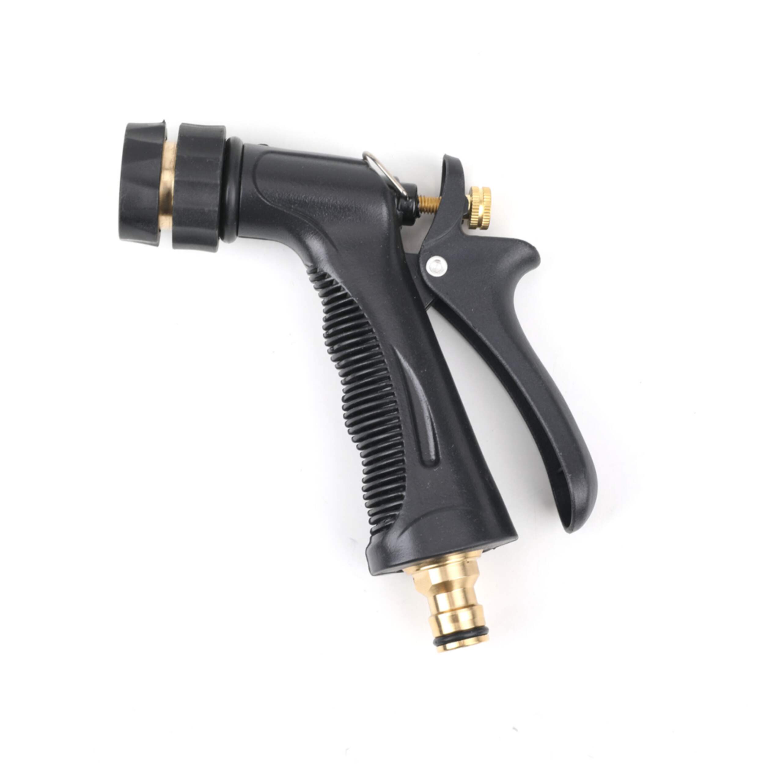 Includes an attached bottle, garden hose trigger, nozzle and spray cap with an adjustable dial