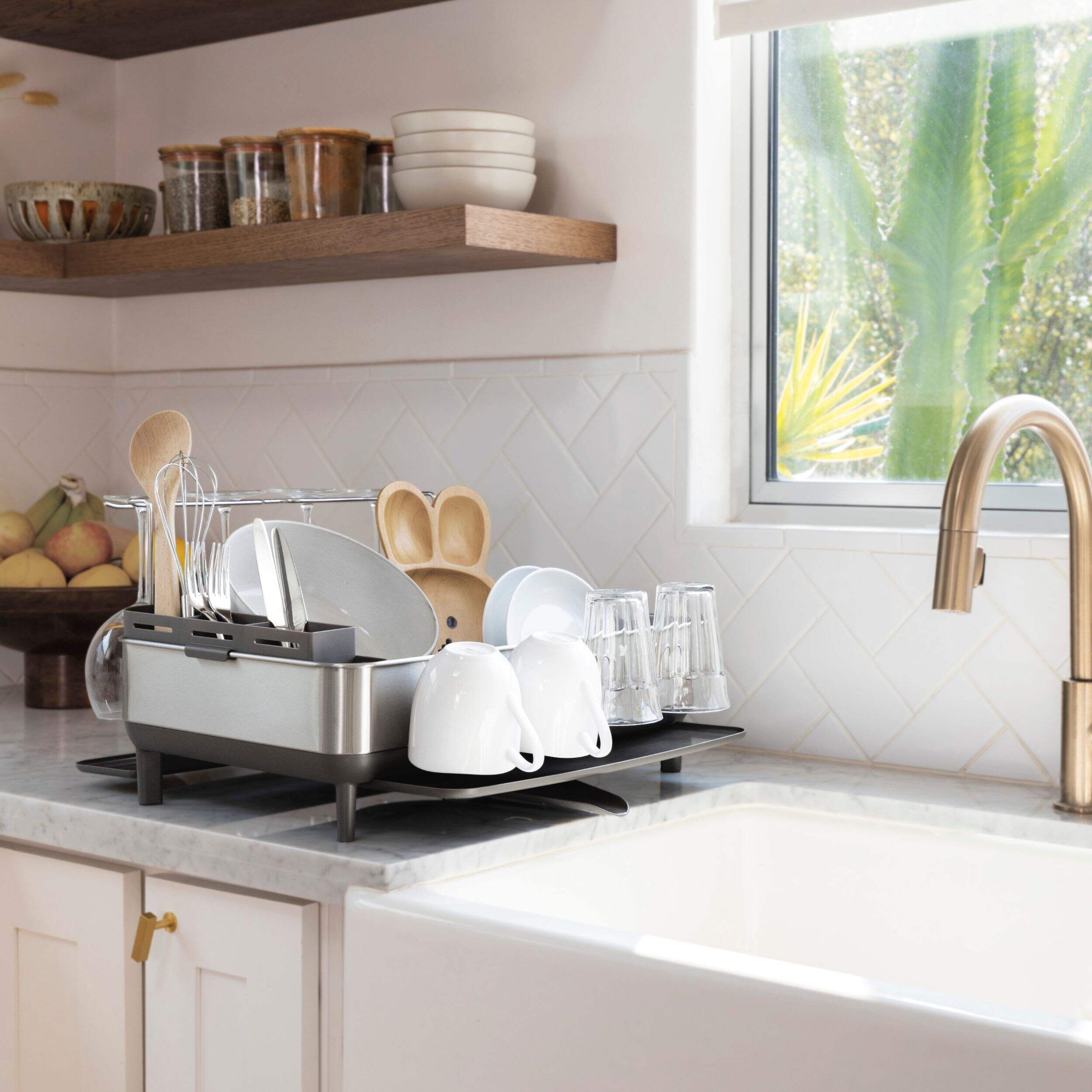 A lower profile with anti-slip rubber feet gives the dishrack greater stability and keep it firmly in place