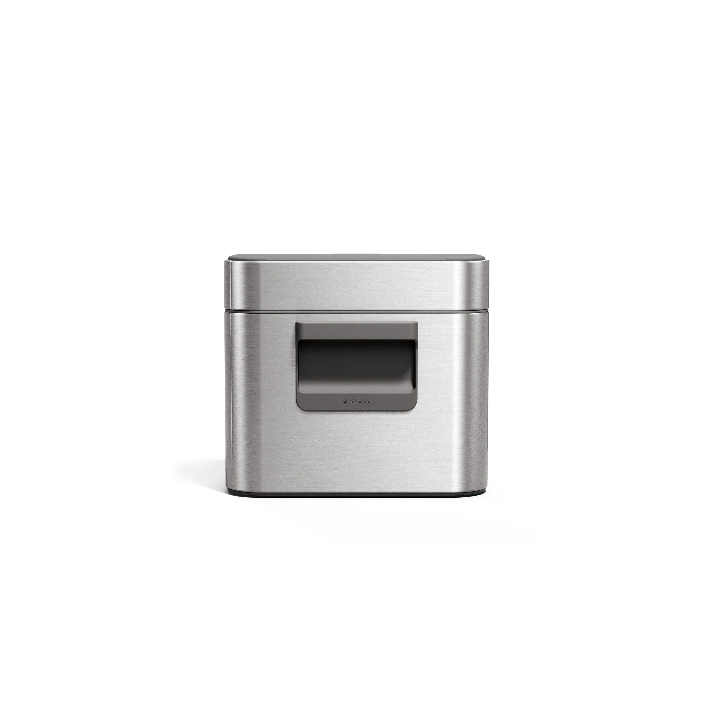 Store compost scraps easily and efficiently with this simplehuman Stainless Steel Compost Bin. Whether you take advantage of the magnetic dock that hangs on your trash can, or you detach it for use on your kitchen counter, this handy compost caddy gives food scraps an odour-limiting home. A plastic inner bucket is simple to clean, while the exterior is made of stylish stainless steel with a special coating that resists fingerprints and stands up to germs.