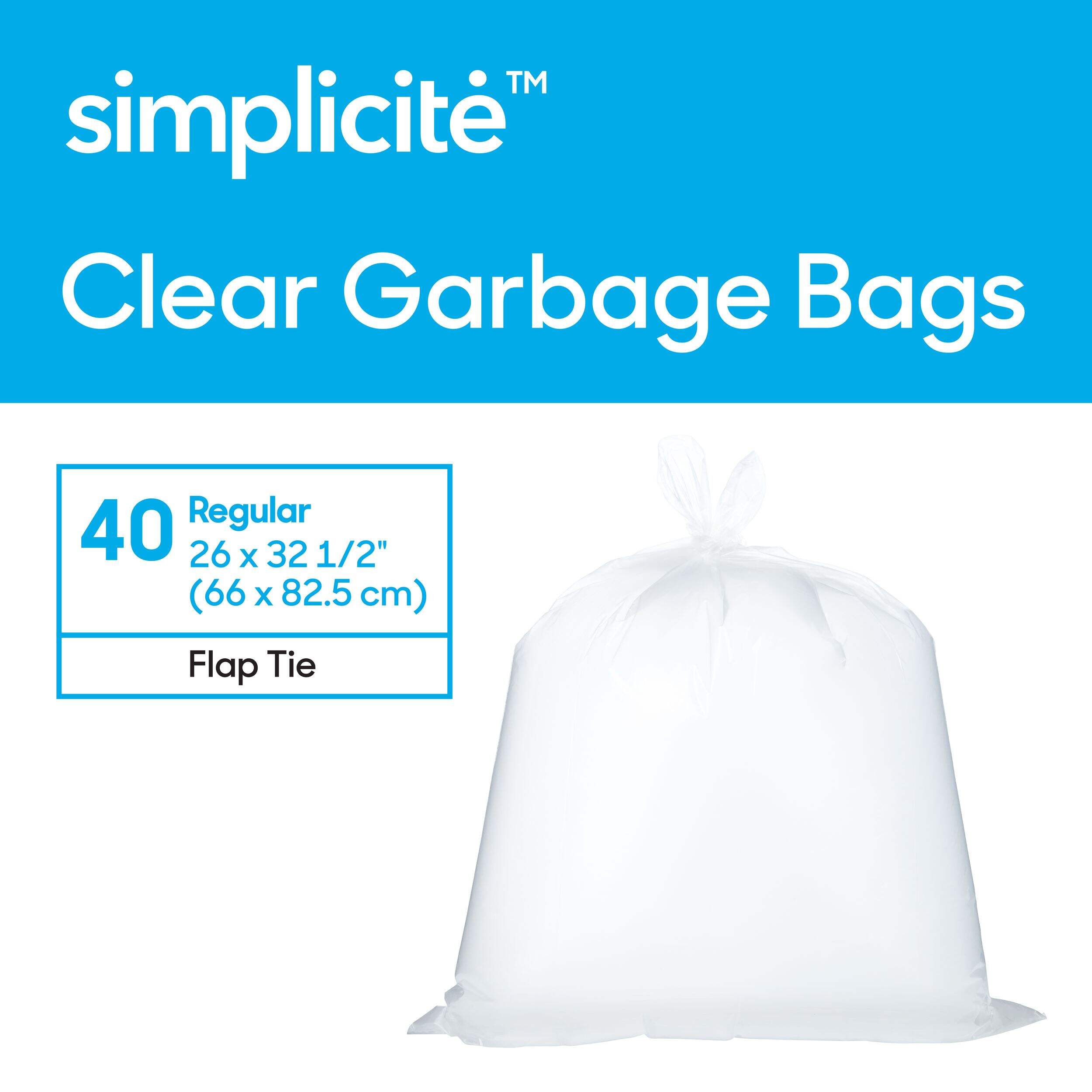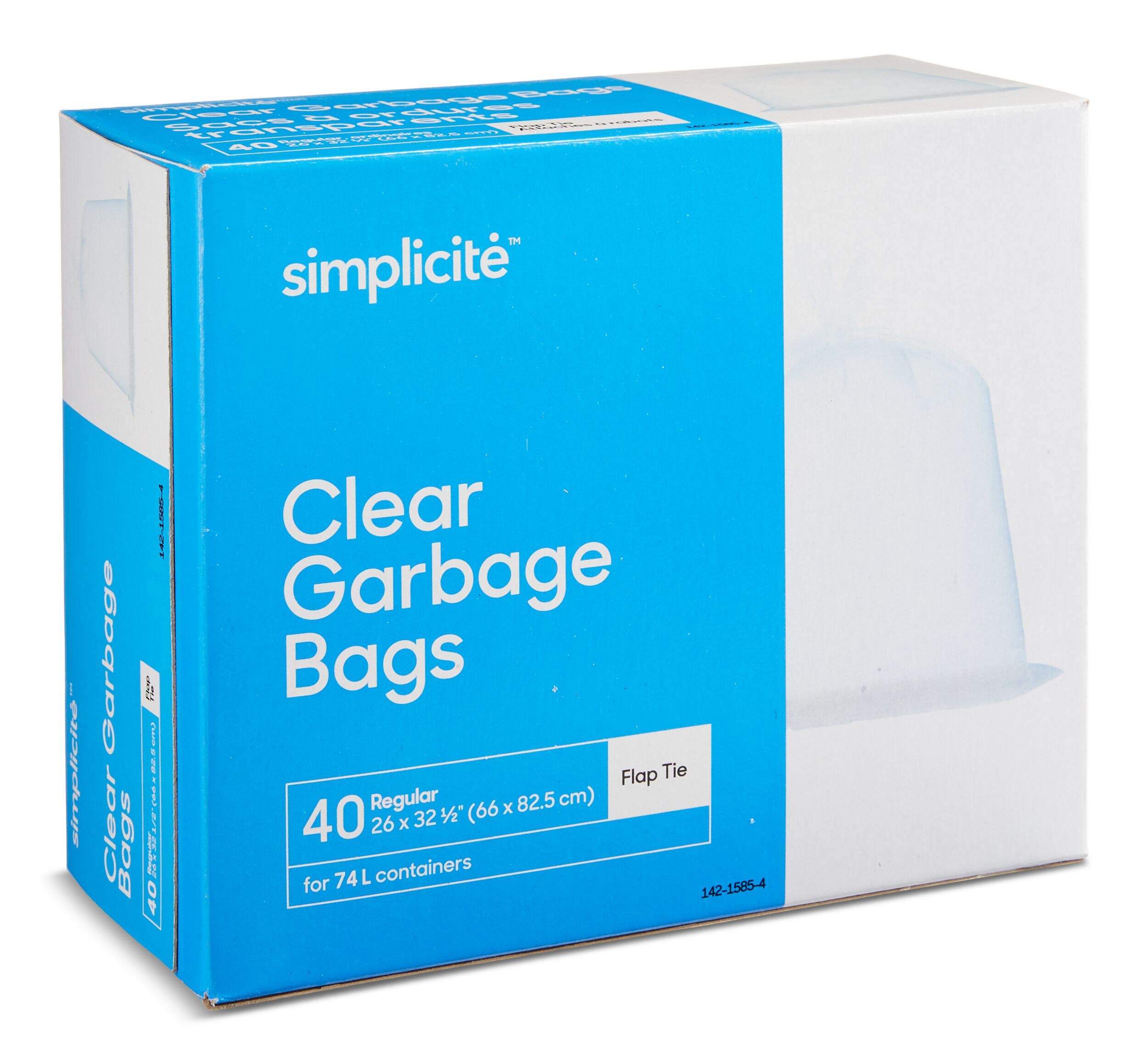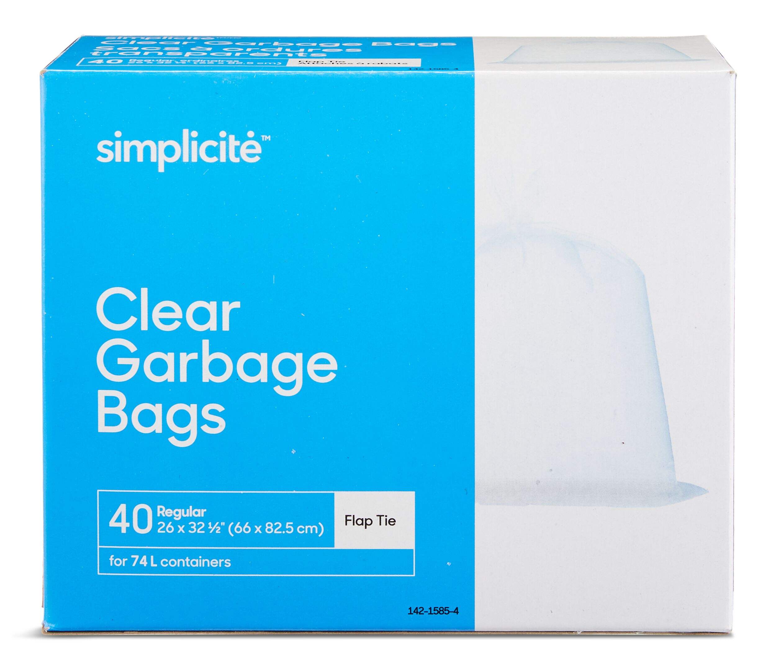 Simplicité Regular 4-Flap Ties Garbage Bags provide a durable and dependable solution for both indoor and outdoor waste disposal. With a 74L capacity, these clear bags are designed to fit standard bins and handle large loads with ease. Made from thick, tear-resistant plastic, they are perfect for yard debris, recyclables, and household trash. The four flap ties ensure a secure and tight closure, preventing spills and keeping waste sealed at all times. Additionally, the clear design allows for easy identification of contents at a glance, making sorting and organizing waste much simpler.