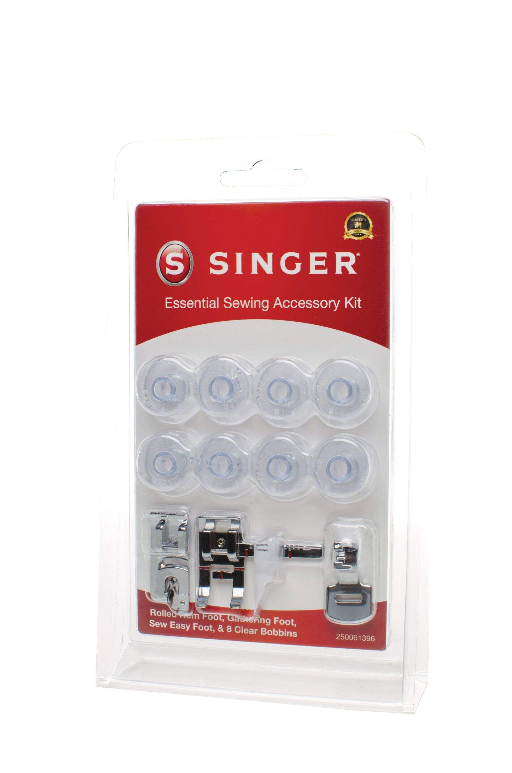 Singer Sewing Feet and Bobbins Kit includes a sew easy foot, rolled hem foot, and gathering foot